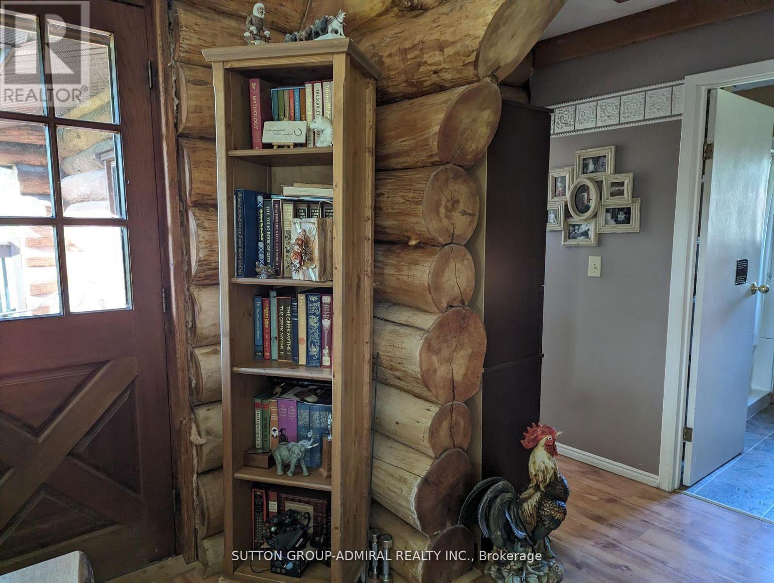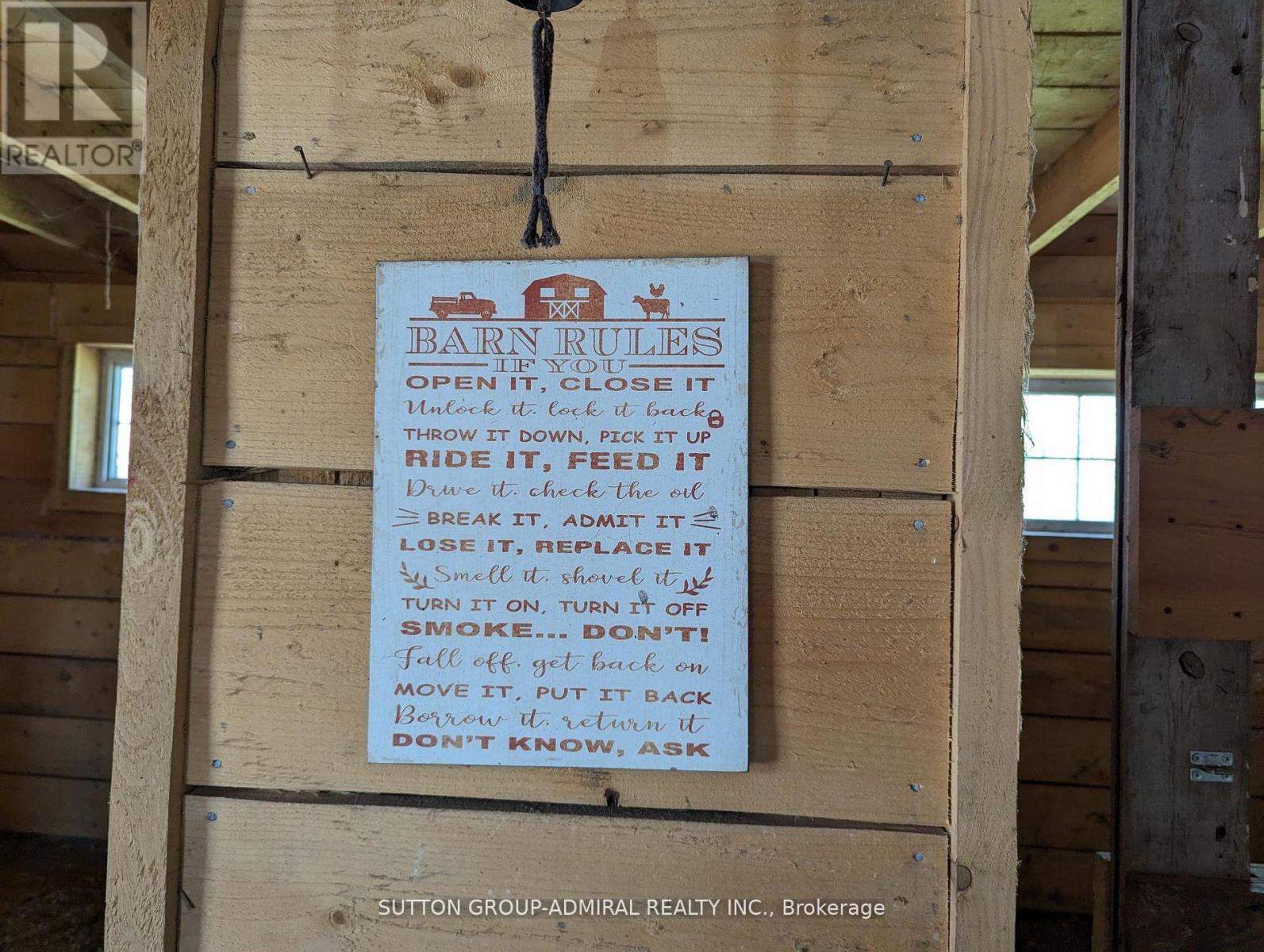 16.7 acre , log house,4 stall barn and 2 storage sheds nestled in the trees. Double entrance drive and yard for storage of all vehicle needs. 2 fenced paddocks. The home is light and bright due to the many windows. A balcony allows you to sit and view the scenery. Barn has tack/storage area, large sliding doors at each end of the lock stone paved 14 foot alleyway, sliding doors on the 10X12 box stalls, a mow that holds 300 small square bales along with hydro and hydrant for water even in the coldest days. (id:64974)