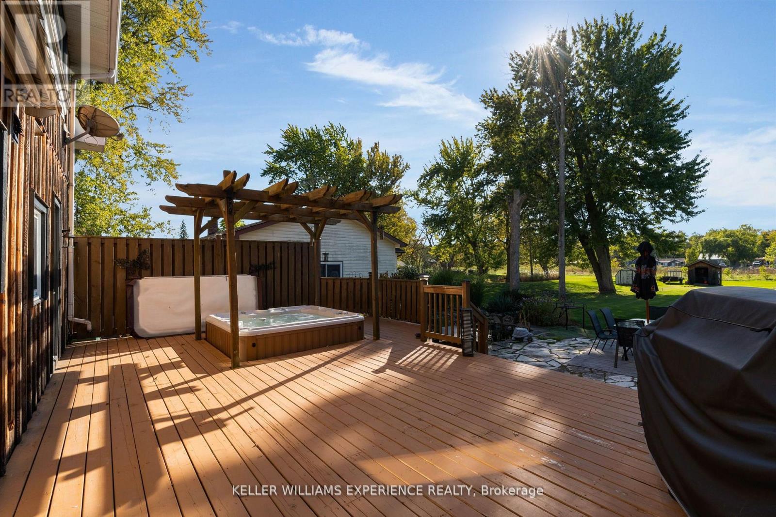 Nestled on a generous lot with peaceful nature behind and the lake just across the road, this property offers the perfect balance of family living and lakeside retreat. Just steps from the waterfront park, you can enjoy morning walks by the water, afternoons at the park, and evenings taking in the fresh lake breeze. Inside, the open-concept layout creates a warm and welcoming space where family and friends can gather with ease. A versatile separate area provides flexibility for a workshop, garage, or hangout, making the home as practical as it is inviting. Outdoors, a large deck and stone patio with a hot tub set the stage for relaxation, entertaining, and enjoying the beautiful natural surroundings. With its serene setting, proximity to the lake, and spaces designed for both everyday living and year-round enjoyment, this home is truly special. (id:64974)
