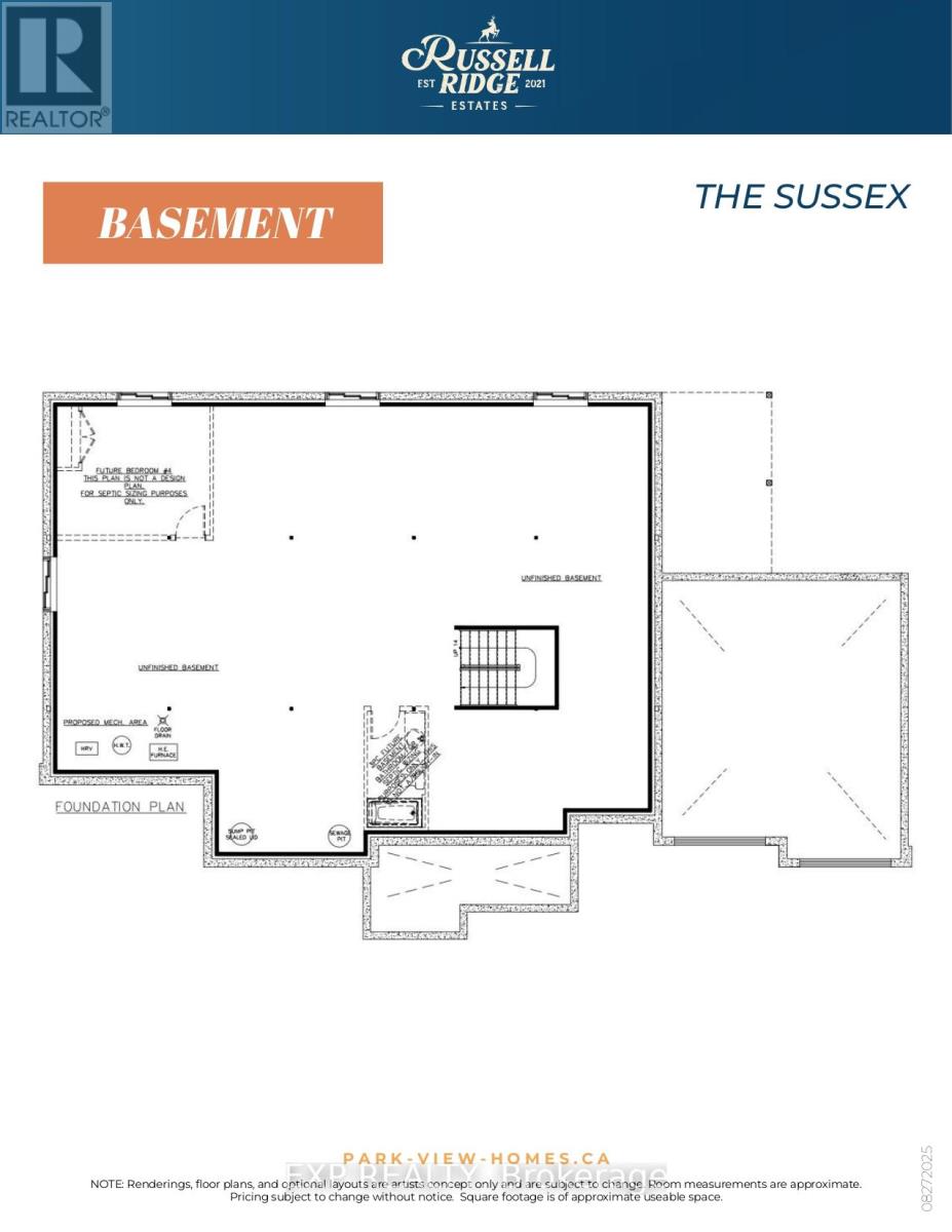 TO BE BUILT. The Sussex model (on a WALKOUT BASEMENT LOT!) by Park View Homes offers approximately 2,250 sq. ft. of well-designed living space in Russell Ridge Estates. Set on a premium lot, this ENERGY STAR certified bungalow combines quality construction with modern comfort and efficiency. Personalize your home by choosing the finishes you want, from cabinetry and countertops to flooring and tile. The open-concept main level features 9-foot ceilings, wide-plank laminate flooring, and bright, spacious living and dining areas. The kitchen is finished with quartz countertops, tile backsplash, and designer cabinetry, creating a stylish and functional central space. This 4 bedroom, 2.5 bath home includes a primary retreat with 5 piece ensuite featuring double sinks and a freestanding tub, along with three additional bedrooms suited for family, guests or office use. High-performance construction, including triple-glazed windows and advanced airtightness, ensures year-round comfort and energy savings. Covered front and rear porches make it easy to enjoy your peaceful surroundings, whether relaxing or entertaining. Double-car garage. Located in Marionville's Russell Ridge Estates, this growing community offers peaceful country living with convenient access to nearby amenities and an easy commute to the city. Built by trusted local builder Park View Homes and backed by a full Tarion warranty. (id:64974)