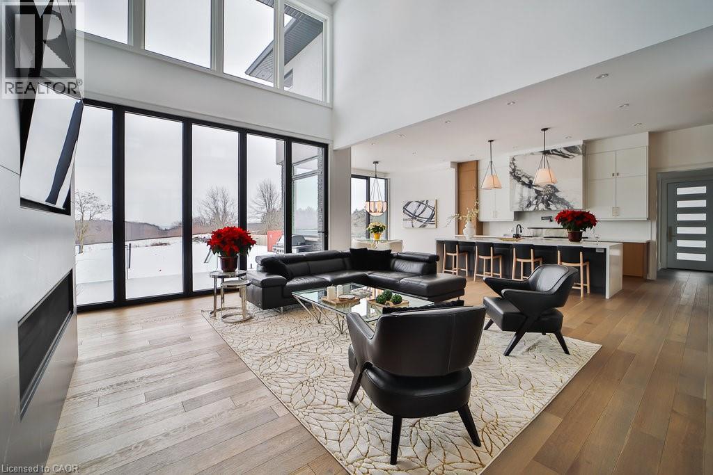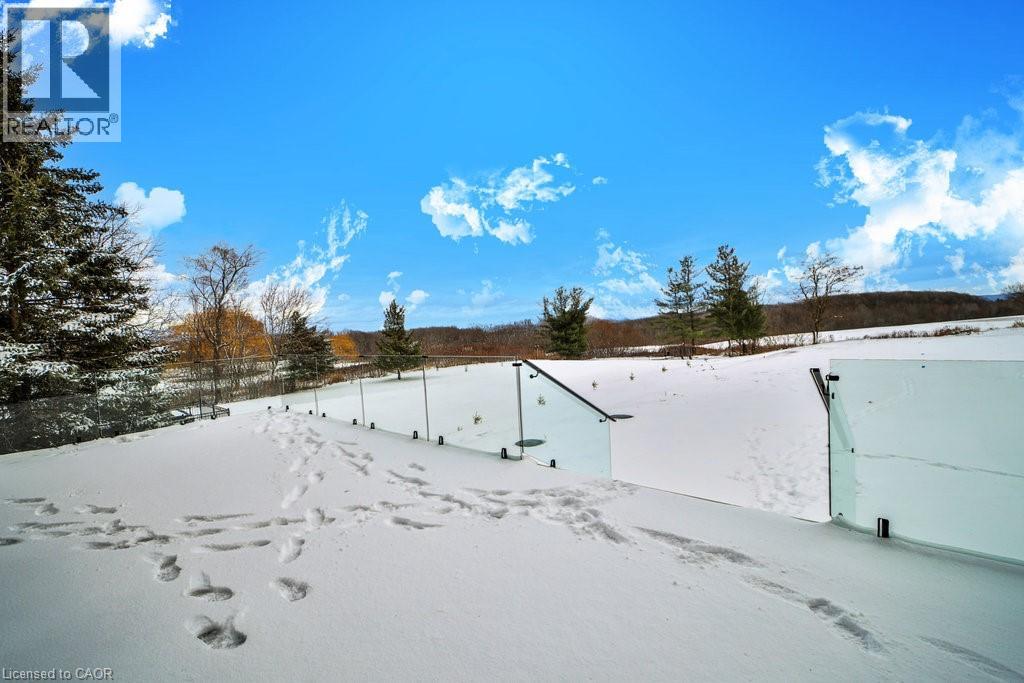 Incredible one year old modern home, 4650 sq ft of above grade living space, with 1700 sq ft finished walk up basement. Enjoy the beautiful views of Escarpment and Lake Ontario, backing on to the Bruce trail and farm land. Five bedrooms all with ensuits, a Nanny suite with separate entrance. Three extra powder rooms (total 8 bathrooms) for convenience. Take in beautiful sunrises from the east and watch breathtaking sunsets in the west from this one acre lot. This home has been designed with ease of living, allowing 22 parking spots on this one acre lot. The backyard has plenty of space to design your own oasis. Convenient country living on Burlington's prestigious #1 sideroad, only minutes away from all amenities. LUXURY CERTIFIED. (id:64974)