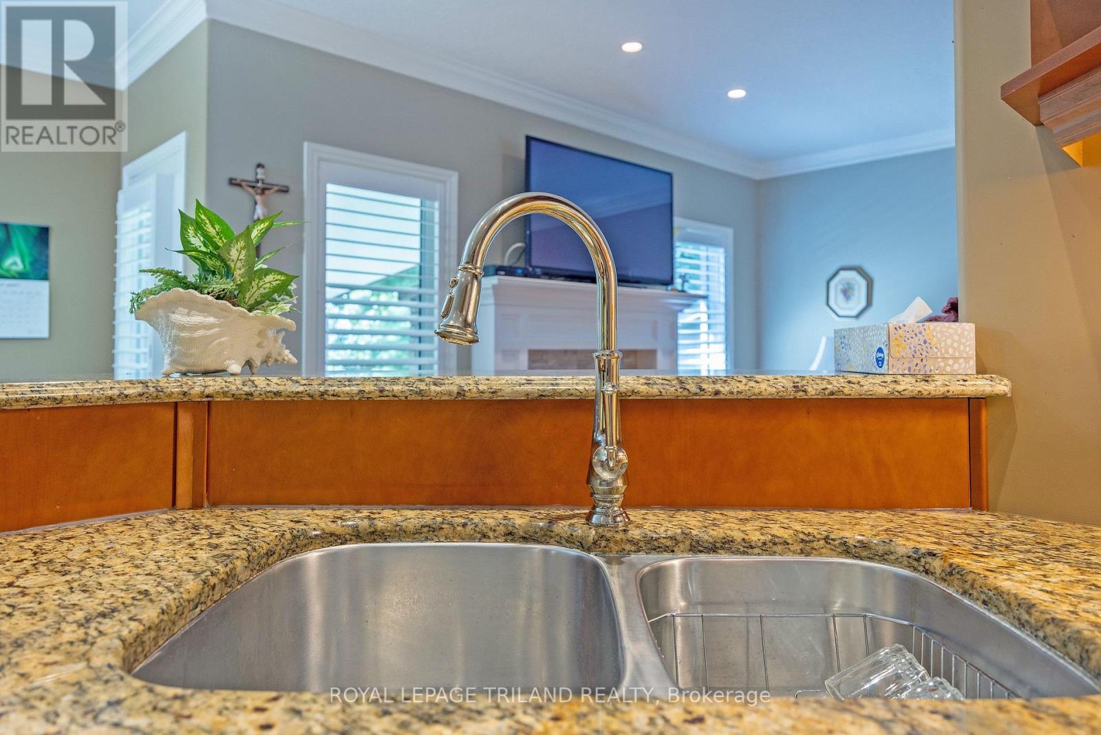 Welcome to Wickerson Heights in the desirable Byron, where this elegant custom executive one-floor ranch sits on a quiet, private pie-shaped lot surrounded by mature trees. Offering over 3,000 sq ft of finished living space, this home features 3+1 bedrooms, 3 full baths and quality construction throughout, including Anderson windows, 30 year shingles, crown moulding, 9 ft ceilings, transom windows, 6" baseboards, and maple hardwood floors. The kitchen includes granite countertops, a walk-in pantry, plus a bright breakfast nook, complemented by a formal dining room and a spacious great room with a custom mantel fireplace. The fully fenced yard provides exceptional privacy, generous entertaining space, and room for your personal oasis. Additional highlights include an oversized garage with a gas BBQ hookup and basement access, a covered concrete patio, an enclosed porch, and a large custom shed. The finished lower level offers a family room, bedroom, full bath, hobby area, ample storage, and cold cellar. Built with energy-efficient 2x6 construction, spruce roof boards, and upgraded insulation, this home delivers comfort and long-term value. A rare opportunity in a peaceful, established neighbourhood-quality like this and a mature private lot are hard to find. (id:64974)