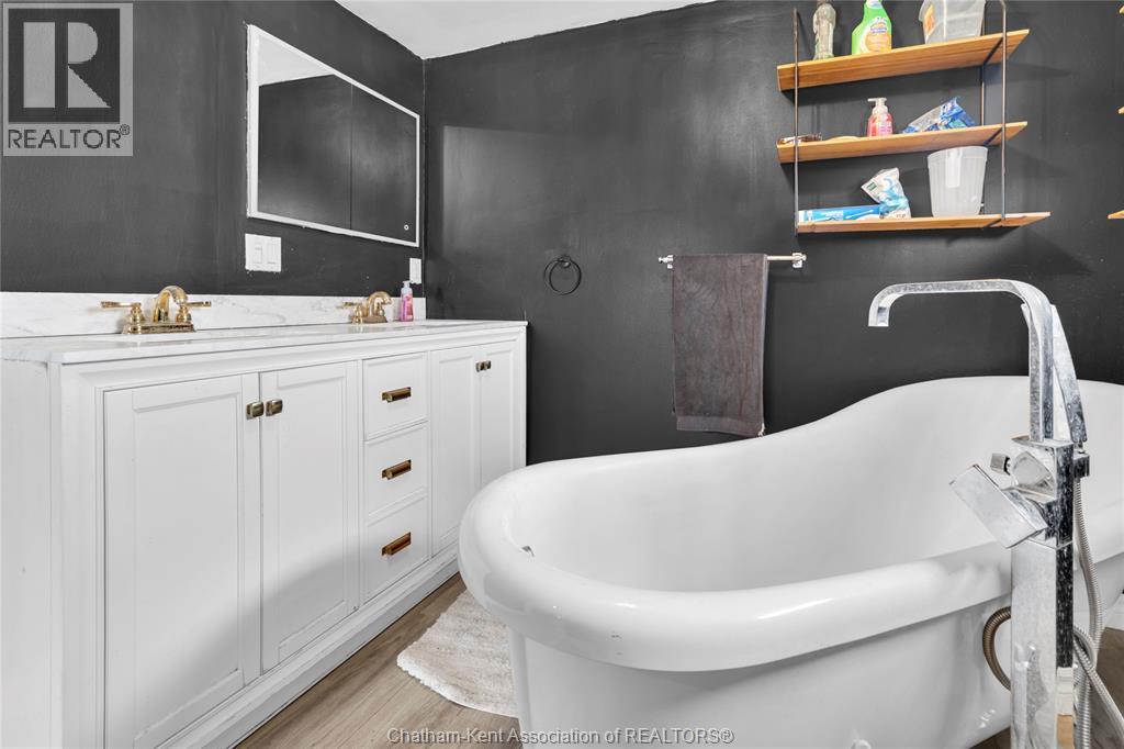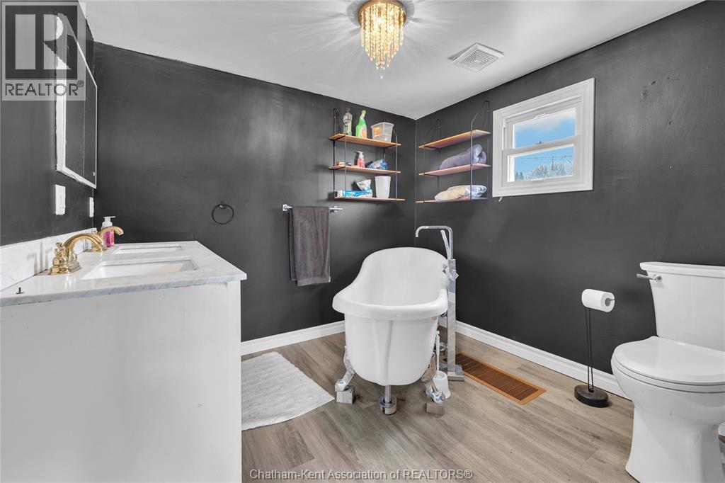 Looking for a 4 bedroom home? Look no further! Located on the outskirts of Tilbury, this home features 4 bedrooms, 2 bathrooms and a large eat in kitchen with updated cabinetry. This home has also had updated flooring throughout, and offers a spacious primary bedroom with a 3piece ensuite with free standing soaker tub – the perfect place to unwind after a long day! Enjoy the privacy of being located outside of town while you relax on the back deck. The detached garage is heated and offers plenty of space for the hobbyist or to store your toys. There is an additional loft on the garage with tons of storage space. Enjoy the conveniences of nearby town amenities, while still having the peaceful country feeling and easy access to the 401 for commuting convenience. (id:64974)
