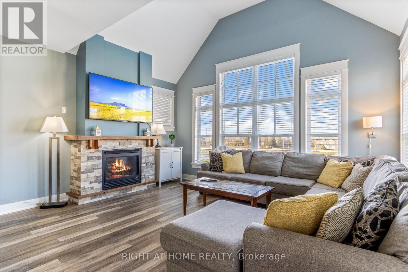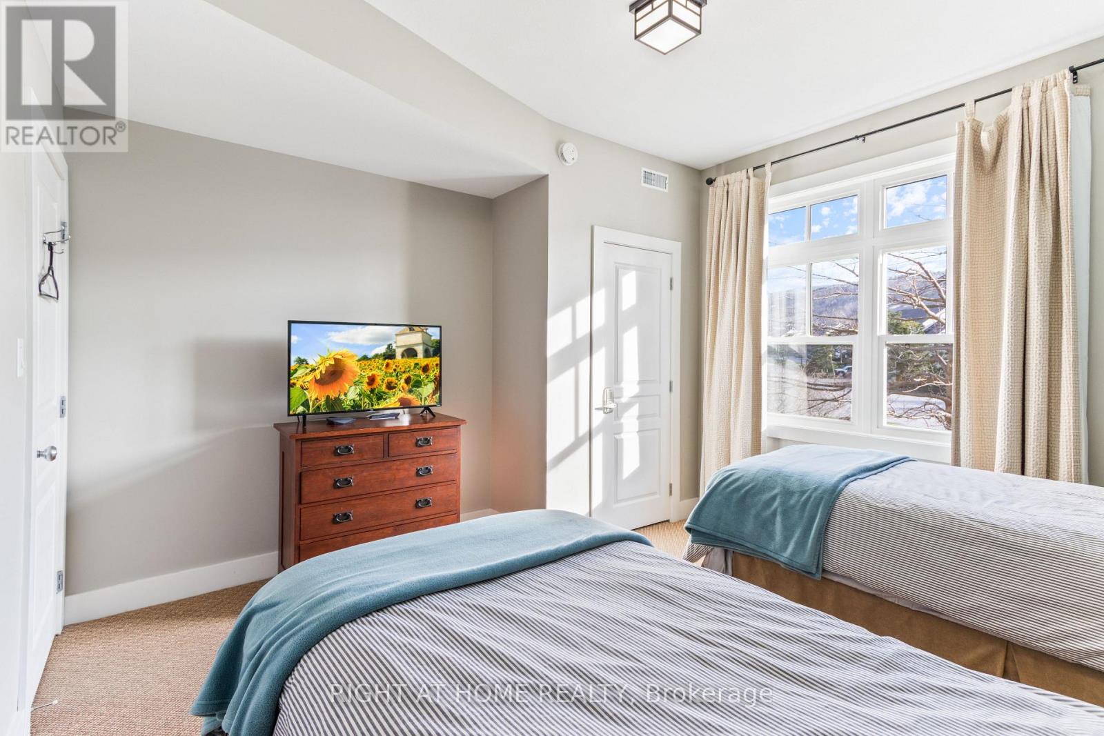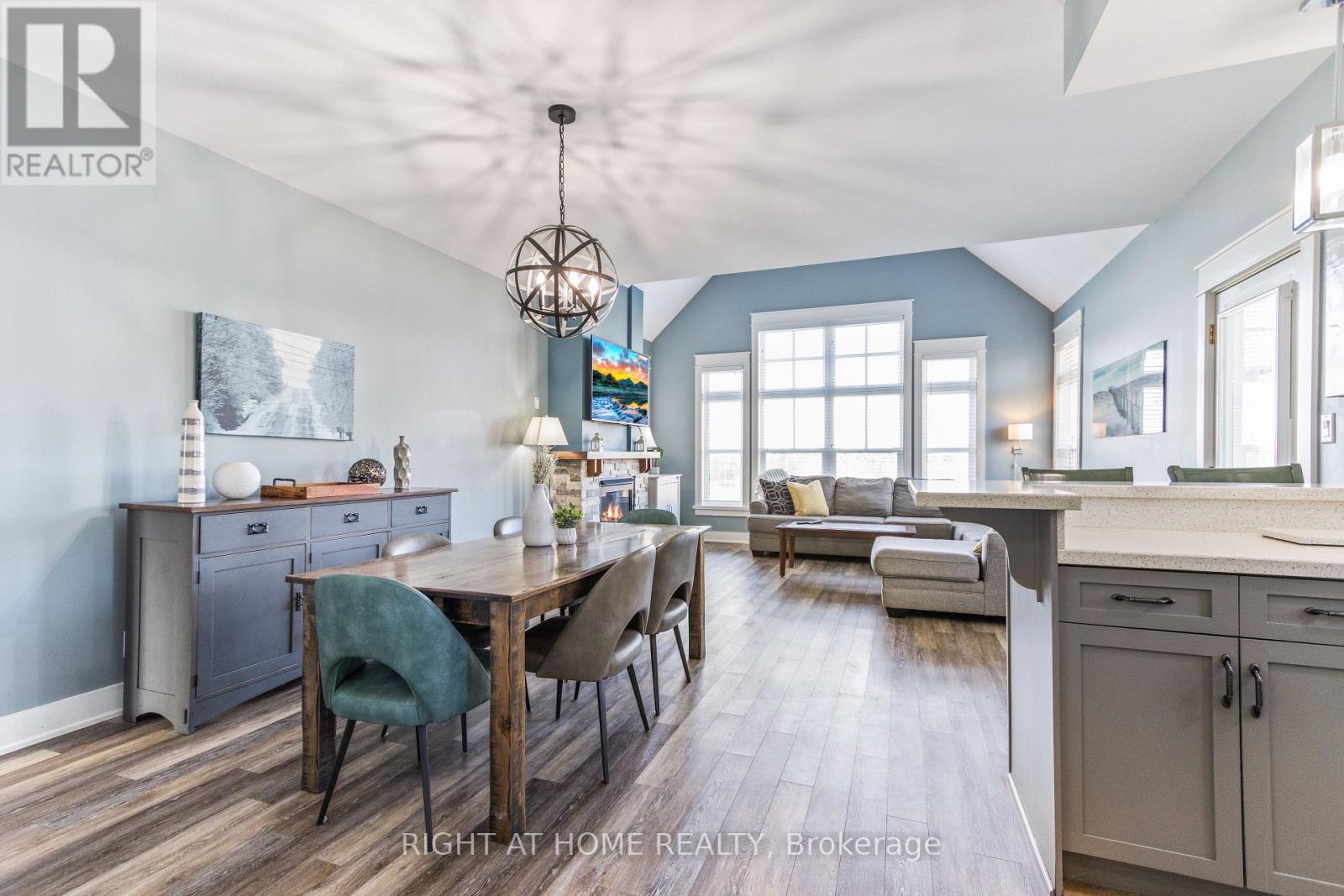 Experience all-season living and lucrative investment potential in this beautifully renovated 3-bedroom, 2-bathroom stacked townhome located in the sought-after Rivergrass community, eligible for a Short-Term Accommodation (STA) license. Perfectly situated just minutes from Blue Mountain Village, ski hills, golf courses, beaches, Collingwood, and Scandinave Spa, this turnkey, fully furnished retreat offers a rare opportunity to enjoy and profit from one of Ontarios top four-season destinations.This bright, two-story corner unit features a spacious open-concept layout with an upgraded kitchen, charming brick fireplace, and new finishes throughout, including updated countertops, main level flooring, stylish bathrooms, light fixtures, window coverings and more. Two generously sized bedrooms and a 4-piece bath are located on the main level, while the private upper-level primary suite boasts a Juliette balcony, 3-piece ensuite, and double closet an ideal layout for guests or family. Enjoy the private storage locker for skis, in-suite laundry, and smart door lock/camera system, plus access to resort-style amenities including a seasonal pool, year-round hot tub, resort shuttle, Blue Mountain Village Association Membership (with exclusive discounts, private beach access, event perks, and more), and 24-hour security. Currently operating as a successful short-term rental, this unit can earn $90,000+ in annual rental income, making it the perfect investment opportunity with personal-use flexibility. Everything you need is included from appliances and kitchenware to artwork and TVs, just bring your bags! Whether you're looking for a savvy investment, a weekend escape, or a full-time residence with unbeatable amenities and views of the golf course, 130 Fairway Court #229 delivers it all. (id:64974)