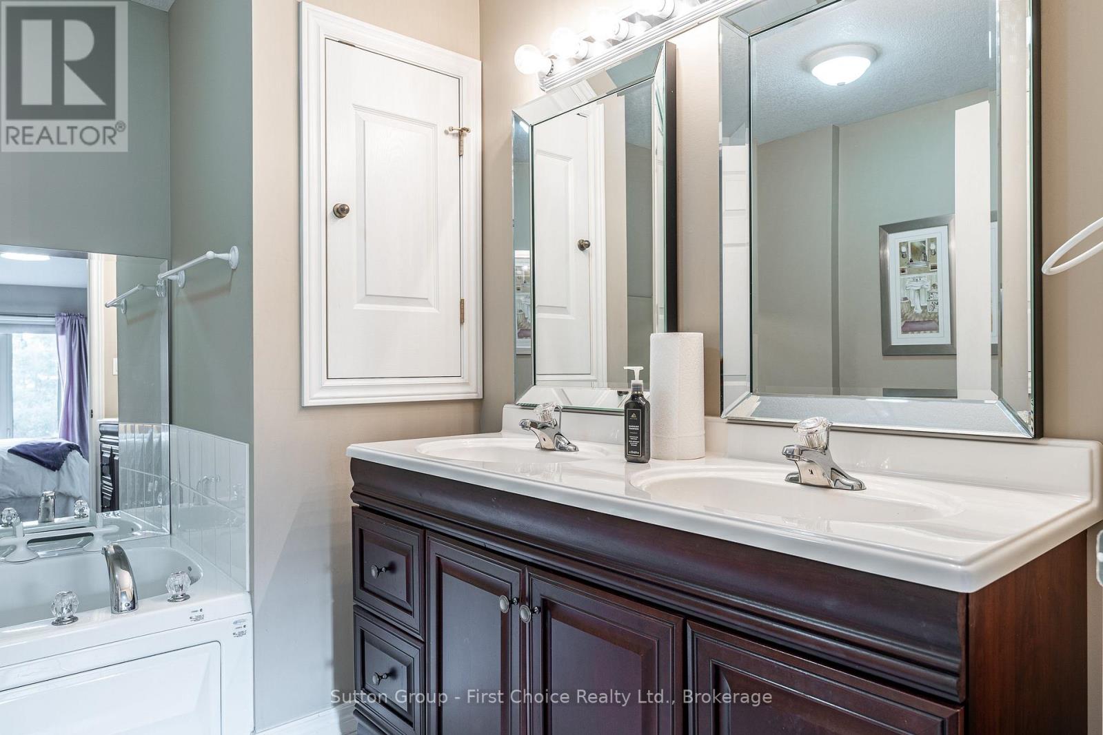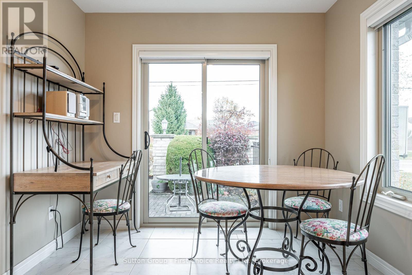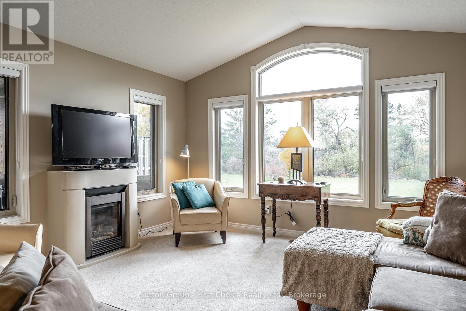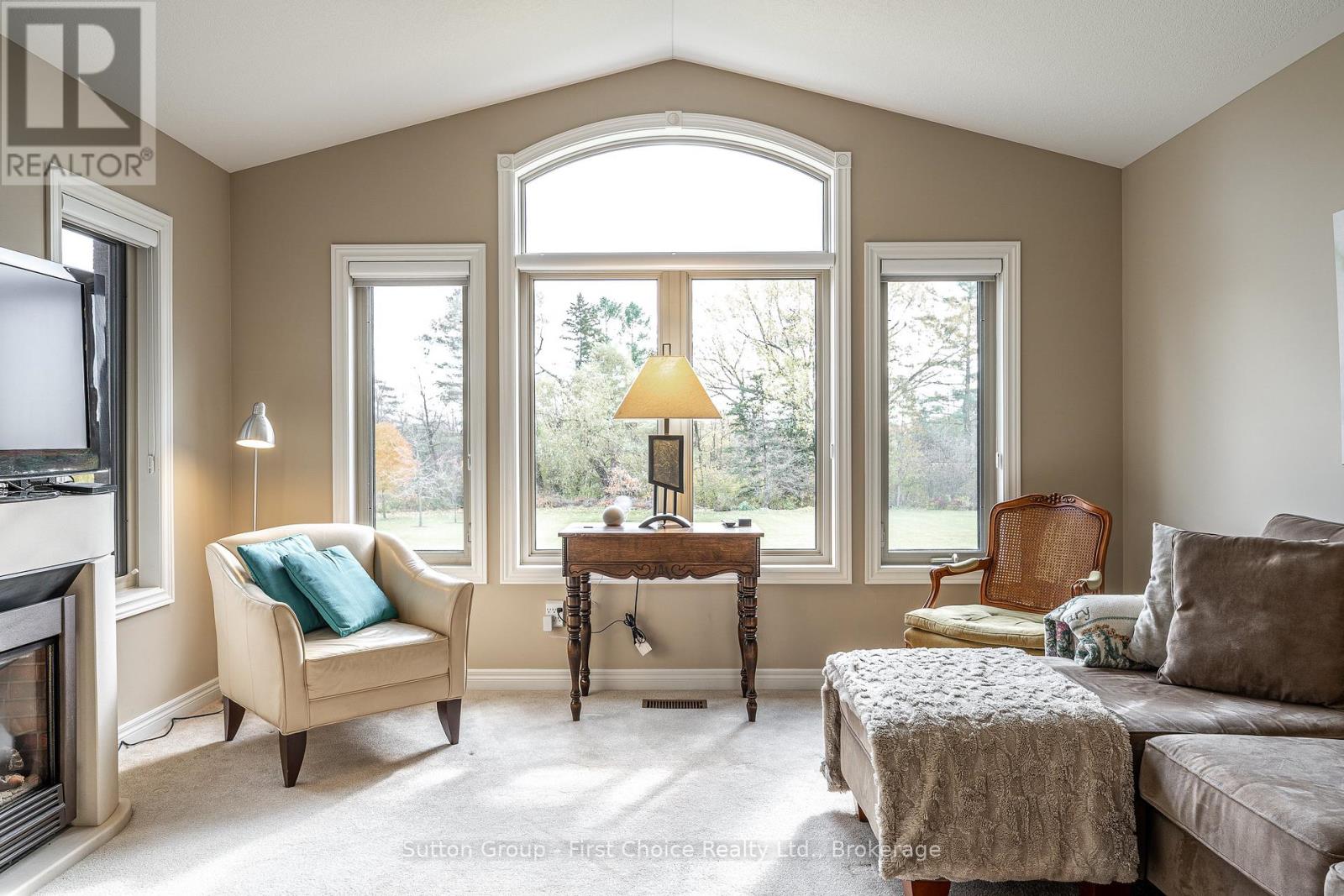 Welcome to easy, carefree living in this beautifully maintained bungalow condominium unit - the perfect choice for retirees or anyone seeking comfort and simplicity. Tucked away in a quiet, well-kept community, this home combines modern convenience with a peaceful, natural setting. The bright, open-concept floor plan features soaring cathedral ceilings and large windows that create a spacious, airy feel. The living and dining areas flow effortlessly into a stylish, functional kitchen - ideal for both relaxing and entertaining. The primary bedroom offers a calm retreat with generous closet space and a thoughtfully designed ensuite with heated floors. Enjoy plenty of storage options throughout, plus the added benefit of an attached two-car garage. Step outside and unwind among mature trees and beautifully landscaped green space, offering a tranquil backdrop for morning coffee or an evening stroll. Located just a short walk from the Mitchell Golf Club and close to local parks, shops, and amenities, this home provides the ideal balance of convenience and comfort. Embrace a low-maintenance lifestyle in a friendly, welcoming neighbourhood - your next chapter starts here. (id:64974)