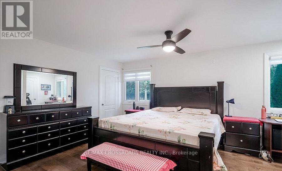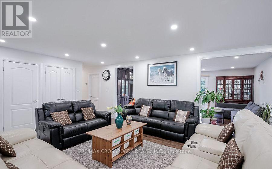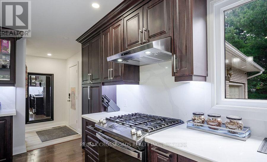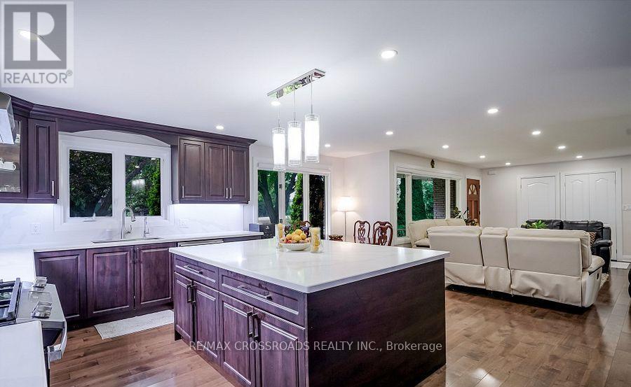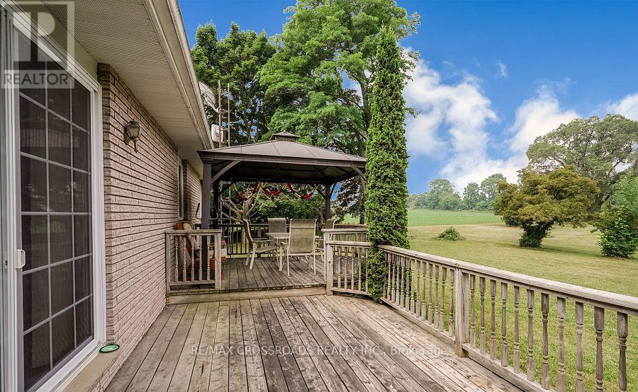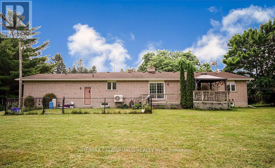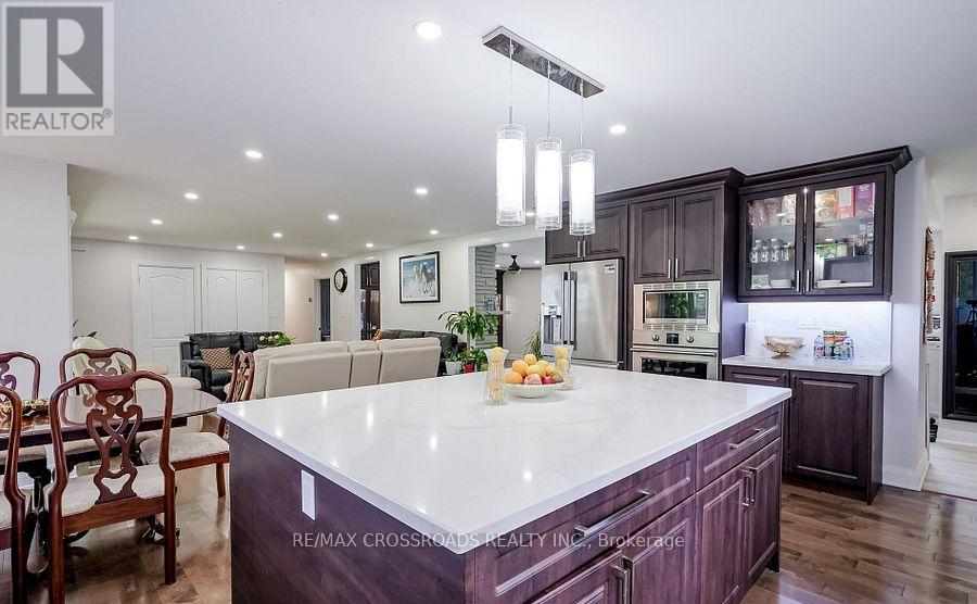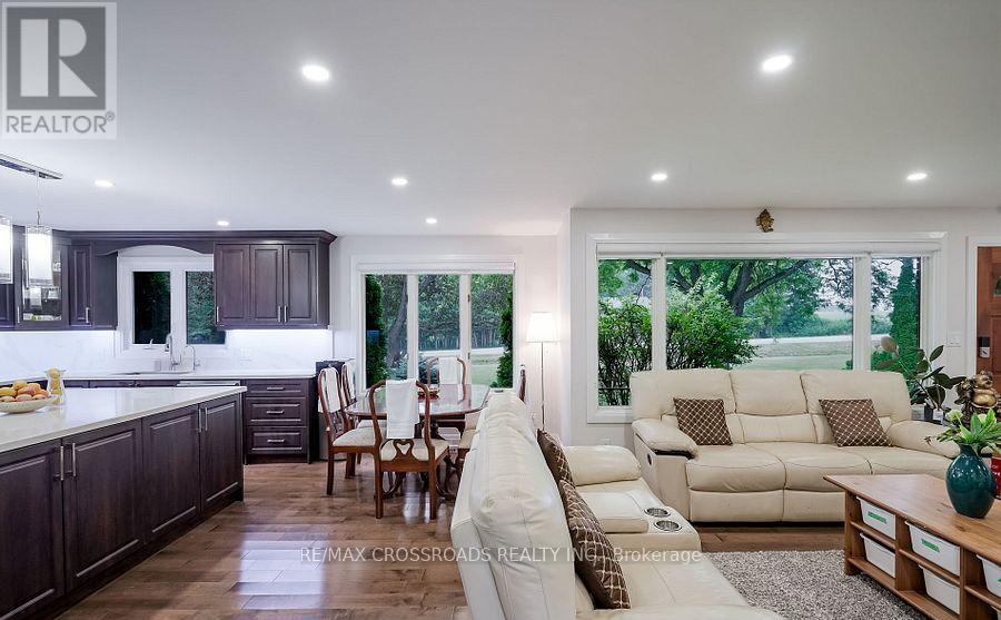 Beautiful Brick Bungalow on 1.5 Acres ! Don't miss this rare opportunity to own a fully renovated (2022) brick bungalow nestled on a stunning 1.5-acre lot, complete with mature apple and pear trees, a fenced garden area, and plenty of backyard space to enjoy with family and friends.This charming home features a spacious 2-car attached garage and a bright, modern interior family-sized kitchen renovated in 2023 and includes brand-new cabinets, a massive quartz center island with added storage, and high-end stainless steel appliances , gas stove, built-in oven, 4-door fridge, built-in dishwasher all overlooking the open-concept dining and living areas. A large picture window in the living room offers stunning views of the front yard.Enjoy hardwood flooring throughout (2022), pot lights in the kitchen, living, and family rooms, and a cozy family room with a wood-burning fireplace, custom built-in showcase and a walk-out to the deck and backyard. 200 Amps upgraded electrical panel (2023).The front yard mature trees provide shade all summer long, creating a peaceful, private setting.This home offers both comfort and elegance ideal for those seeking space, nature, and modern upgrades in one perfect package (id:64974)
