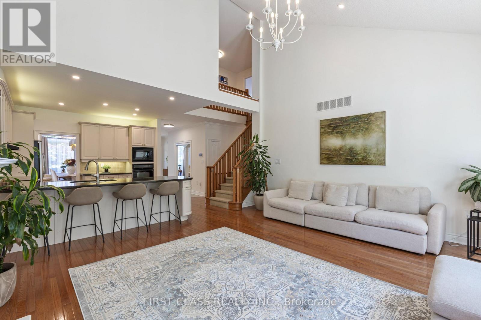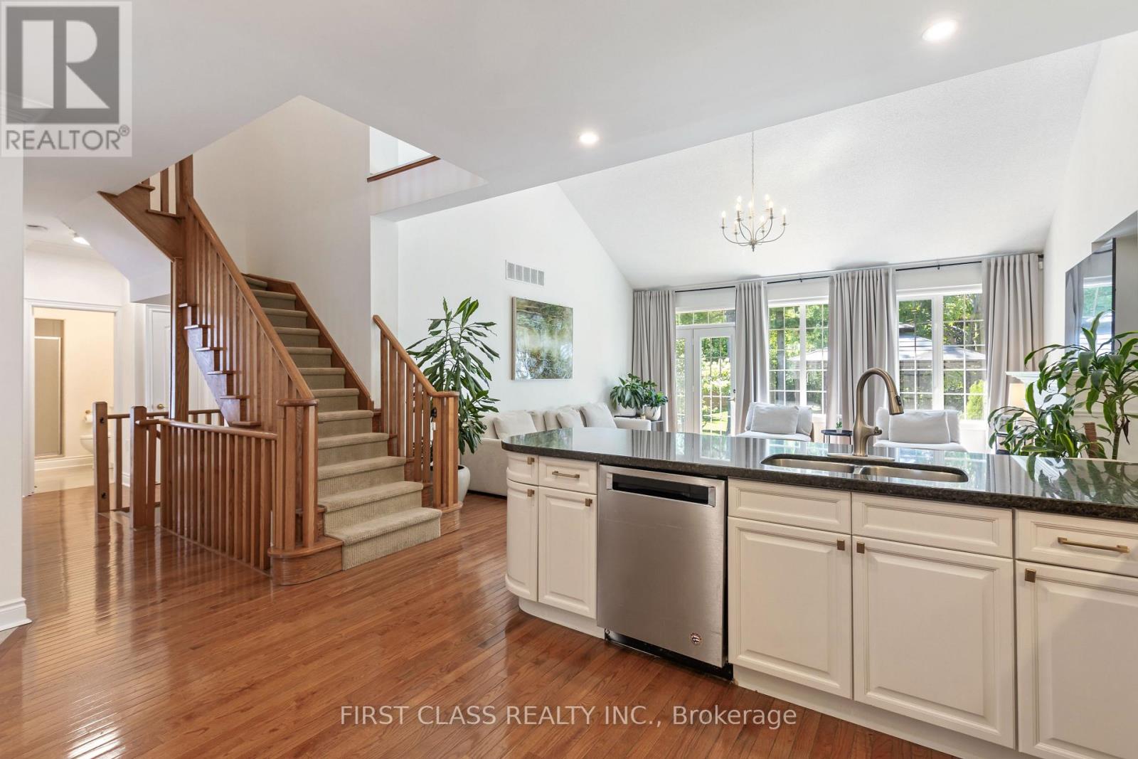 Sitting on a rare 242 deep ravine lot with a separate entrance, this spacious bungaloft offers two bedrooms on the main floor including a master suite. All washrooms have been fully renovated, and the entrance features elegant marble flooring. With over 4,600 sq. ft. of finished living space, the home includes a basement with a second kitchen perfect for rentals or multigenerational living. Inside youll find soaring ceilings, a gourmet kitchen, designer lighting, fresh paint, and a high-efficiency tankless heater. Outside, enjoy an oversized deck with gazebo, veggie garden, and breathtaking ravine views. Prestigiously located in Iroquois Ridge North near top schools, parks, trails, and shopping. (id:64974)