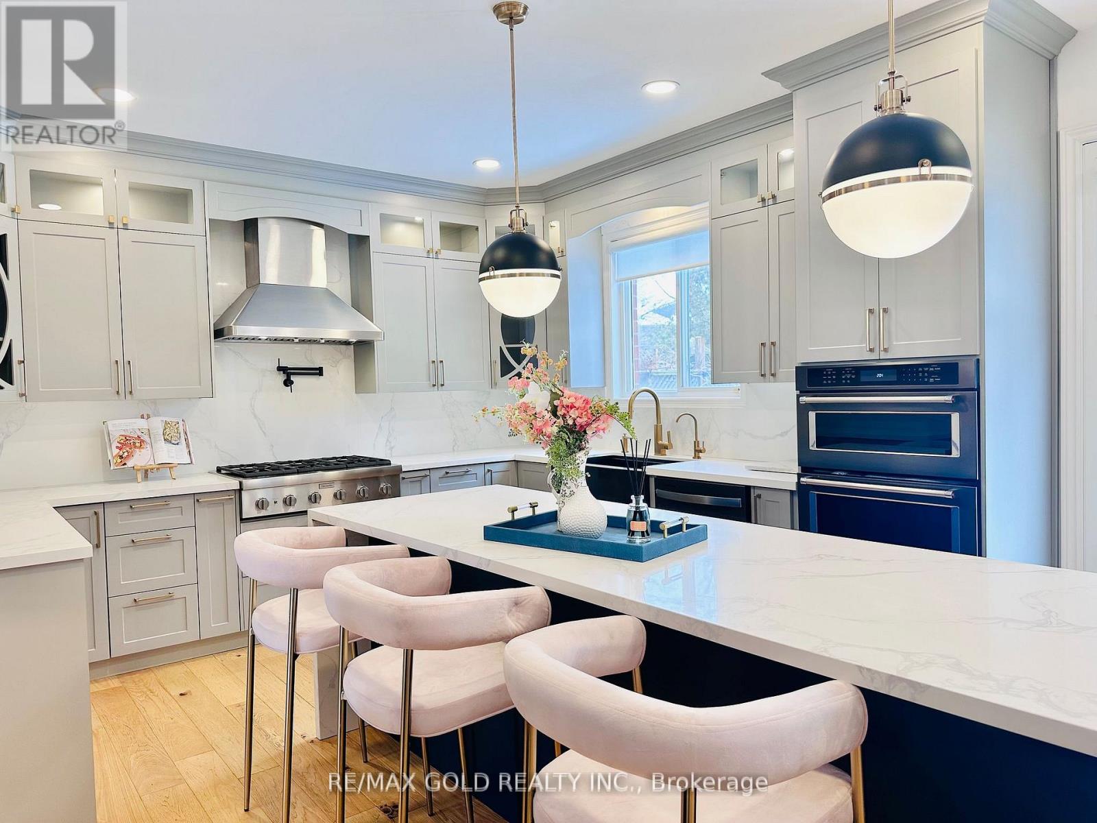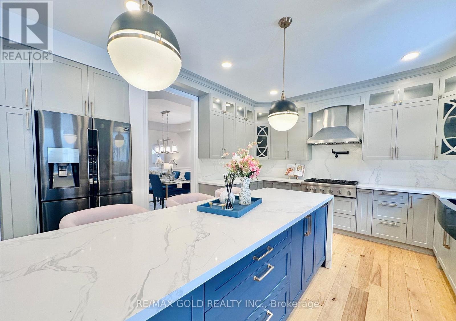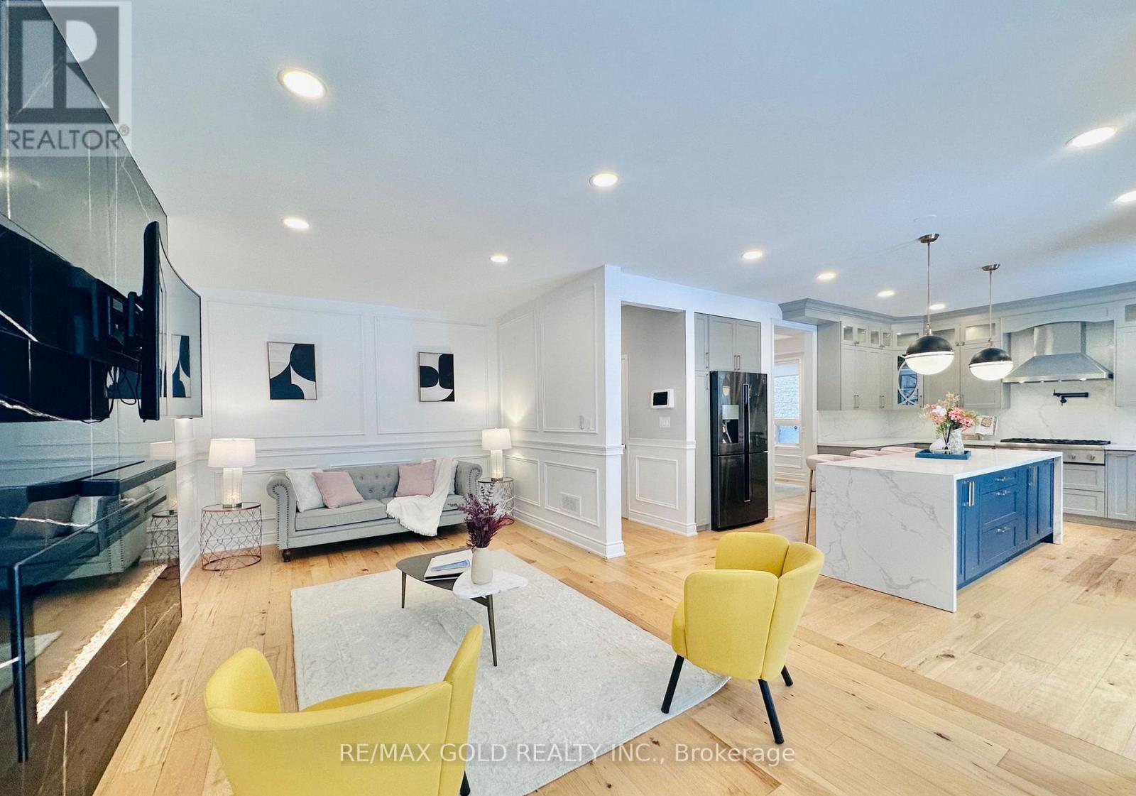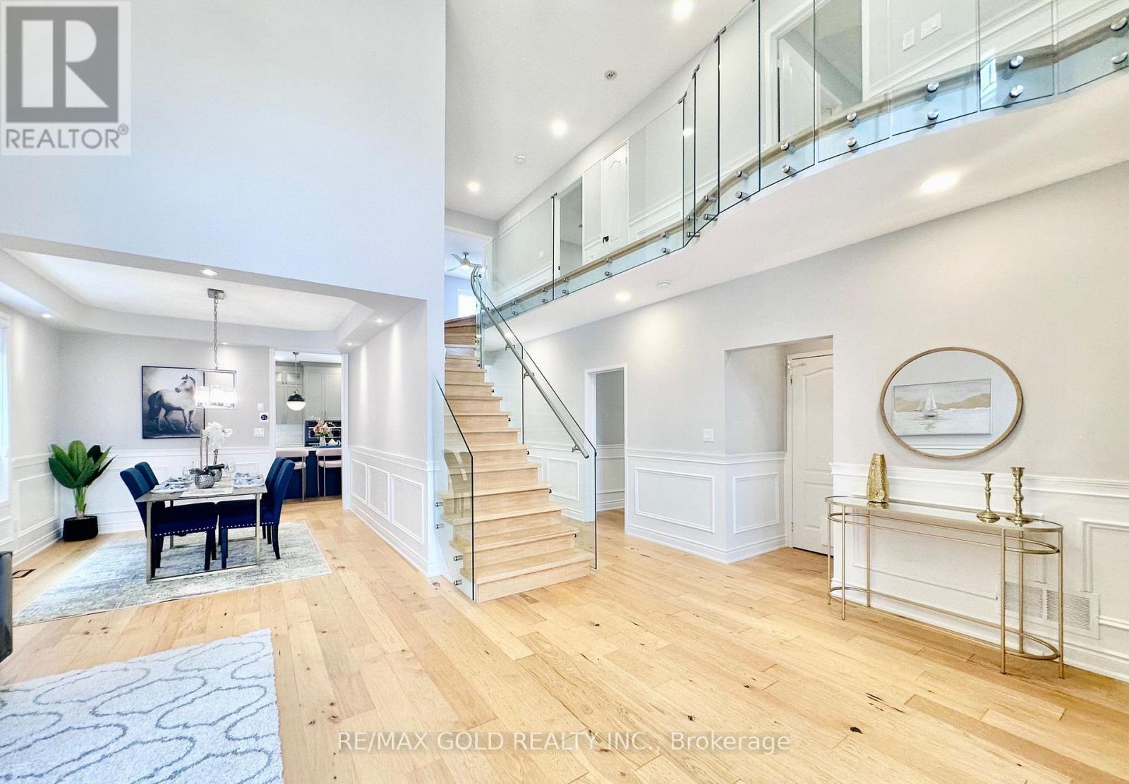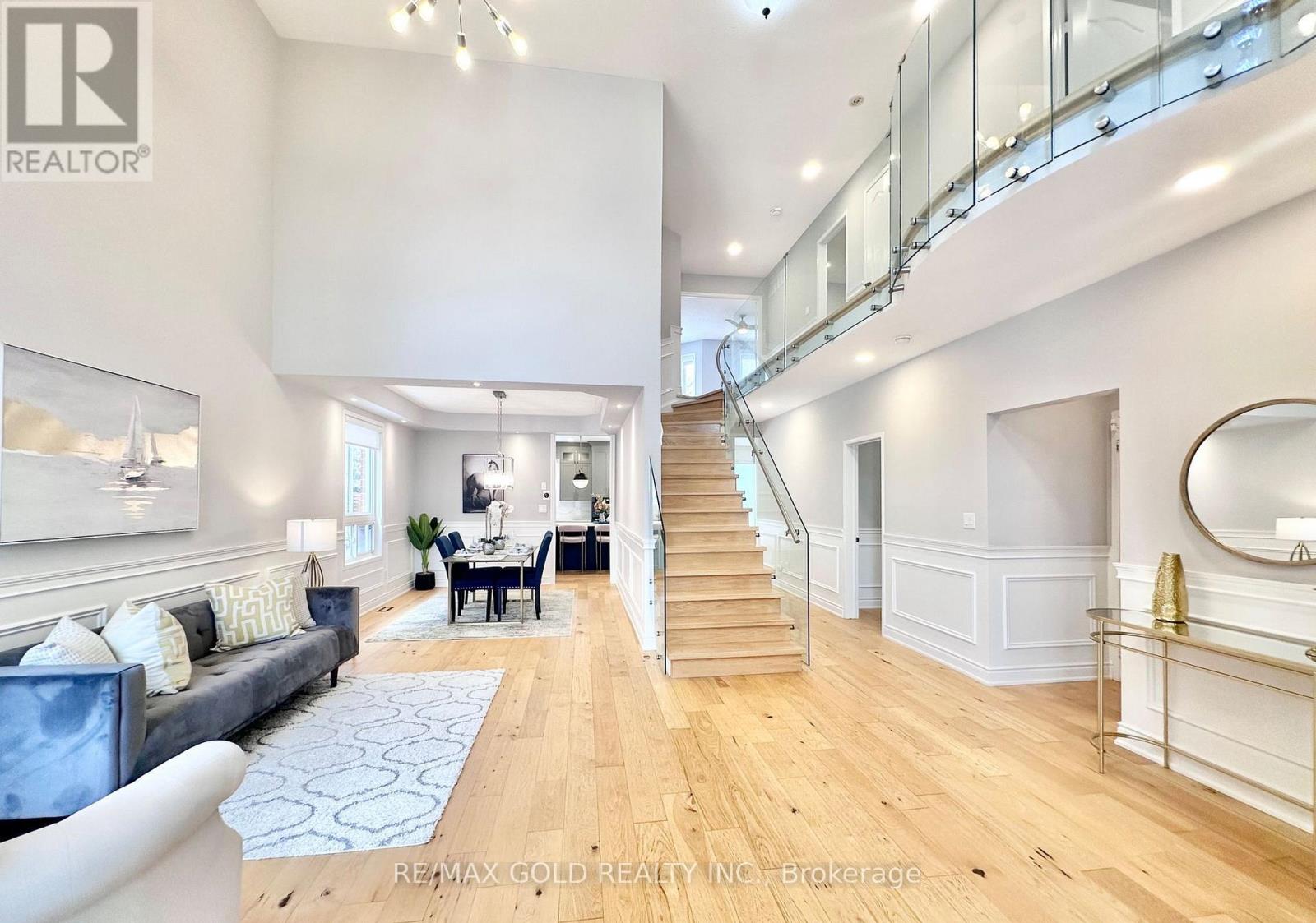 *See 3D Tour* This Stunning Luxurious Smart Home Offers Approximately 4500 Square Feet Of Refined Living Space With Over 300K Spent On Upgrades (2022). Featuring A Grand Open-To-Above Foyer And Living Room, Elegant Wainscoting Throughout The Main Floor, And Modern Hardwood Flooring With 9-Foot Ceilings. The Custom Gourmet Kitchen Showcases Tall Cabinets, Top-Of-The-Line Built-In Wall Ovens, A Striking Island With Breakfast Bar And Extra Cabinet Storage, Quartz Countertops With A Waterfall Edge Paired With A Matching Quartz Backsplash And Smart Moen Faucet. A Beautiful Hardwood Staircase With Sleek Glass Panels Leads To The Upper Level, Enhancing The Home's Modern Elegance. The Inviting Family Room Highlights Pot Lights And A Contemporary Accent Wall. Thoughtfully Designed With Two Master Bedrooms, Each Bedroom Offers A Full Or Semi-Ensuite, While The Primary Suite Boasts A Spa-Like Bathroom And Walk-In Closet With Custom Shelving System. Professionally Finished Basement With An Extra Bedroom And 3 Pc Bathroom. Modern Light Fixtures And Silk Roman Shades Throughout! Enjoy The Upgraded Stucco Exterior (2022), Glass Garage Doors, Stamped Concrete Driveway, And Backyard Patio. Perfectly Situated In A Highly Sought-After Neighborhood With A Top-Rated High School, Close To Parks, Shopping, Amenities, Highways, And GO Station (id:64974)