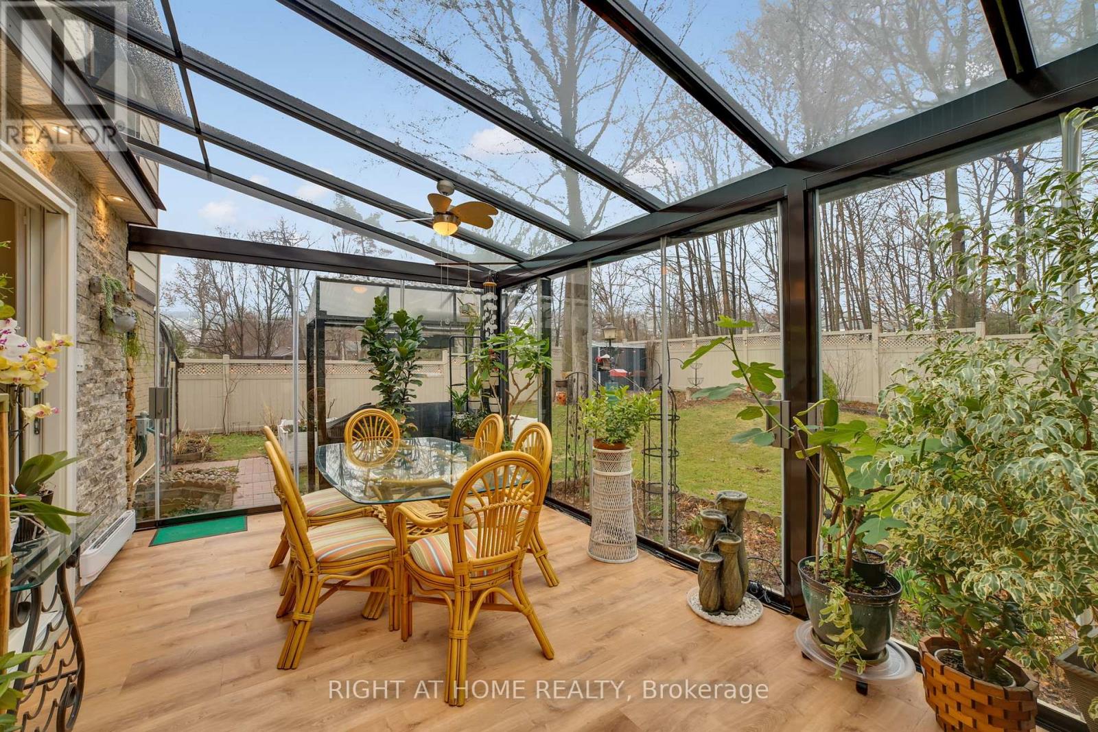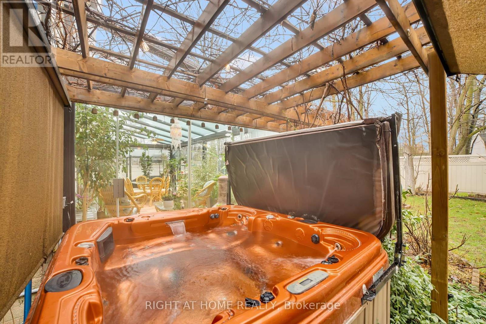 Exceptional 4-bedroom, 4-bathroom residence in one of Burlington most desirable family neighbourhoods. Thoughtfully updated and meticulously maintained, this home offers a rare combination of style, comfort, and versatility.A standout feature is the sun-filled heated-floor sunroom-an inviting almost year-round retreat with automatic shading and overlooking the private backyard oasis. Screen and projector as an additional great option to spend a night with your family. Designed for both relaxation and entertaining, the outdoor space features a hot tub (2019), upgraded exposed aggregate concrete and driveway (2020), vinyl fencing with two gates (2022), and two sheds (2024). The fully finished basement with separate entrance, enclosed walkout (2022), and full kitchen provides ideal space for multi-generational living or income potential. Wooden fireplace in a living room brings lots of warmth and coziness to this home.The home showcases a beautifully renovated kitchen and bathrooms (2018) with elegant finishes, complemented by major upgrades including updated roof (2015), attic insulation (2022), and new eavestroughs, downspouts, and fascia (2025). Both toilets on the second floor have in-built bidet functionality (one is tankless) with electrical heating for water and seat, UV-sanitizing and self-cleaning. A common bathroom shower has an automatic thermoregulated faucet. One bathtub is air jets, another has whirlpool jets.This House is Perfectly located at Brant Hills, close to top-rated schools, parks, shopping, and commuter routes, this move-in-ready home offers an exceptional lifestyle in a prime Burlington setting. (id:64974)