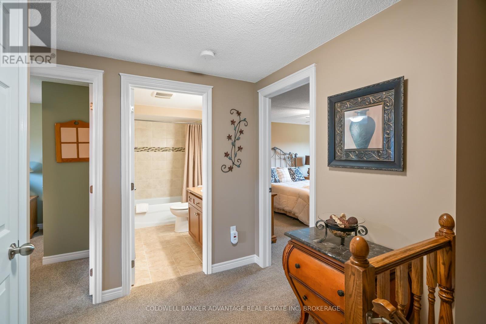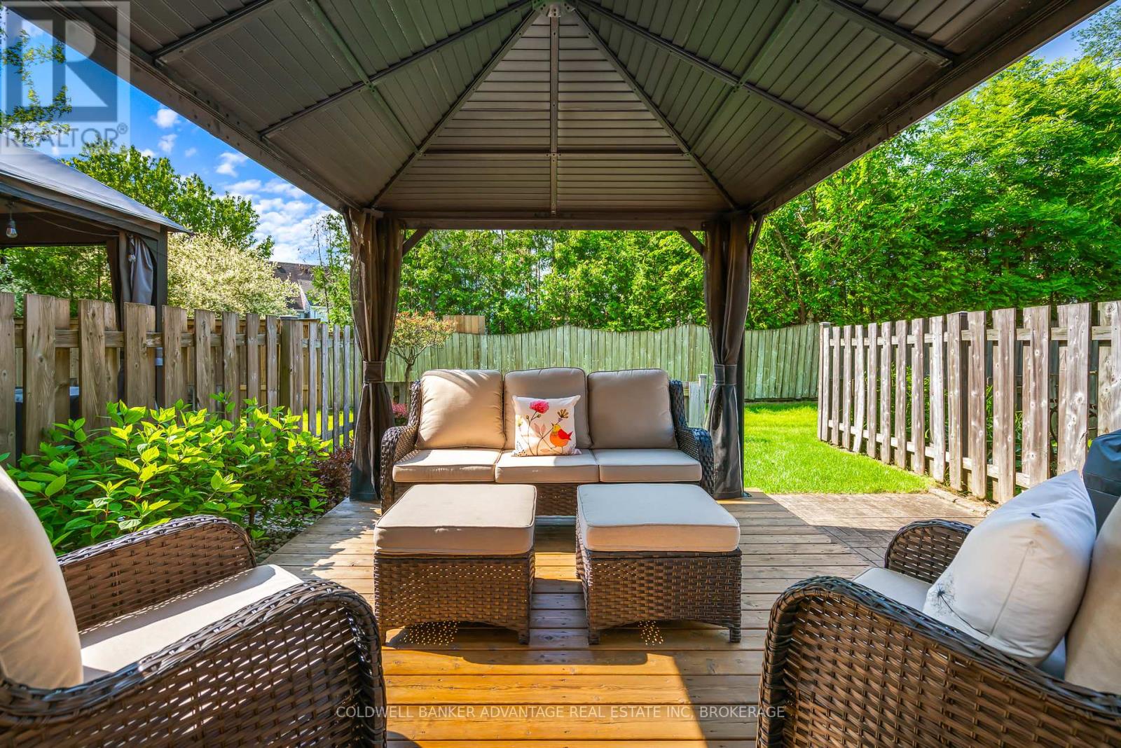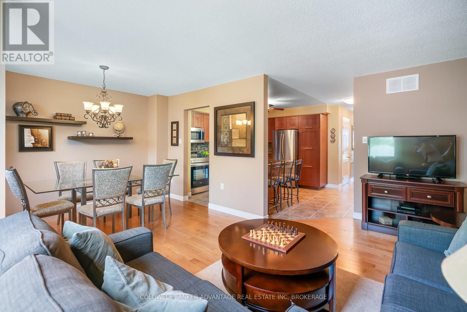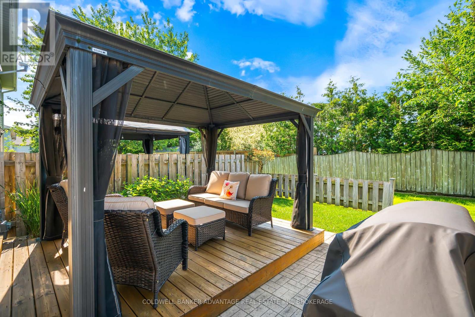 Beautifully renovated 3-bedroom townhouse in prime north Welland location. Welcome to this impeccably kept and meticulously maintained 1,400 sq. ft. 3-bedroom, 3-bath townhouse with attached garage, perfectly situated in a quiet, 24-unit condo community. This truly spotless, move-in ready home has been extensively renovated with over $75,000 in quality upgrades over the last few years, including a modern kitchen with island & stainless steel appliances, custom backsplash, complemented by maple hardwood floors and fresh paint. Every detail has been thoughtfully updated, including all interior doors and trim, and 3 stylish new bathrooms. Upgraded R50 attic insulation. The recently completed and professionally finished lower level offers a spacious rec-room with cozy gas fireplace, a brand-new 4-piece bathroom, a laundry room with newer washer & dryer, plus rough-in plumbing for a future bar or kitchenette, ideal for potential in-law or student accommodations. Enjoy outdoor living on your private rear patio, deck with gazebo and gas BBQ line, surrounded by beautifully landscaped grounds, large trees and a privacy wall of mature cedars. This extremely well-managed complex has seen all the major improvements, including new roofs, windows, garage doors, and resurfaced porches. All of the roadways and driveways on this property are scheduled to be completely re-surfaced with new asphalt this year (2026). Low taxes & low condo fees plus a strong and substantial reserve fund provides added peace of mind. Located on a quiet dead-end street, you're just steps from Niagara College, the YMCA, Seaway Mall, and the best of north Welland's shops and restaurants. You can retire from grass cutting & snow shovelling and enjoy a nice maintenance free, condominium lifestyle! Don't miss your chance to own in this rarely available and highly sought-after community. (id:64974)