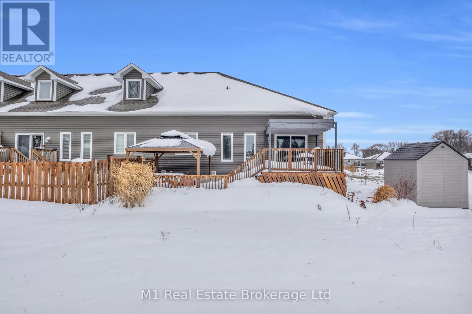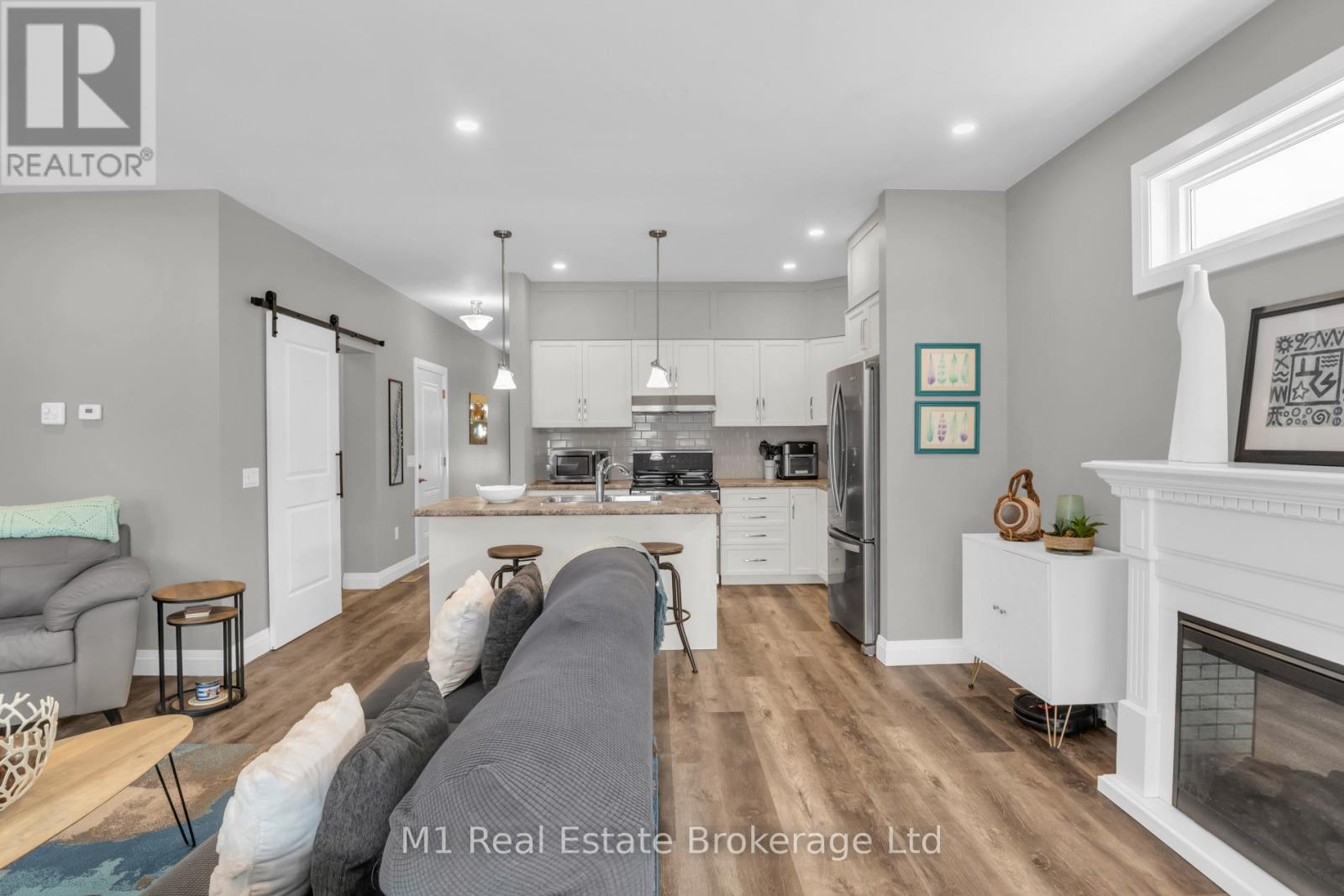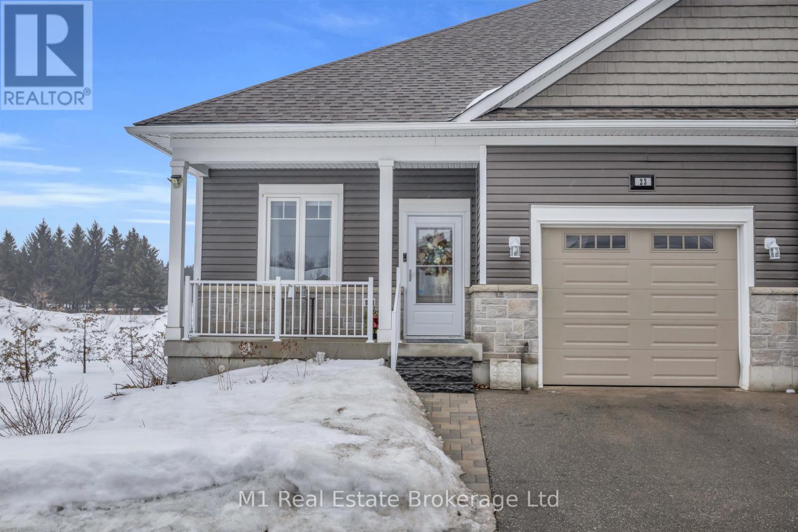 Discover this move-in-ready 2021 Quality Homes bungalow at 24 George Street, Unit 23 in Harriston, offering 1,650+ sq/ft of finished living space in a quiet, dead-end location with no neighbours on one side. Enjoy a spacious side yard, garden, and large two-tier deck for ultimate outdoor living and privacy. Inside, the bright open-concept layout features luxury vinyl plank flooring, upgraded lighting, and a modern kitchen with island seating, stainless steel appliances, and ample storage, plus convenient main-floor laundry. The main level offers 2 bedrooms and a full bathroom, while the professionally finished basement adds a third bedroom, second full bathroom, rec room, bonus office, and charming restored vintage doors for extra character. Perfectly located within walking distance to town, schools, shopping, and amenities and just a short commute to Guelph and the Tri-Cities, this rare end-unit bungalow combines flexible living spaces, upgraded finishes, and low-maintenance comfort. Don't miss this opportunity. Schedule your showing today! (id:64974)