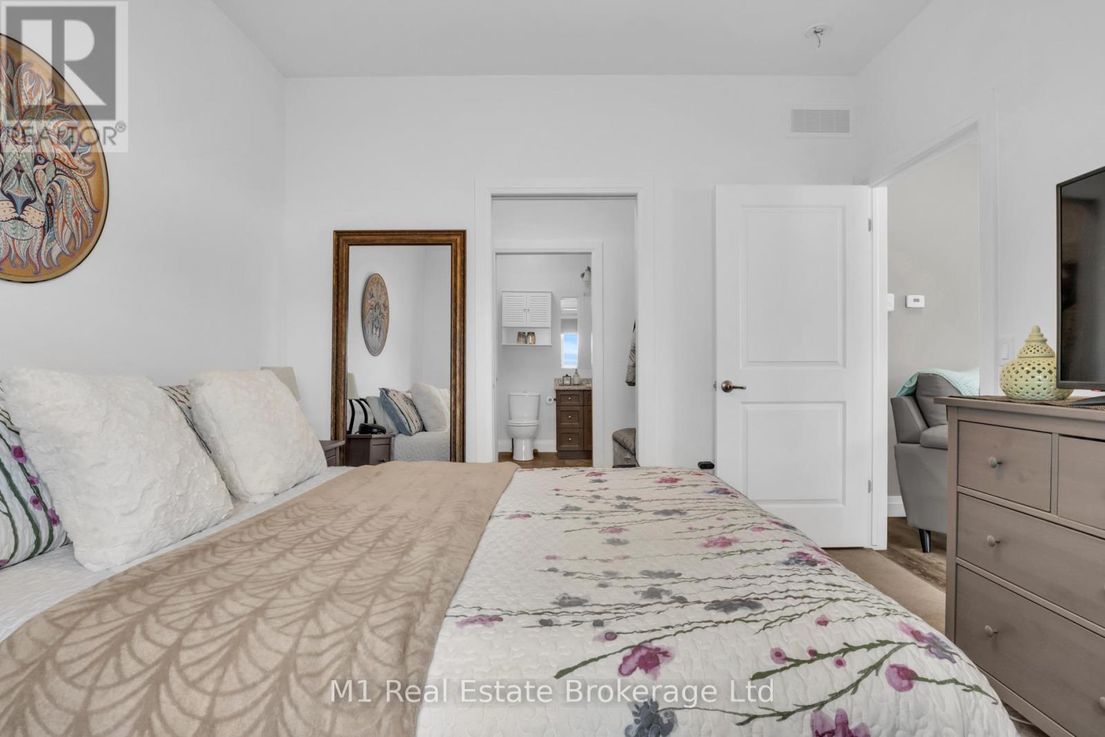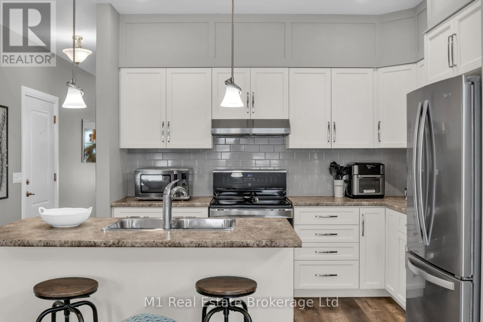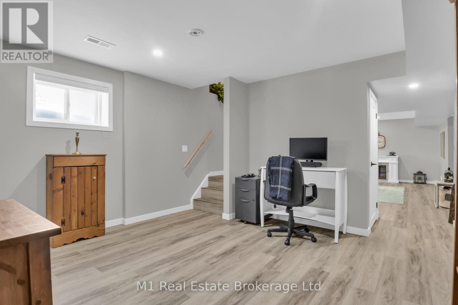 Discover this move-in-ready 2021 Quality Homes bungalow at 24 George Street, Unit 23 in Harriston, offering 1,650+ sq/ft of finished living space in a quiet, dead-end location with no neighbours on one side. Enjoy a spacious side yard, garden, and large two-tier deck for ultimate outdoor living and privacy. Inside, the bright open-concept layout features luxury vinyl plank flooring, upgraded lighting, and a modern kitchen with island seating, stainless steel appliances, and ample storage, plus convenient main-floor laundry. The main level offers 2 bedrooms and a full bathroom, while the professionally finished basement adds a third bedroom, second full bathroom, rec room, bonus office, and charming restored vintage doors for extra character. Perfectly located within walking distance to town, schools, shopping, and amenities and just a short commute to Guelph and the Tri-Cities, this rare end-unit bungalow combines flexible living spaces, upgraded finishes, and low-maintenance comfort. Don't miss this opportunity. Schedule your showing today! (id:64974)