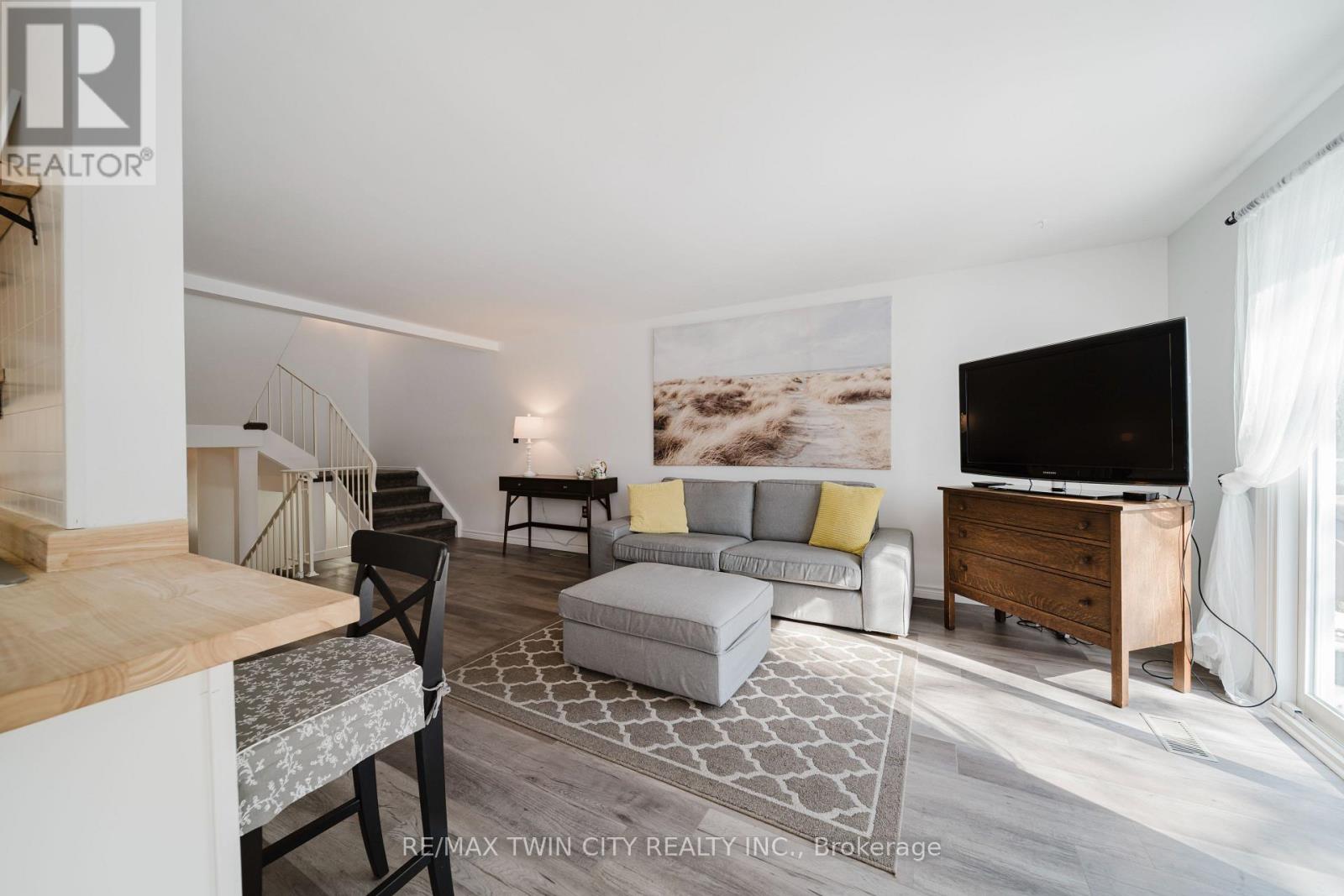 Welcome to 54 Green Valley Drive in Kitchener. This well-located 3-bedroom, 2-bathroom townhome is just minutes from shopping, Conestoga College, and Highway 401, making it an ideal option for commuters, families, or investors. The home features a spacious entryway with ample storage, a convenient powder room, and direct access to the garage. The main level offers a bright living room, dinette, and an updated kitchen with an island and access to a large private deck overlooking the fully fenced backyard. Mature trees provide excellent privacy, especially throughout the summer months. Upstairs you'll find three bedrooms, a large main bathroom, and an oversized storage room that could easily function as a home office. The basement includes a separate entrance, a comfortable rec room, and plenty of additional storage. Affordable and move-in ready, this home is the perfect next step for first-time buyers or those upgrading from a smaller space, with a location that makes everyday living and commuting simple. (id:64974)