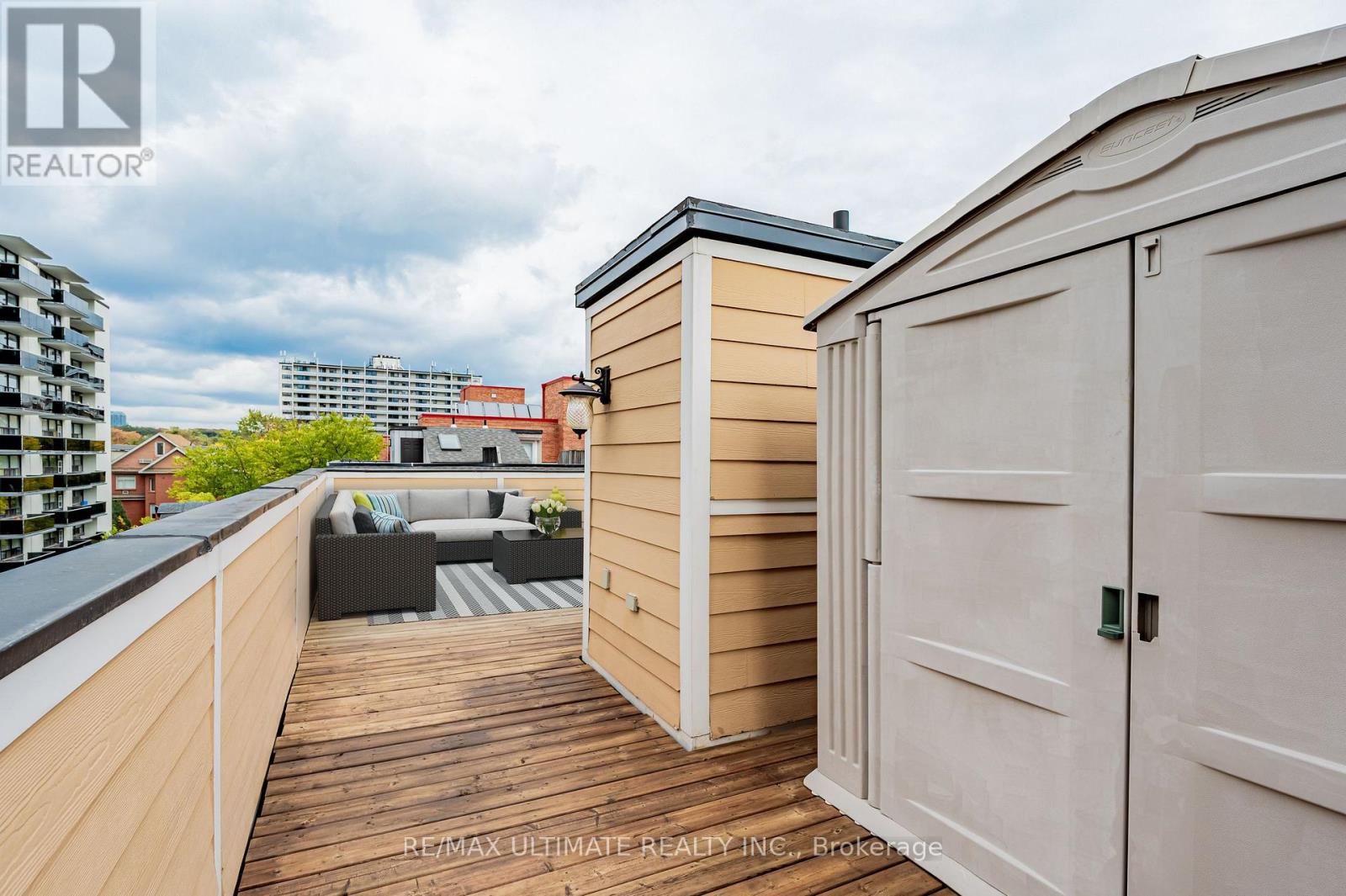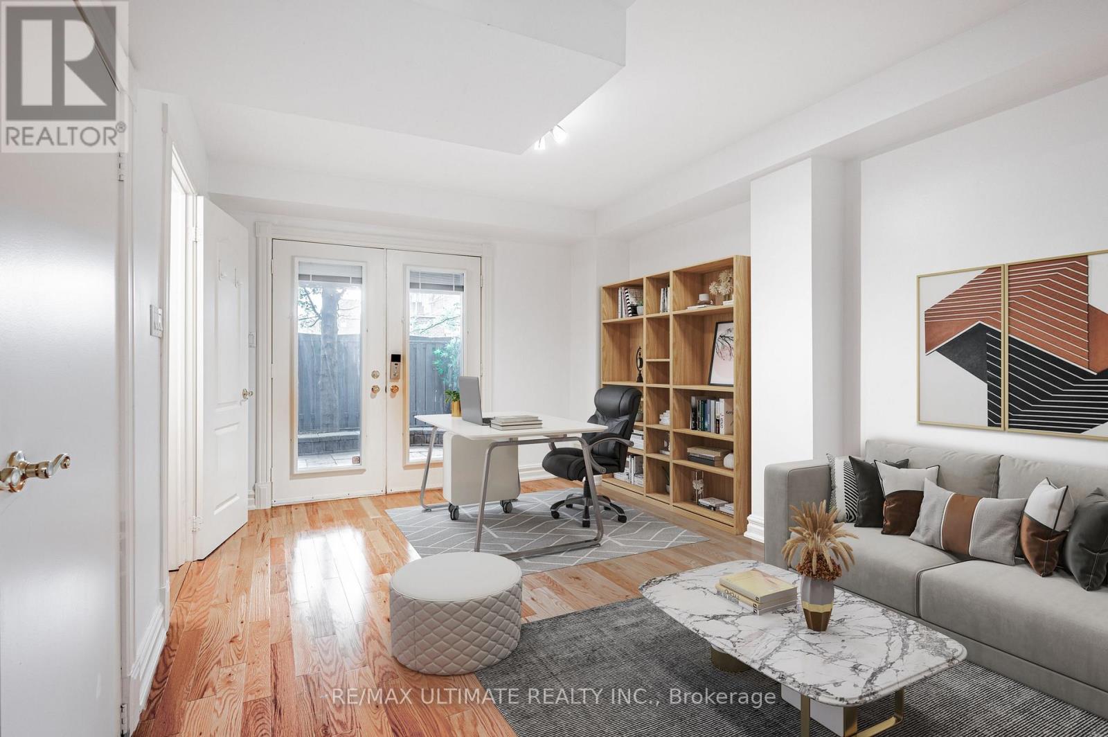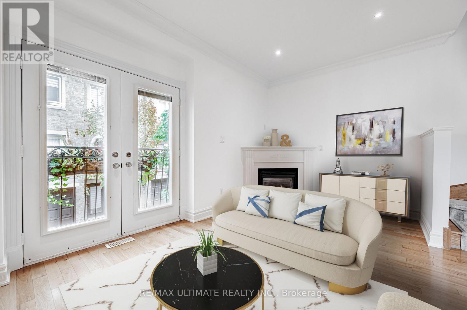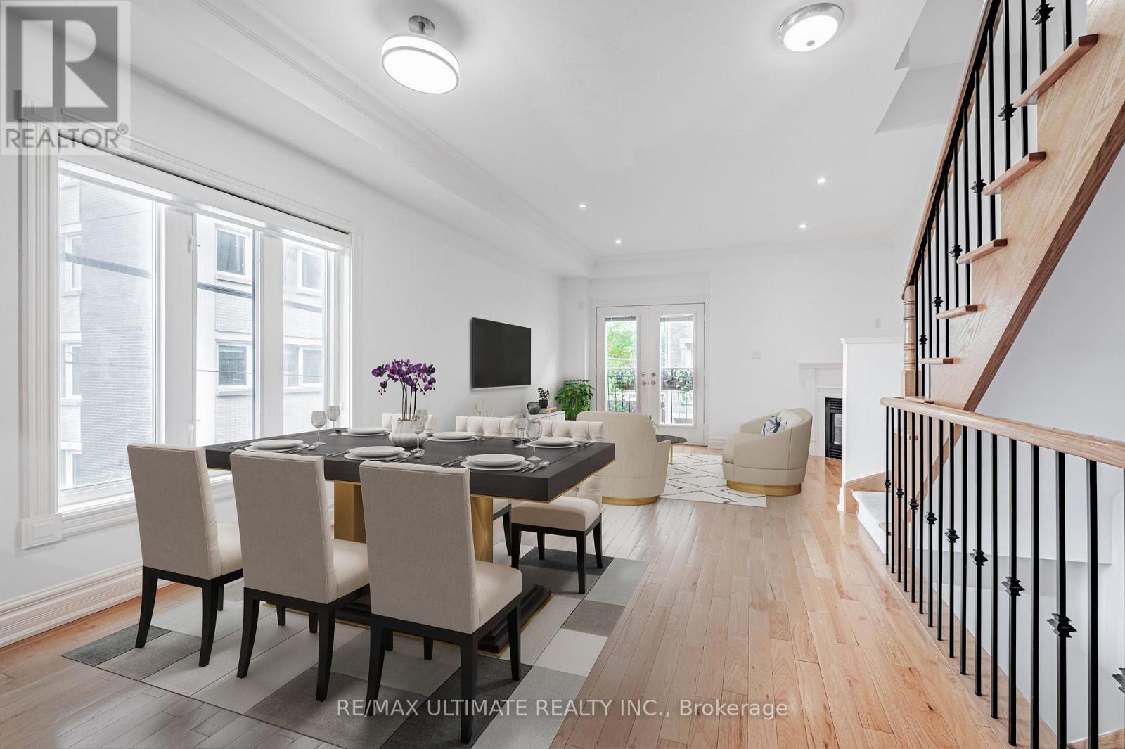 Your Urban Oasis Awaits, this freehold 2,200 sq.ft.+ end-unit executive townhome with garage, ideally located in the coveted Annex on a private cobblestone cul-de-sac with the best setback on the block. Just 20 steps to Spadina Station and boasting a 98% Walk/Bike/Transit Score, this rare offering combines space, privacy, and unbeatable convenience. Featuring 3 bedrooms + den (easily a 4th bedroom), 3 bathrooms, 9' ceilings, hardwood flooring, stainless steel appliances, modern bathrooms, and three separate walkouts. The ground level offers exceptional versatility with a private den featuring French door walkout to the fully fenced backyard and a 3-piece bathroom - ideal as a guest suite, home office, gym, or nanny quarters. With separate access from the garage and backyard, this level functions beautifully for multi-generational living or work-from-home needs. The second floor is designed for entertaining, featuring a spacious open-concept living and dining area with one of two gas fireplaces, crown moulding, pot lights, and hardwood flooring. The U-shaped kitchen offers abundant cabinetry, ample prep space, a built-in desk/workstation, stainless steel appliances including a 5-burner gas stove and French door refrigerator, double under mount sink, and two walkouts - one to a front Juliette balcony and another to the private kitchen deck complete with BBQ gas line. The third floor hosts two generously sized bedrooms with large windows and treetop views, a full 4-piece bathroom, linen storage, and full-size stacked washer and dryer. The entire fourth floor is dedicated to the primary retreat - a true sanctuary featuring a walk-in closet, Juliette balcony, second gas fireplace, and a luxurious 5-piece ensuite with double vanity, Jacuzzi soaker tub, oversized frameless glass shower, and private toilet room. Above it all, the fully fenced rooftop terrace offers 453 sq.ft. of private outdoor living with water bib, storage hed and a perfect city view. (id:64974)