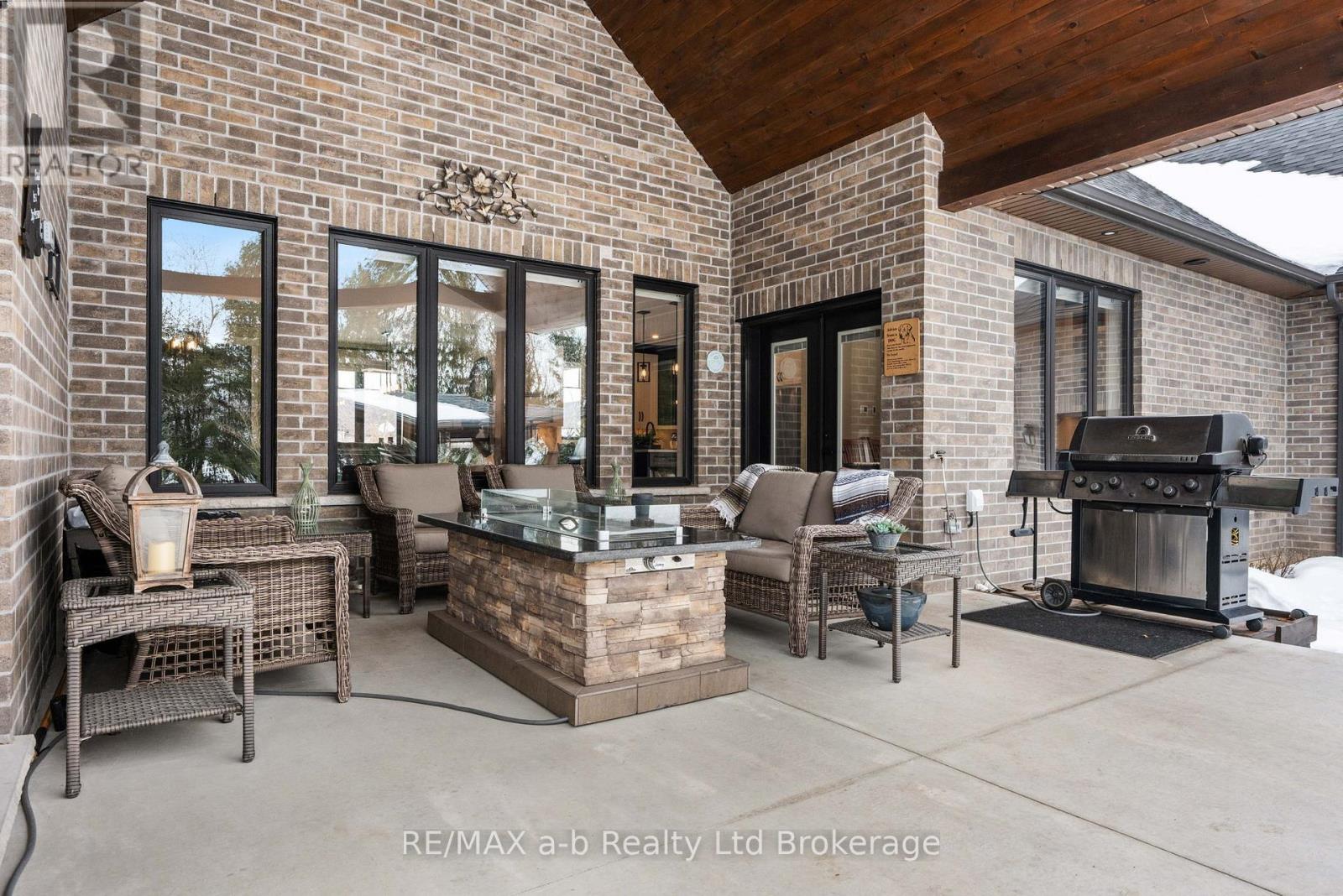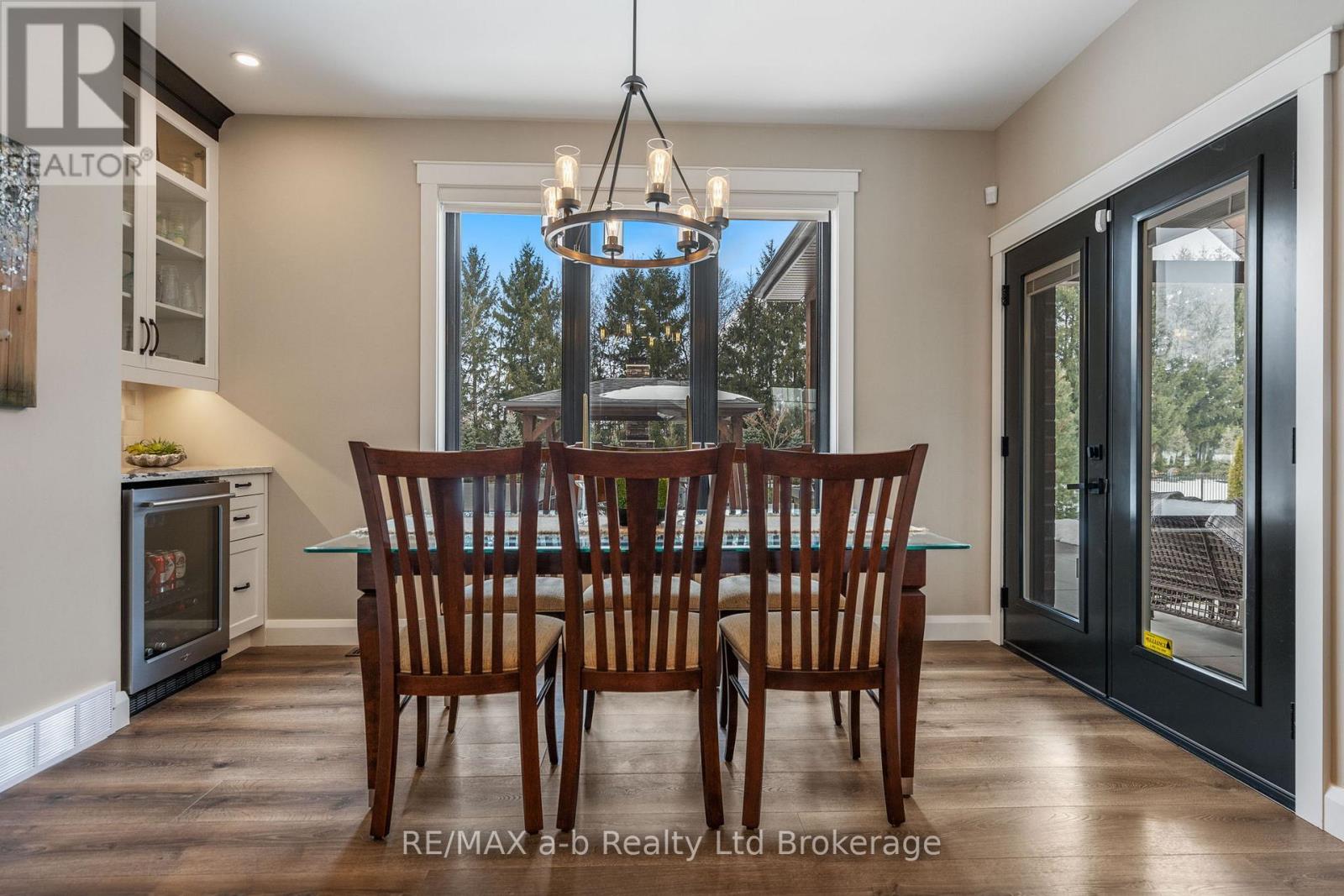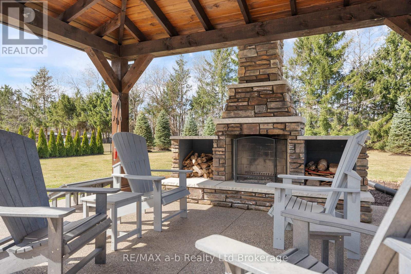 Absolute perfection inside and out, welcome to 23 August Crescent in Otterville! A quiet Crescent of Executive homes in a quaint town, hosts this stunning ranch with beautiful stone detail, indoor parking for up to 4 vehicles and a luxurious dream backyard. The lavish backyard is fully fenced with iron for expansive views with fields beyond, an in-ground heated salt-water pool with coordinating Timber cabana featuring a stunning wood burning fireplace, as well as a beautiful covered rear porch with timber accents this backyard is an entertainers dream. There is extensive hardscape, lush landscaping with accent lighting and mature trees creating a scenic view from every window. This quality built home has been impeccably cared for with approximately 3,500 sq.ft. of total finished living space, offering 4 bedrooms, 3.5 bathrooms and excellent space for entertaining, an custom kitchen with walk-in pantry, quartz countertops and a stunning gas fireplace. The basement features a second entrance, ideal for an in-law suite, it has a kitchenette/ bar, large open space suitable for games area and family room, an office space, plus the 2 lower level bedrooms and full bathroom. The property is .7 of an acre, the huge attached garage has a finished loft currently used as a recroom. The home features a security system, stand-by generator, it is on Municipal water but also has a drilled well for outdoor watering and sprinkler system. Make 23 August Crescent in Otterville your dream come true. (id:64974)