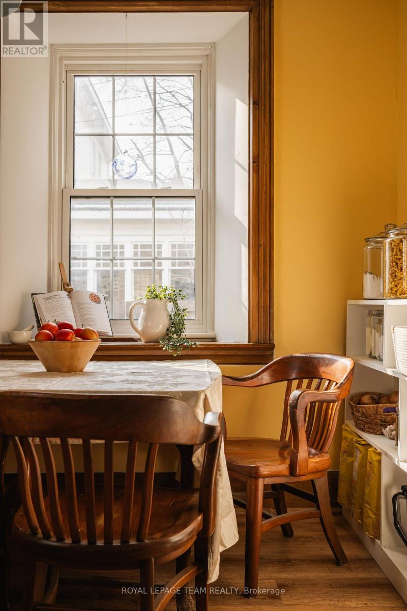 Nestled in the heart of the prestigious Rideau Lakes area, this stunning century home offers a rare blend of 19th-century architectural integrity, reimagined for the 21st century. Set on a half-acre lot, spanning two levels, the interior is connected by two separate staircases, a classic feature of grand century homes that provides both architectural interest and a versatile floor plan. The kitchen is light-filled, with ample cabinetry & counter space, making it as functional for family life as for large-scale entertaining, while also boasting grand-scale living & dining rooms and main-floor laundry. The home boasts four generously sized bedrooms and two baths. The primary suite showcases the home's unique geometry with vaulted ceilings and integrated window seats perfect for afternoon reading. Deep-set sills are highlighted throughout, showcasing the thickness of the original stone walls. The exterior presents a commanding presence with its original limestone facade, reflecting its classic stone-masonry heritage, defined by authentic six-over-six windows. Many updates are present, with over $100,000 recently invested in system modernizations and aesthetic refinements. Being positioned across from Otter Creek, residents enjoy a tranquil waterfront atmosphere and easy access to the renowned recreational lifestyle of the Rideau Lakes community, offering nearby outdoor recreation - boating, fishing, and golf, as well as cross-country skiing, snowmobile trails, and the Cataraqui hiking/biking trails while being within easy reach of convenient amenities, including a varriety of restaurants, hospitals, box stores, specialty shops, and schools, Recent inspection reports are available. 24 hours irr. on offers. (id:64974)