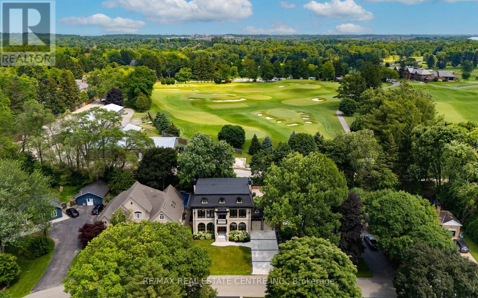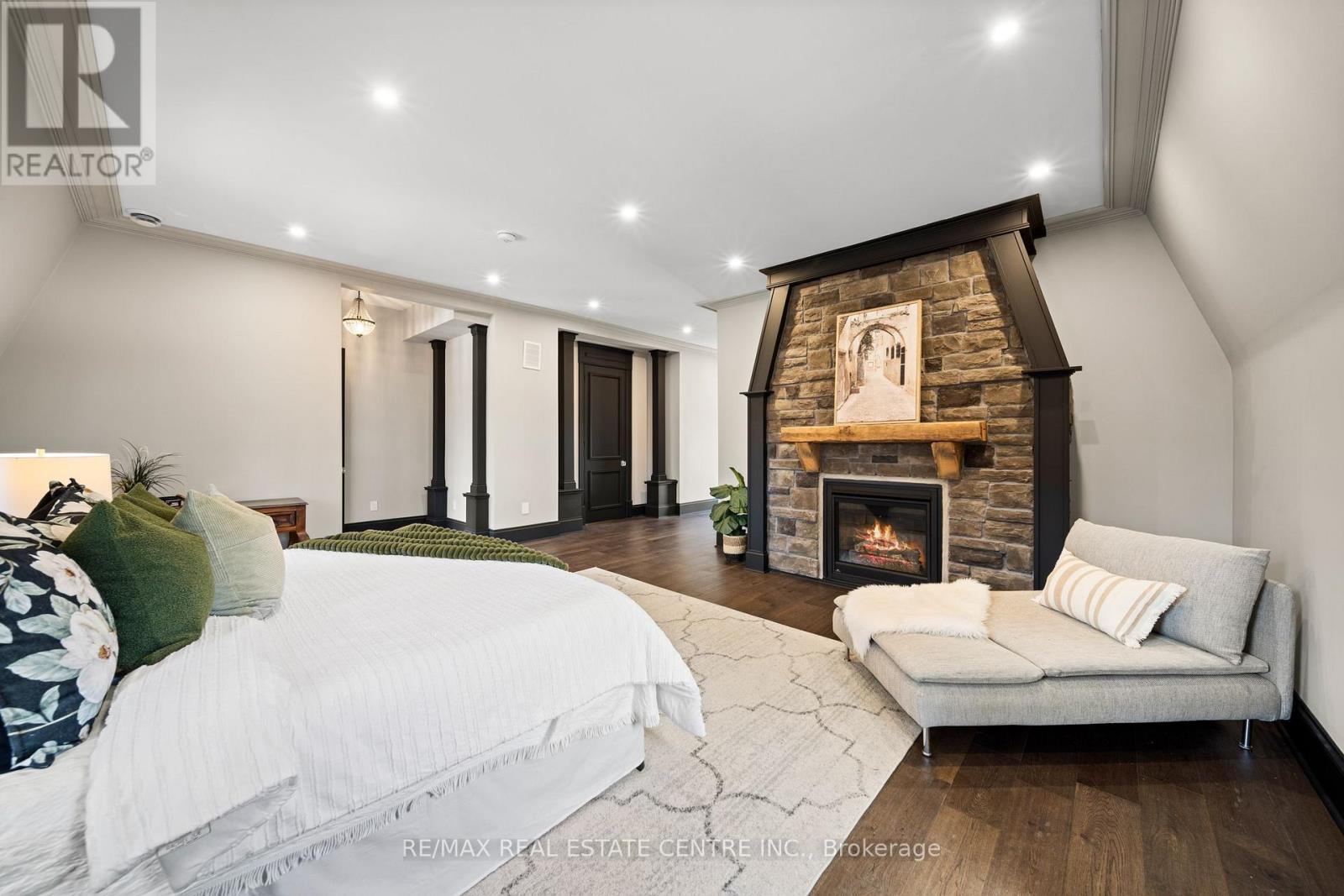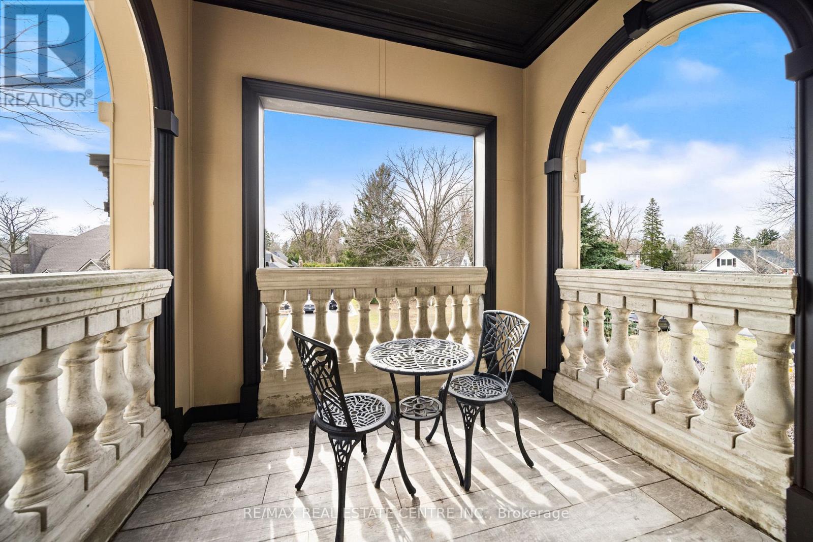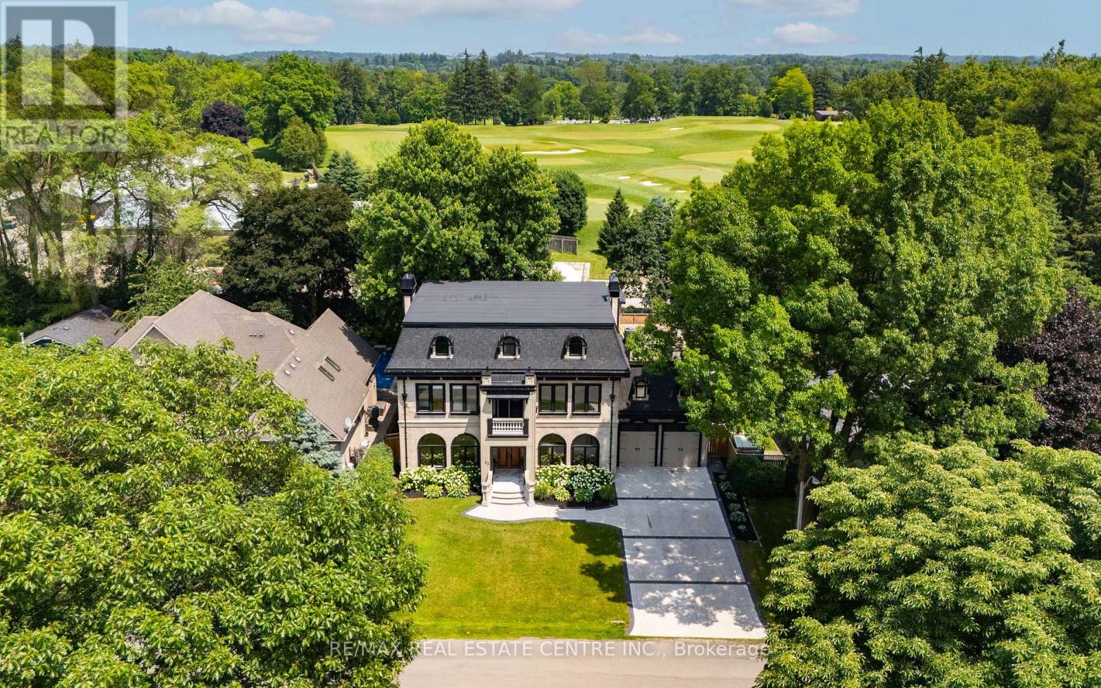 Nestled in scenic Ancaster Village, this French Chateau-inspired residence offers over 7,000 sqft of luxury backing onto the iconic Hamilton Golf Club, with sweeping views of one of Canada's premier courses. This 3-storey masterpiece features 4 beds, 7 baths, 10.5' soaring ceilings, custom millwork, and refined European design. The main floor is designed for entertaining, showcasing a gourmet kitchen with high-end appliances, quartz counters, custom cabinetry and a large island. Three sets of double doors open to a covered outdoor dining area. A formal dining room with chandelier, fireplace and wet bar adds elegance, while the family room with built-ins and fireplace connects seamlessly to the landscaped yard. Second level is dedicated to ultimate comfort, 3 spacious bedrooms each with private baths & walk-in closets. Primary suite boasts gorgeous stone fireplace, custom walk-in closet & spa-like ensuite with freestanding tub, rainfall shower, glass shower, and private terrace overlooking the golf course. Third level serves as a secluded refuge with spacious living room, large bedroom, full bath & kitchenette. A walk-out portico terrace offers panoramic views of the golf course. Lower level features 9' ceilings, a recroom, fitness room, family room with another fireplace, full bathroom, heated floors & a kitchenette. A wine cellar completes your chateau experience. The property boasts a cedar-ceiling covered deck, outdoor gas fireplace, mature trees for privacy, 5 fireplaces, 3 dishwashers, Terrazzo concrete driveway & large tandem garage with 4-post car lift for the car enthusiast. Crafted with an ICF foundation and whole-home hydronic in-floor heating across all four levels, the residence delivers year-round comfort, remarkably low operating costs, and a reduced carbon footprint-luxury that's as smart as it is beautiful. Close to fine dining, shopping, trails, and conservation areas, this property is a rare haven of sophistication, luxury, and timeless elegance. (id:64974)