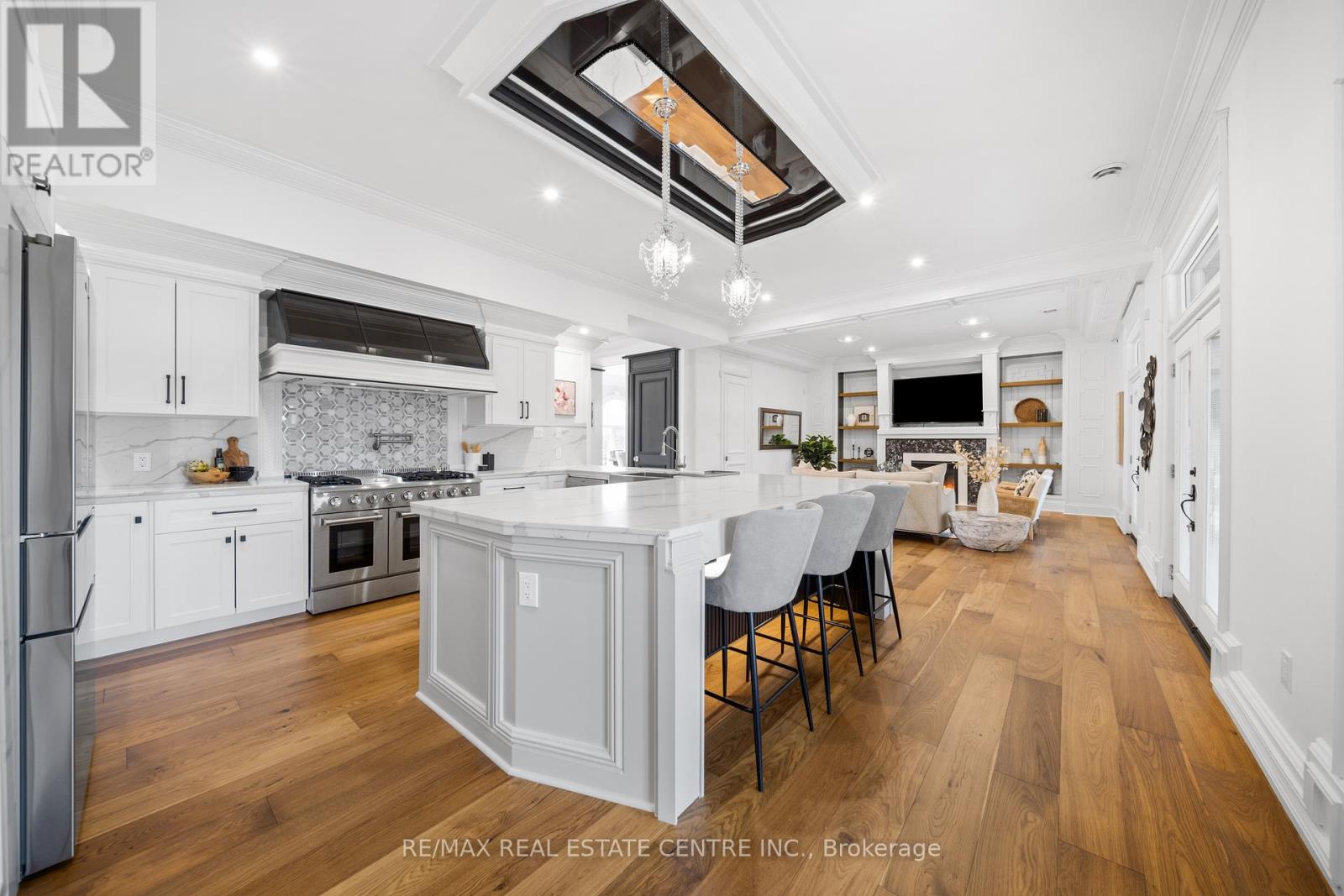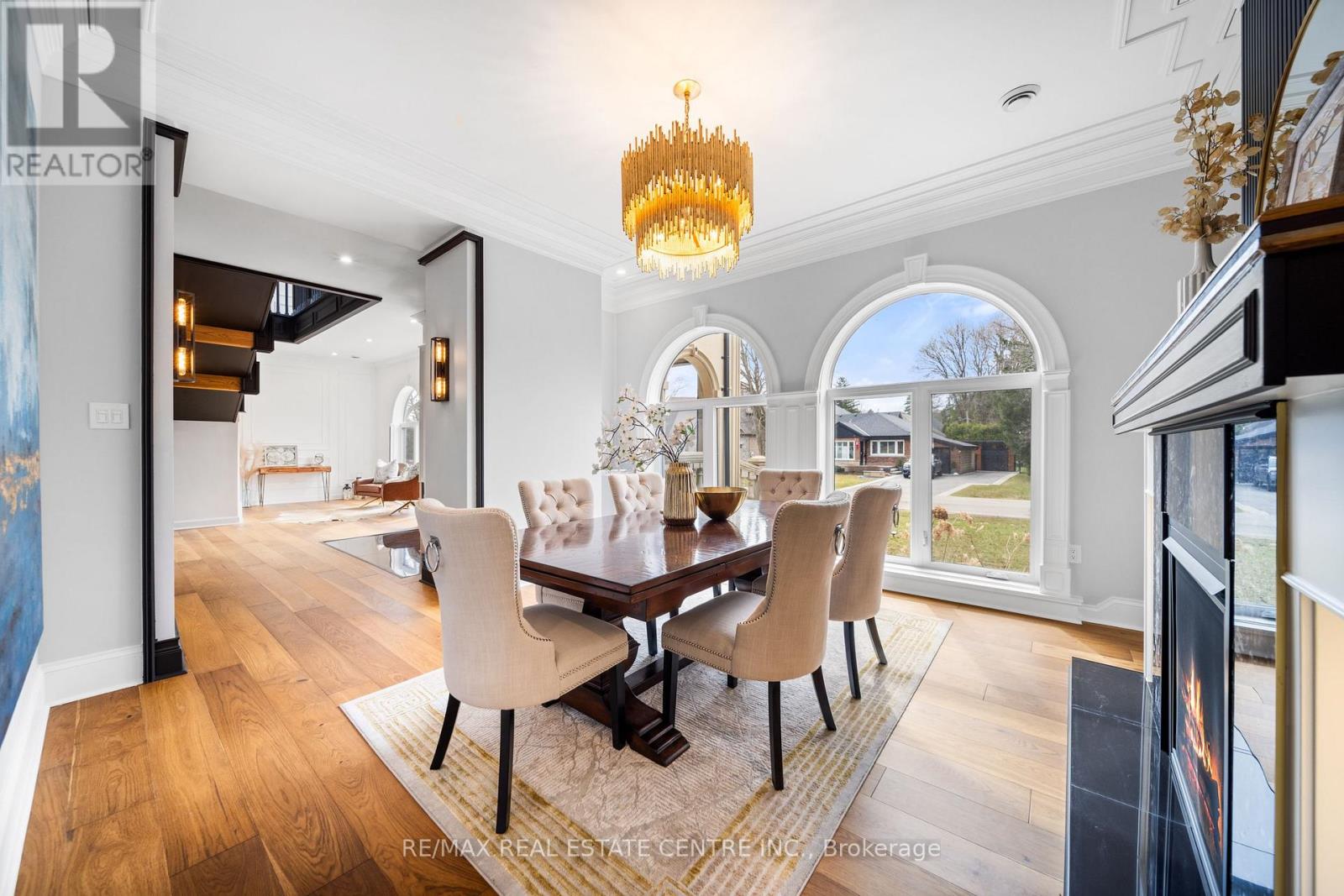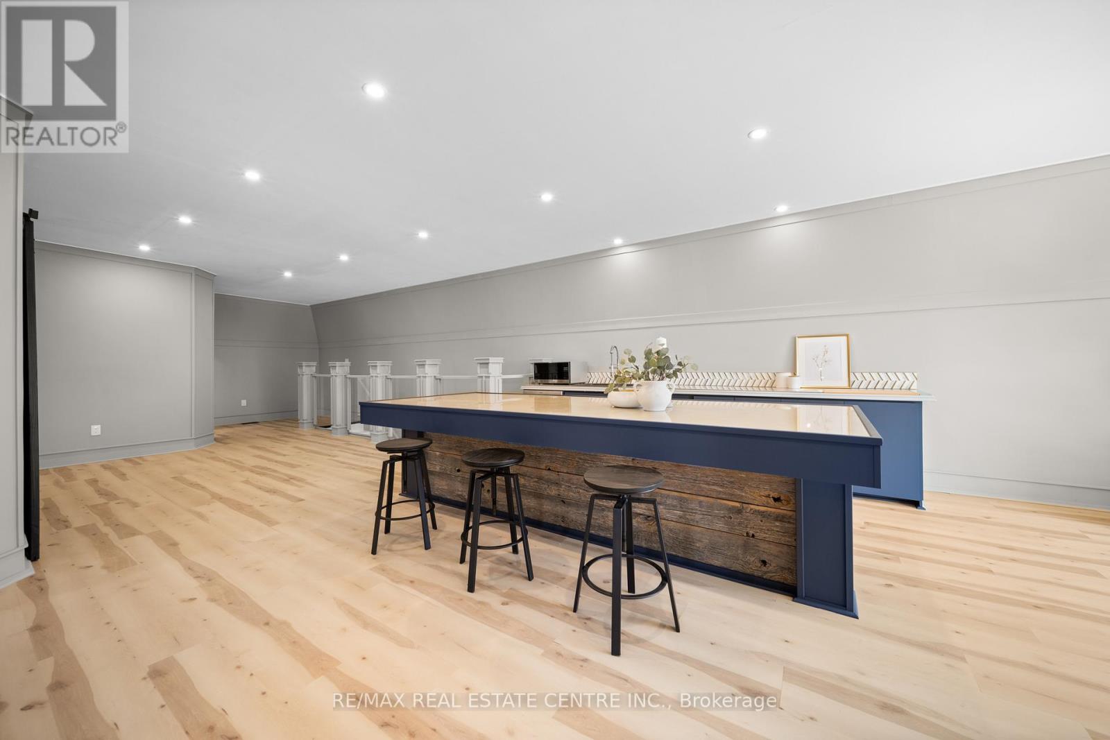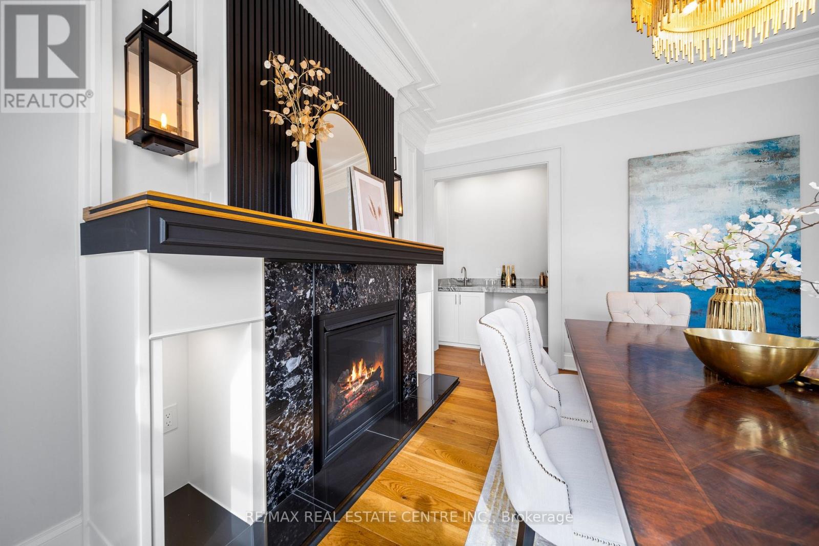 Nestled in scenic Ancaster Village, this French Chateau-inspired residence offers over 7,000 sqft of luxury backing onto the iconic Hamilton Golf Club, with sweeping views of one of Canada's premier courses. This 3-storey masterpiece features 4 beds, 7 baths, 10.5' soaring ceilings, custom millwork, and refined European design. The main floor is designed for entertaining, showcasing a gourmet kitchen with high-end appliances, quartz counters, custom cabinetry and a large island. Three sets of double doors open to a covered outdoor dining area. A formal dining room with chandelier, fireplace and wet bar adds elegance, while the family room with built-ins and fireplace connects seamlessly to the landscaped yard. Second level is dedicated to ultimate comfort, 3 spacious bedrooms each with private baths & walk-in closets. Primary suite boasts gorgeous stone fireplace, custom walk-in closet & spa-like ensuite with freestanding tub, rainfall shower, glass shower, and private terrace overlooking the golf course. Third level serves as a secluded refuge with spacious living room, large bedroom, full bath & kitchenette. A walk-out portico terrace offers panoramic views of the golf course. Lower level features 9' ceilings, a recroom, fitness room, family room with another fireplace, full bathroom, heated floors & a kitchenette. A wine cellar completes your chateau experience. The property boasts a cedar-ceiling covered deck, outdoor gas fireplace, mature trees for privacy, 5 fireplaces, 3 dishwashers, Terrazzo concrete driveway & large tandem garage with 4-post car lift for the car enthusiast. Crafted with an ICF foundation and whole-home hydronic in-floor heating across all four levels, the residence delivers year-round comfort, remarkably low operating costs, and a reduced carbon footprint-luxury that's as smart as it is beautiful. Close to fine dining, shopping, trails, and conservation areas, this property is a rare haven of sophistication, luxury, and timeless elegance. (id:64974)
