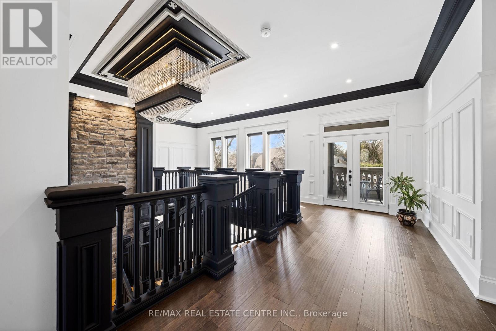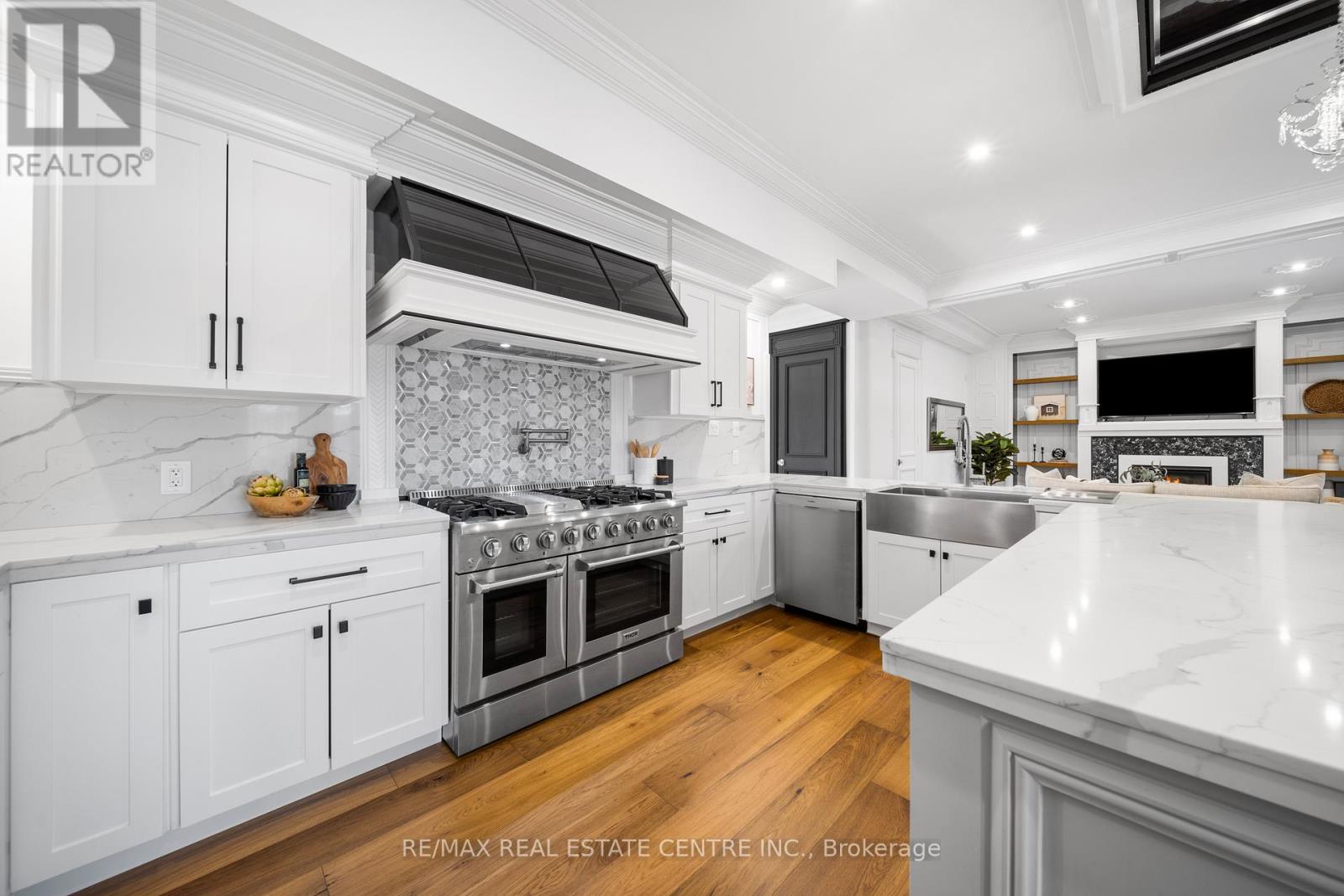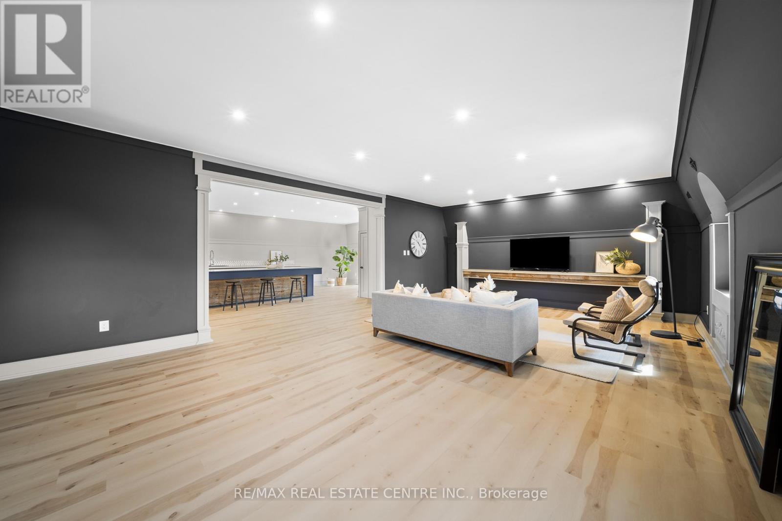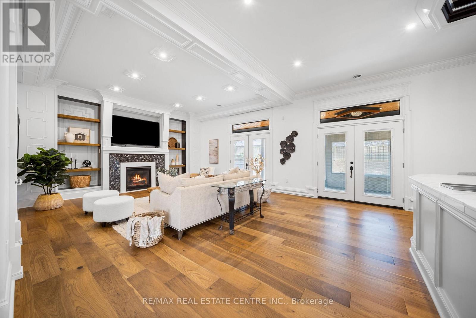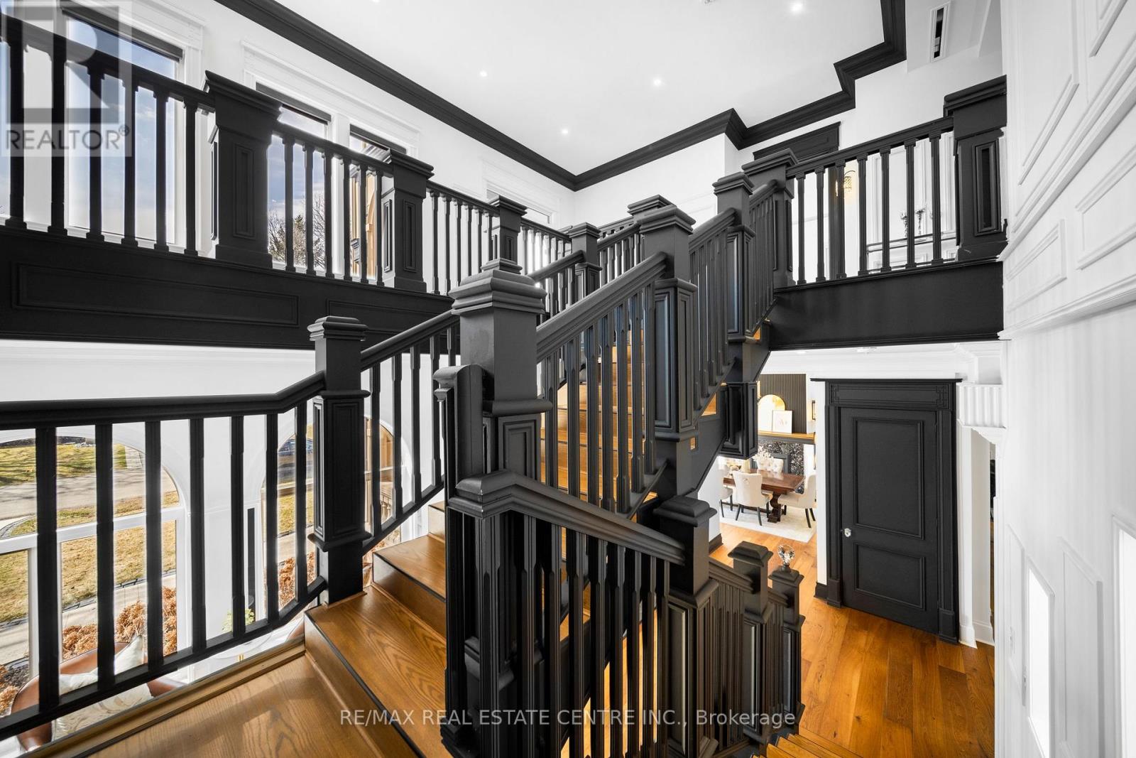Nestled in scenic Ancaster Village, this French Chateau-inspired residence offers over 7,000 sqft of luxury backing onto the iconic Hamilton Golf Club, with sweeping views of one of Canada's premier courses. This 3-storey masterpiece features 4 beds, 7 baths, 10.5' soaring ceilings, custom millwork, and refined European design. The main floor is designed for entertaining, showcasing a gourmet kitchen with high-end appliances, quartz counters, custom cabinetry and a large island. Three sets of double doors open to a covered outdoor dining area. A formal dining room with chandelier, fireplace and wet bar adds elegance, while the family room with built-ins and fireplace connects seamlessly to the landscaped yard. Second level is dedicated to ultimate comfort, 3 spacious bedrooms each with private baths & walk-in closets. Primary suite boasts gorgeous stone fireplace, custom walk-in closet & spa-like ensuite with freestanding tub, rainfall shower, glass shower, and private terrace overlooking the golf course. Third level serves as a secluded refuge with spacious living room, large bedroom, full bath & kitchenette. A walk-out portico terrace offers panoramic views of the golf course. Lower level features 9' ceilings, a recroom, fitness room, family room with another fireplace, full bathroom, heated floors & a kitchenette. A wine cellar completes your chateau experience. The property boasts a cedar-ceiling covered deck, outdoor gas fireplace, mature trees for privacy, 5 fireplaces, 3 dishwashers, Terrazzo concrete driveway & large tandem garage with 4-post car lift for the car enthusiast. Crafted with an ICF foundation and whole-home hydronic in-floor heating across all four levels, the residence delivers year-round comfort, remarkably low operating costs, and a reduced carbon footprint-luxury that's as smart as it is beautiful. Close to fine dining, shopping, trails, and conservation areas, this property is a rare haven of sophistication, luxury, and timeless elegance. (id:64974)