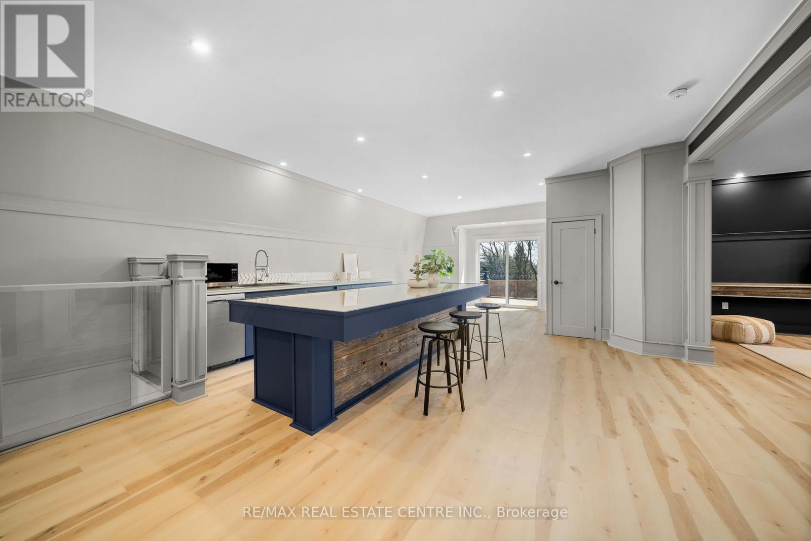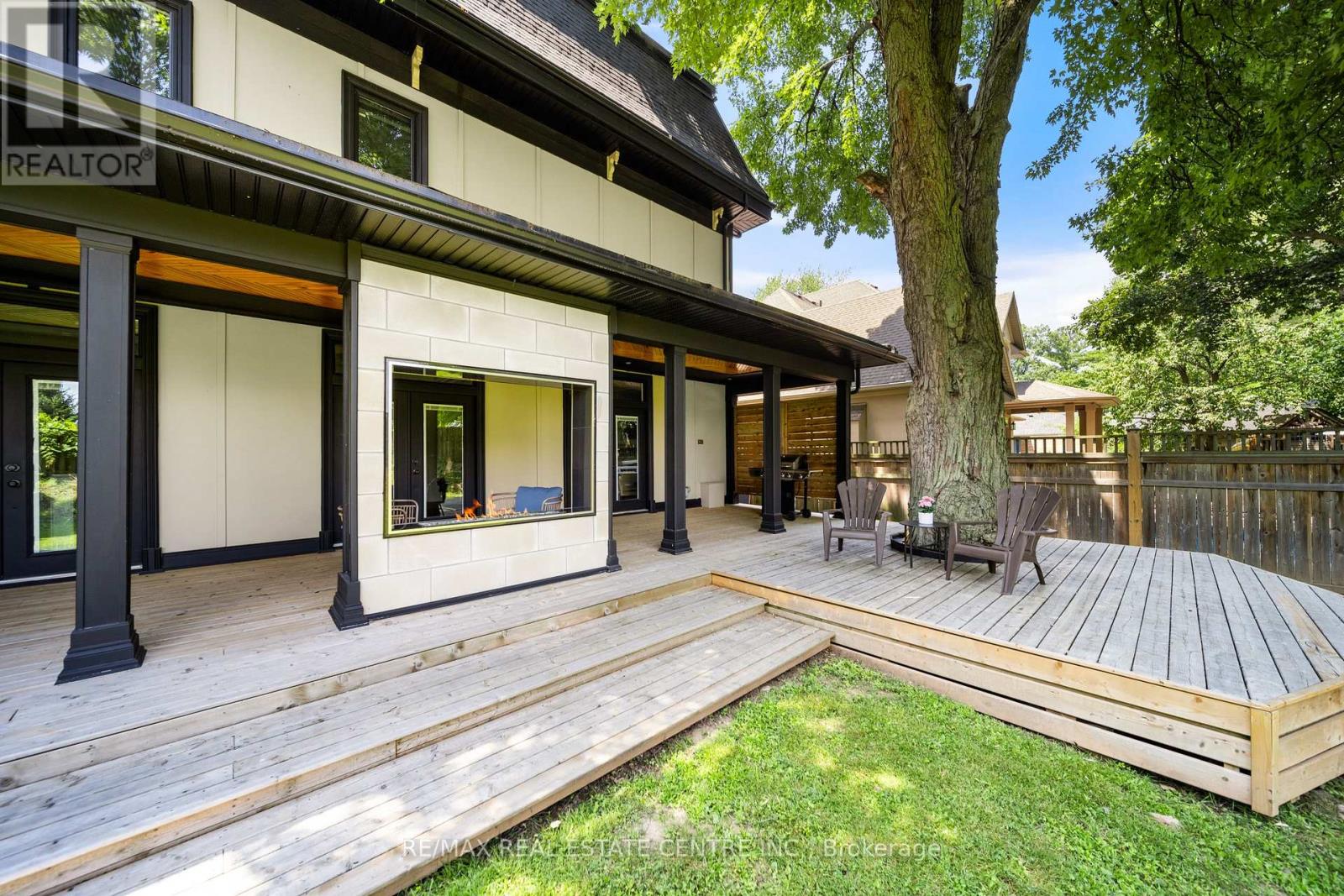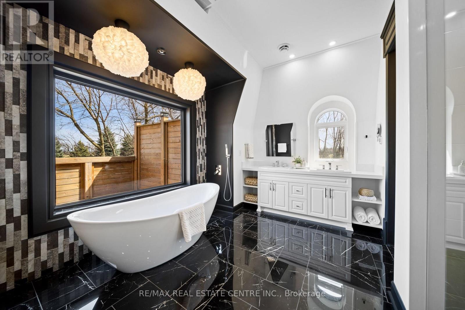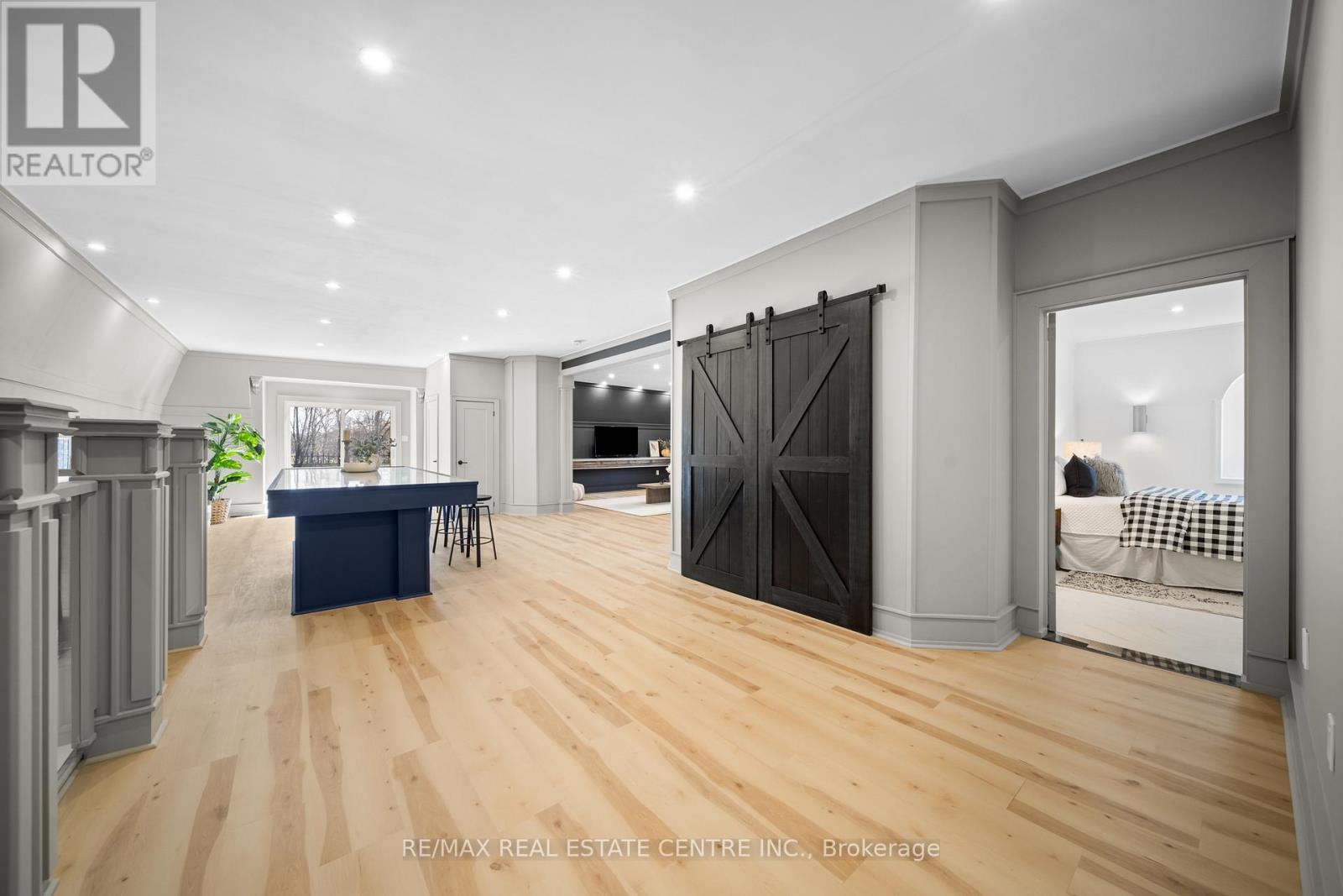 Nestled in scenic Ancaster Village, this French Chateau-inspired residence offers over 7,000 sqft of luxury backing onto the iconic Hamilton Golf Club, with sweeping views of one of Canada's premier courses. This 3-storey masterpiece features 4 beds, 7 baths, 10.5' soaring ceilings, custom millwork, and refined European design. The main floor is designed for entertaining, showcasing a gourmet kitchen with high-end appliances, quartz counters, custom cabinetry and a large island. Three sets of double doors open to a covered outdoor dining area. A formal dining room with chandelier, fireplace and wet bar adds elegance, while the family room with built-ins and fireplace connects seamlessly to the landscaped yard. Second level is dedicated to ultimate comfort, 3 spacious bedrooms each with private baths & walk-in closets. Primary suite boasts gorgeous stone fireplace, custom walk-in closet & spa-like ensuite with freestanding tub, rainfall shower, glass shower, and private terrace overlooking the golf course. Third level serves as a secluded refuge with spacious living room, large bedroom, full bath & kitchenette. A walk-out portico terrace offers panoramic views of the golf course. Lower level features 9' ceilings, a recroom, fitness room, family room with another fireplace, full bathroom, heated floors & a kitchenette. A wine cellar completes your chateau experience. The property boasts a cedar-ceiling covered deck, outdoor gas fireplace, mature trees for privacy, 5 fireplaces, 3 dishwashers, Terrazzo concrete driveway & large tandem garage with 4-post car lift for the car enthusiast. Crafted with an ICF foundation and whole-home hydronic in-floor heating across all four levels, the residence delivers year-round comfort, remarkably low operating costs, and a reduced carbon footprint-luxury that's as smart as it is beautiful. Close to fine dining, shopping, trails, and conservation areas, this property is a rare haven of sophistication, luxury, and timeless elegance. (id:64974)