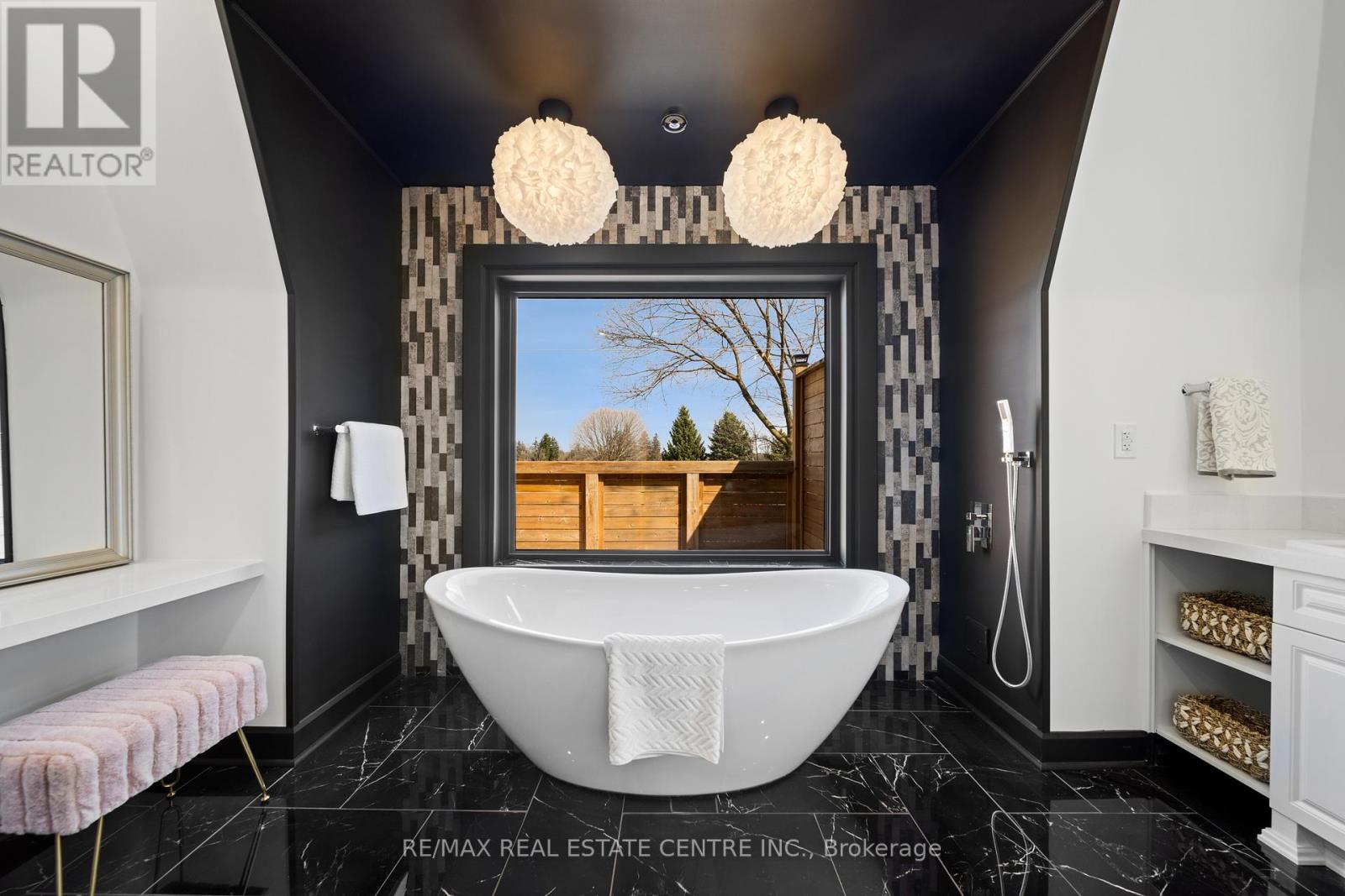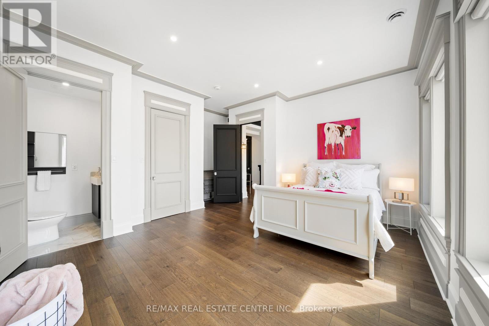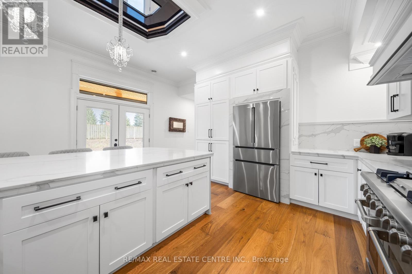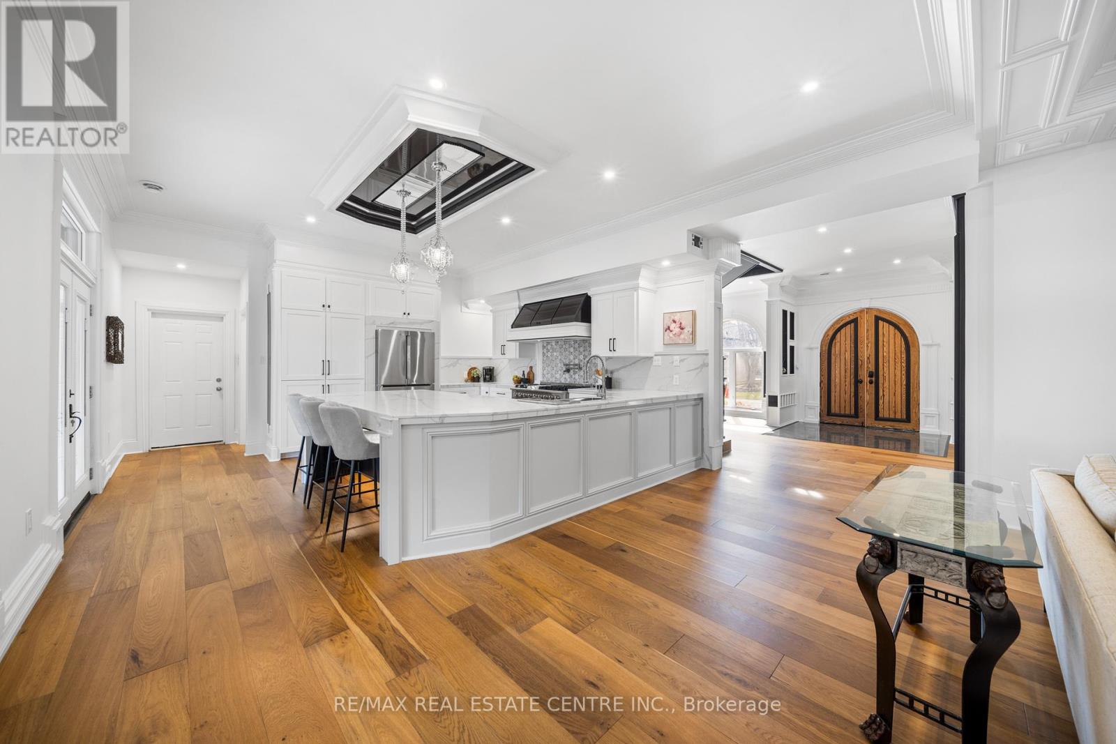 Nestled in scenic Ancaster Village, this French Chateau-inspired residence offers over 7,000 sqft of luxury backing onto the iconic Hamilton Golf Club, with sweeping views of one of Canada's premier courses. This 3-storey masterpiece features 4 beds, 7 baths, 10.5' soaring ceilings, custom millwork, and refined European design. The main floor is designed for entertaining, showcasing a gourmet kitchen with high-end appliances, quartz counters, custom cabinetry and a large island. Three sets of double doors open to a covered outdoor dining area. A formal dining room with chandelier, fireplace and wet bar adds elegance, while the family room with built-ins and fireplace connects seamlessly to the landscaped yard. Second level is dedicated to ultimate comfort, 3 spacious bedrooms each with private baths & walk-in closets. Primary suite boasts gorgeous stone fireplace, custom walk-in closet & spa-like ensuite with freestanding tub, rainfall shower, glass shower, and private terrace overlooking the golf course. Third level serves as a secluded refuge with spacious living room, large bedroom, full bath & kitchenette. A walk-out portico terrace offers panoramic views of the golf course. Lower level features 9' ceilings, a recroom, fitness room, family room with another fireplace, full bathroom, heated floors & a kitchenette. A wine cellar completes your chateau experience. The property boasts a cedar-ceiling covered deck, outdoor gas fireplace, mature trees for privacy, 5 fireplaces, 3 dishwashers, Terrazzo concrete driveway & large tandem garage with 4-post car lift for the car enthusiast. Crafted with an ICF foundation and whole-home hydronic in-floor heating across all four levels, the residence delivers year-round comfort, remarkably low operating costs, and a reduced carbon footprint-luxury that's as smart as it is beautiful. Close to fine dining, shopping, trails, and conservation areas, this property is a rare haven of sophistication, luxury, and timeless elegance. (id:64974)