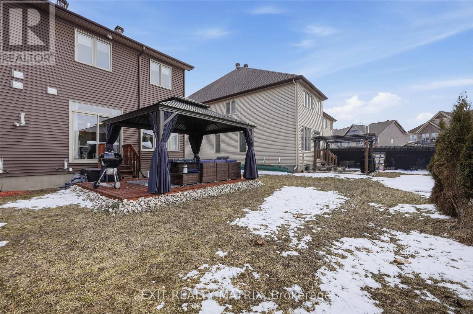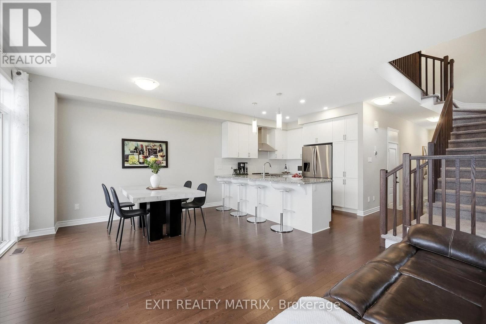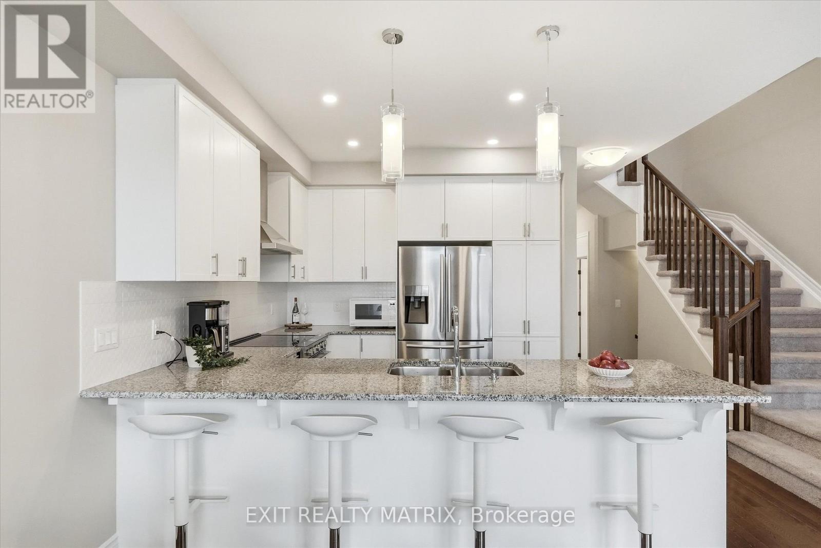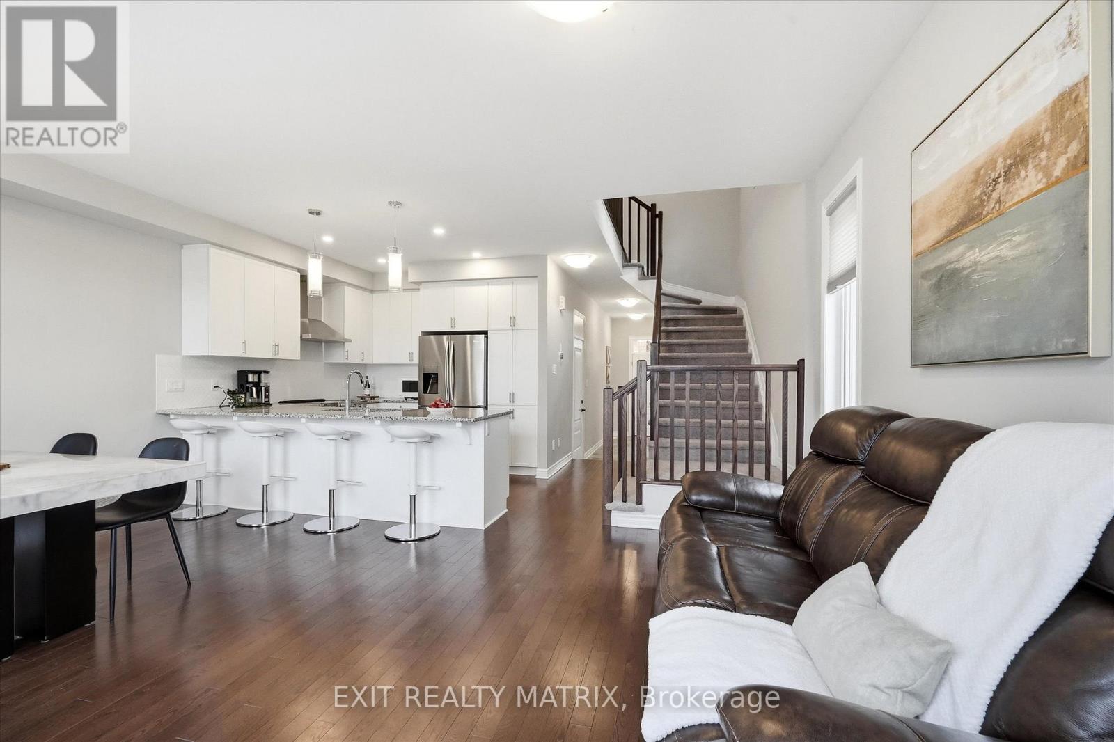OPEN HOUSE SUNDAY APR. 12TH, 1-3 PM. Welcome to 23 Duncanville St., ideally situated in the heart of the village of Russell. This charming 3-bedroom end-unit home is filled with natural light, thanks to its many large windows. Upon entry, you're greeted by a spacious foyer that leads into a bright, open-concept main floor. The functional kitchen features an oversized island, ample cabinetry, and generous counter space-perfect for both everyday living and entertaining. The dining and living areas flow seamlessly, with patio doors opening to a deck and gazebo. A convenient powder room completes the main level. Upstairs, you'll find three well-sized bedrooms, including a large primary suite with a walk-in closet and a private ensuite featuring a glass shower. A full bathroom and second-floor laundry add to the home's practicality. The finished lower level offers additional living space with a cozy gas fireplace, plenty of storage, and a rough-in for a future bathroom. The double-wide laneway accommodates up to four vehicles. Enjoy being just a short walk from the pond and take in the area's beautiful sunsets. Located in a desirable neighbourhood steps to the 10 km paved New York Central Recreational Trail, Russell Fair Grounds, arena, four schools, library, conservation area, sports dome, restaurant, cafe and more. New amenities coming soon include the Russell Recreation Complex with 3 ice rinks, a 25-meter indoor pool, plus The Russell Station Trail / Eadie Park incl. a tennis and pickleball courts, splash pad and play structure (fall 2026). Book your viewing today! (id:64974)