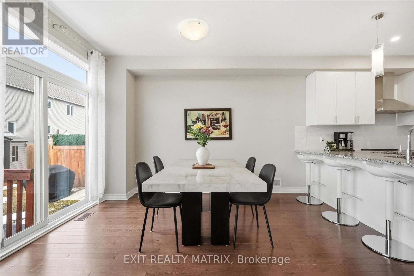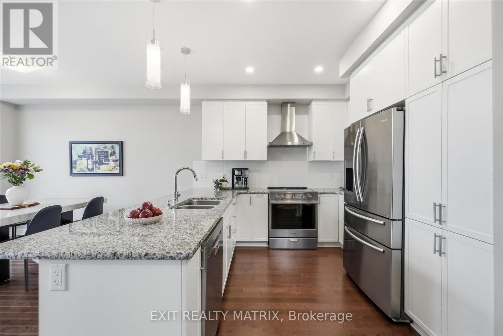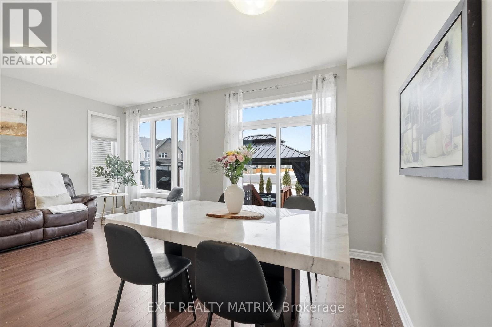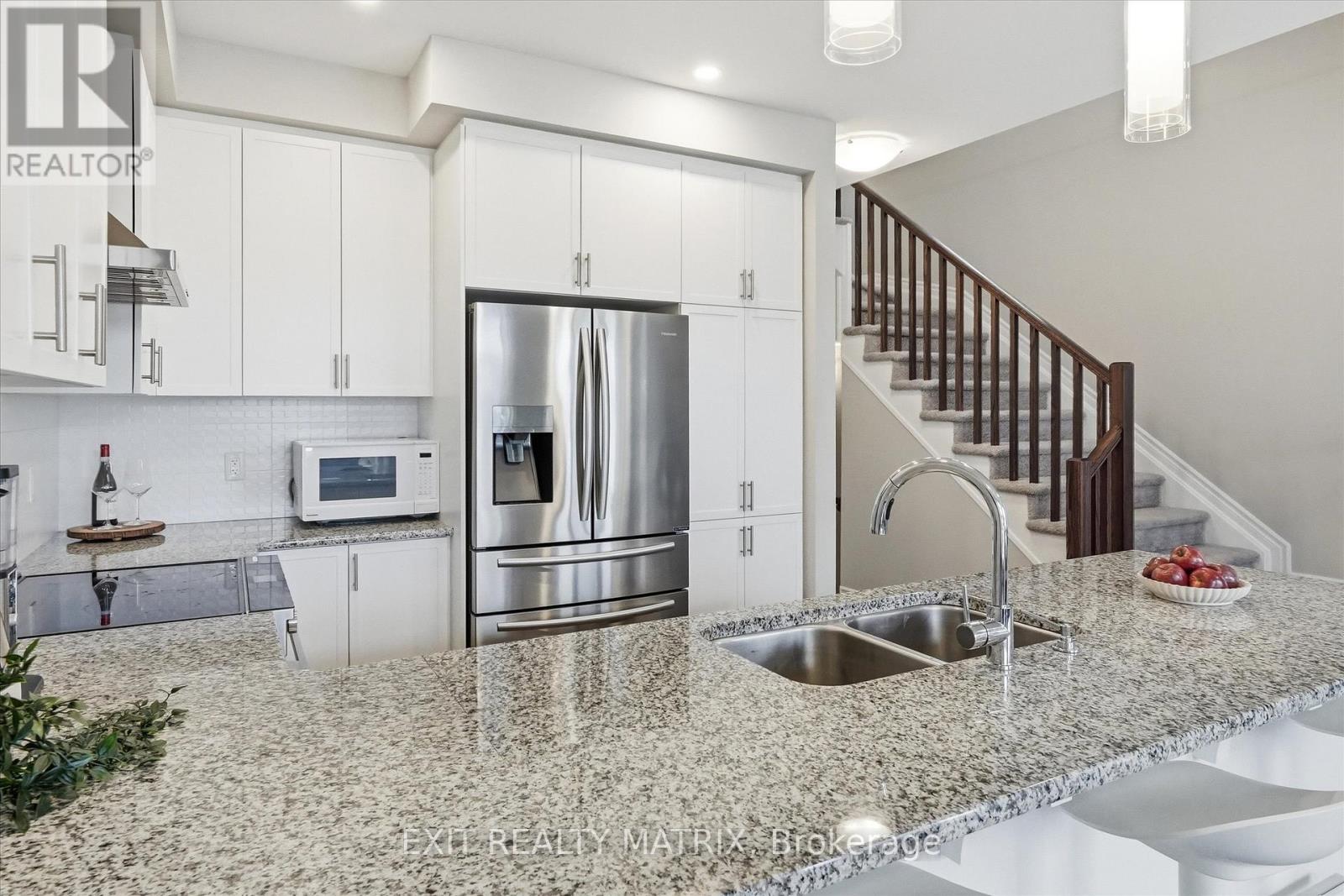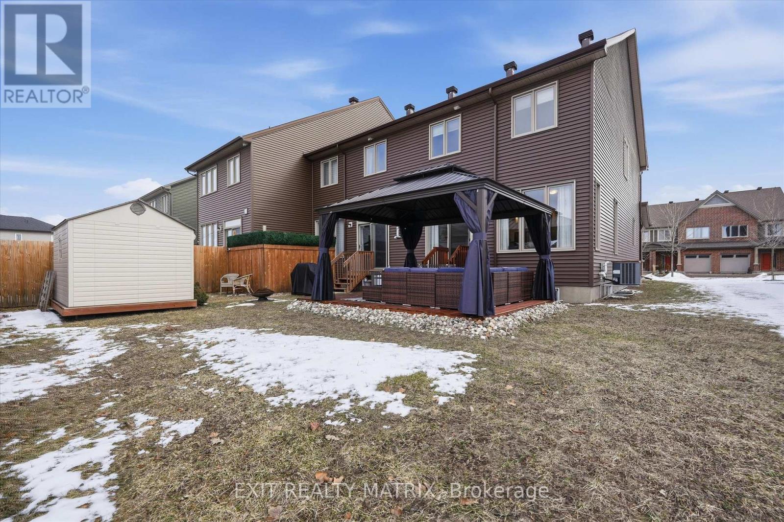 OPEN HOUSE SUNDAY APR. 12TH, 1-3 PM. Welcome to 23 Duncanville St., ideally situated in the heart of the village of Russell. This charming 3-bedroom end-unit home is filled with natural light, thanks to its many large windows. Upon entry, you're greeted by a spacious foyer that leads into a bright, open-concept main floor. The functional kitchen features an oversized island, ample cabinetry, and generous counter space-perfect for both everyday living and entertaining. The dining and living areas flow seamlessly, with patio doors opening to a deck and gazebo. A convenient powder room completes the main level. Upstairs, you'll find three well-sized bedrooms, including a large primary suite with a walk-in closet and a private ensuite featuring a glass shower. A full bathroom and second-floor laundry add to the home's practicality. The finished lower level offers additional living space with a cozy gas fireplace, plenty of storage, and a rough-in for a future bathroom. The double-wide laneway accommodates up to four vehicles. Enjoy being just a short walk from the pond and take in the area's beautiful sunsets. Located in a desirable neighbourhood steps to the 10 km paved New York Central Recreational Trail, Russell Fair Grounds, arena, four schools, library, conservation area, sports dome, restaurant, cafe and more. New amenities coming soon include the Russell Recreation Complex with 3 ice rinks, a 25-meter indoor pool, plus The Russell Station Trail / Eadie Park incl. a tennis and pickleball courts, splash pad and play structure (fall 2026). Book your viewing today! (id:64974)