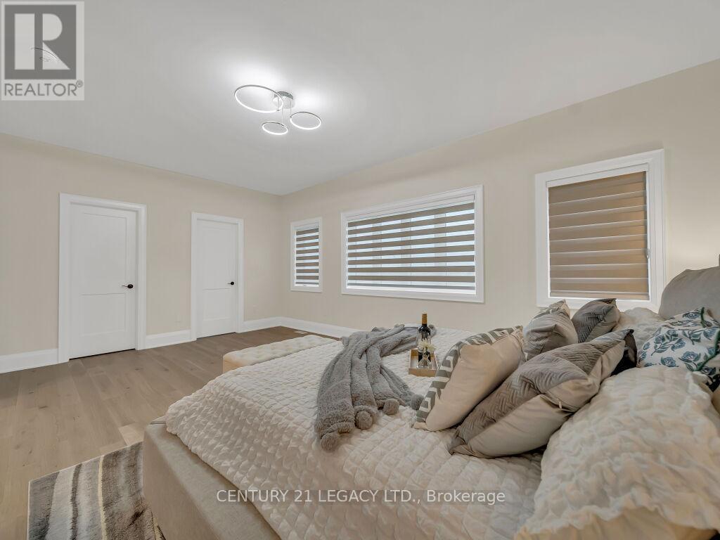 Modern Luxury Living at Its Finest! Welcome to this stunning 1 year new luxury home where no expenses or detail has been spared! This showstoper features With 4+3-bedrooms & 4+2 -bathrooms, fully loaded with premium finishes, smart functionality & modern design. A grand 10ft foyer, 9ft ceilings on 2nd floor, and a spacious open-concept kitchen with built-in Jennair appliances, quartz counters, breakfast bar & spice kitchen rough-in. Sun-filled family room with fireplace & oversized windows. Primary retreat boasts 2 W/I closets & 5pc ensuite. Imported light fixtures & internet wiring in all rooms. Finished legal basement with 2 separate private entries ideal for rental income or extended family. Finished garage with GDO, EV charger rough-in, split AC/heater rough-in, plus backyard gas line for BBQ. Prime location close to Hwy 410, Walmart, banks & everyday amenities. Move in & enjoy! (id:64974)