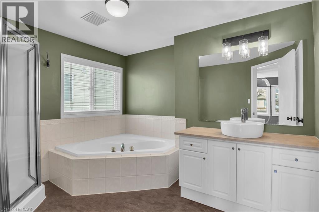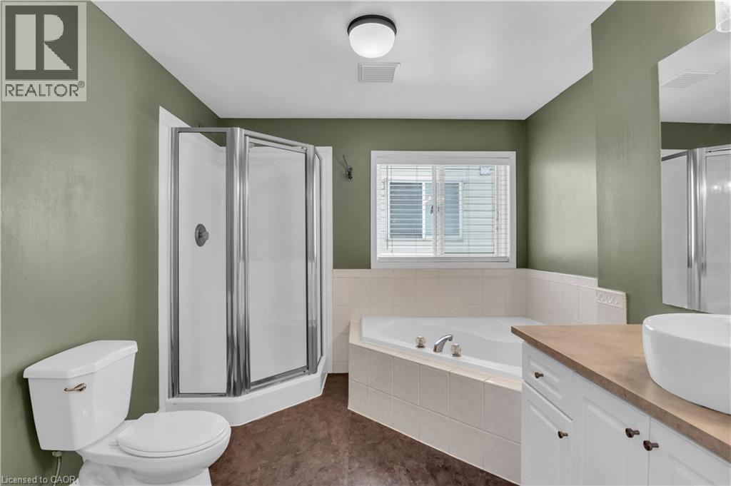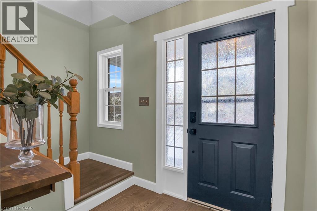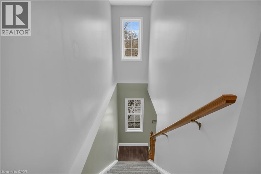 Welcome to 23 Maryann Price Lane. This beautifully maintained, move in ready home is located in one of Cambridge’s most desirable family friendly neighbourhoods. You will love the convenience of being less than 2 minutes from Highway 401 and just a short walk to great schools, parks, arenas, and everyday amenities like grocery stores, gas stations, and coffee shops. As you step inside, you are greeted by a warm and inviting main floor with hardwood flooring, a functional entryway, an updated powder room, and access to the single car garage. The layout opens into a bright, open concept kitchen featuring stainless steel appliances, updated countertops, a breakfast bar, and plenty of space for a dining table. The living room is filled with natural light thanks to large windows, California shutters, and added pot lights, with a sliding glass door that leads to a fully fenced backyard. The deck offers a great space to relax or entertain. Upstairs, the primary bedroom is spacious and includes renovated his and hers closets along with a cheater ensuite. The 4 piece bathroom features a jacuzzi tub and a separate glass shower. You will also find two additional well sized bedrooms and a convenient upper level laundry room. The fully finished basement adds even more living space with a large recreation room, a cozy gas fireplace, and a 3 piece bathroom, making it perfect for family time or hosting guests. This home has seen a number of thoughtful updates, including newer windows and sliding door, updated insulation, furnace, water softener and filtration system, as well as newer carpet and fresh paint throughout, giving you peace of mind and true move in readiness. This is a home that has been well cared for from top to bottom and is ready for its next owners to move in and enjoy. (id:64974)