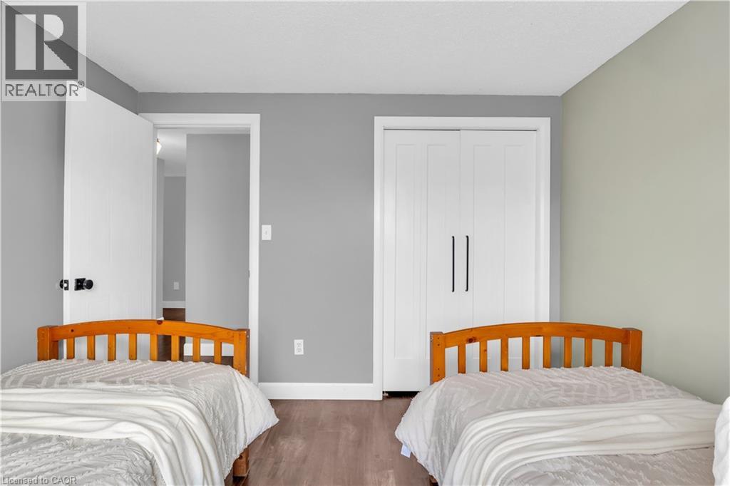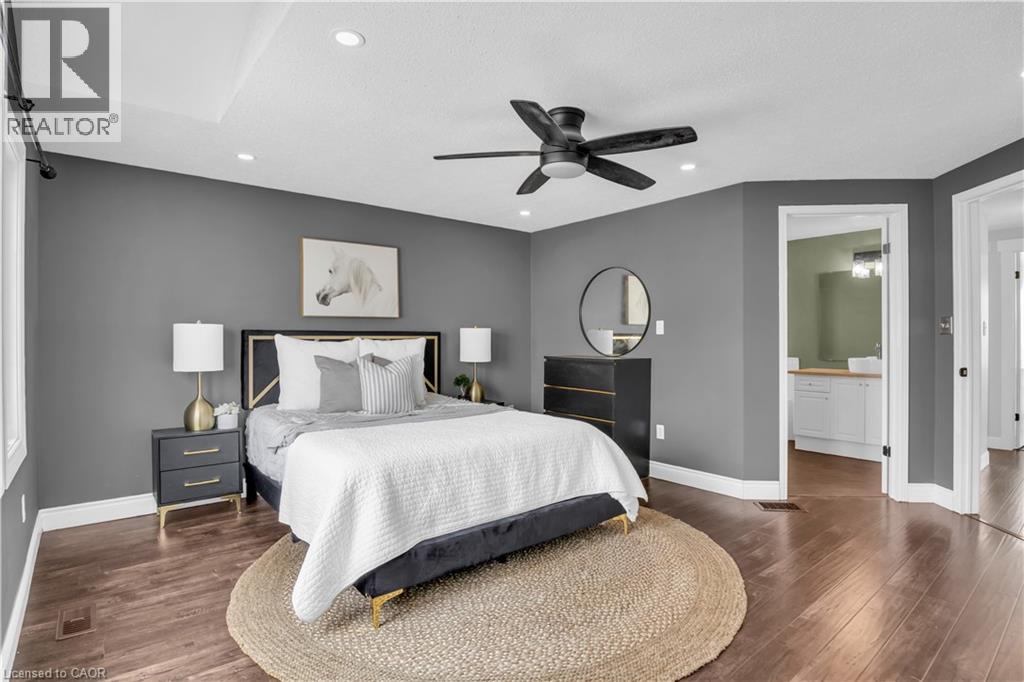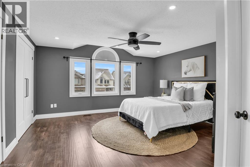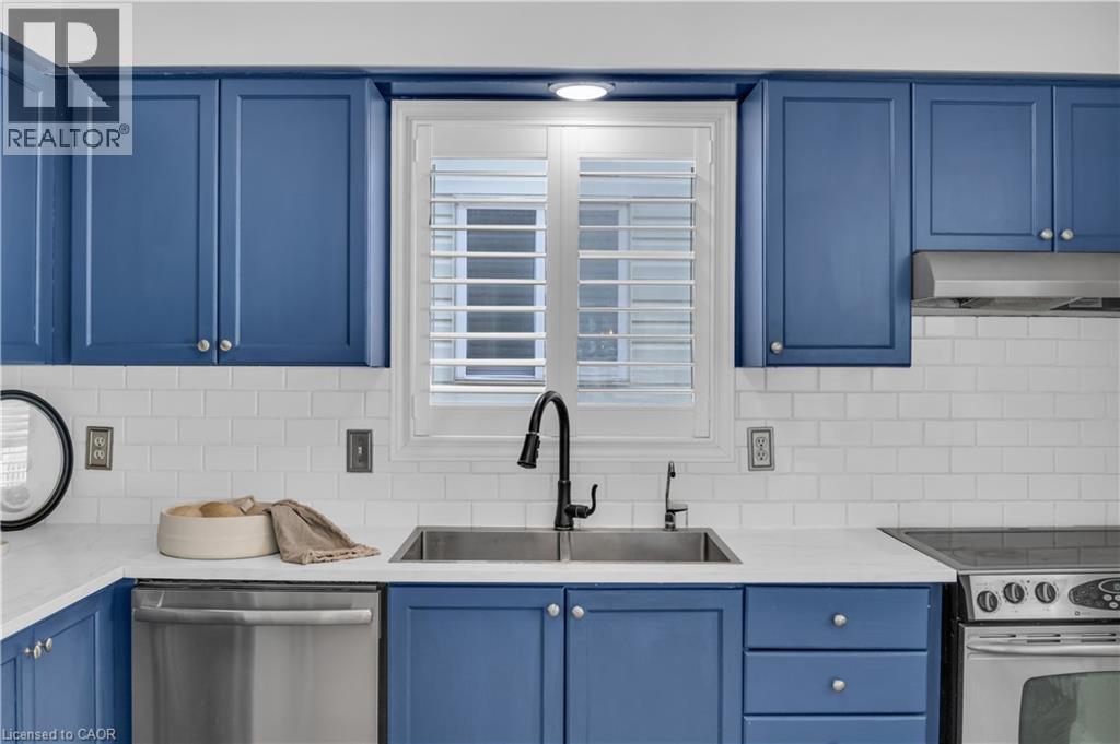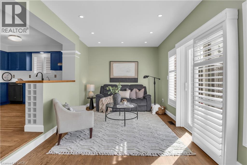 Welcome to 23 Maryann Price Lane. This beautifully maintained, move in ready home is located in one of Cambridge’s most desirable family friendly neighbourhoods. You will love the convenience of being less than 2 minutes from Highway 401 and just a short walk to great schools, parks, arenas, and everyday amenities like grocery stores, gas stations, and coffee shops. As you step inside, you are greeted by a warm and inviting main floor with hardwood flooring, a functional entryway, an updated powder room, and access to the single car garage. The layout opens into a bright, open concept kitchen featuring stainless steel appliances, updated countertops, a breakfast bar, and plenty of space for a dining table. The living room is filled with natural light thanks to large windows, California shutters, and added pot lights, with a sliding glass door that leads to a fully fenced backyard. The deck offers a great space to relax or entertain. Upstairs, the primary bedroom is spacious and includes renovated his and hers closets along with a cheater ensuite. The 4 piece bathroom features a jacuzzi tub and a separate glass shower. You will also find two additional well sized bedrooms and a convenient upper level laundry room. The fully finished basement adds even more living space with a large recreation room, a cozy gas fireplace, and a 3 piece bathroom, making it perfect for family time or hosting guests. This home has seen a number of thoughtful updates, including newer windows and sliding door, updated insulation, furnace, water softener and filtration system, as well as newer carpet and fresh paint throughout, giving you peace of mind and true move in readiness. This is a home that has been well cared for from top to bottom and is ready for its next owners to move in and enjoy. (id:64974)