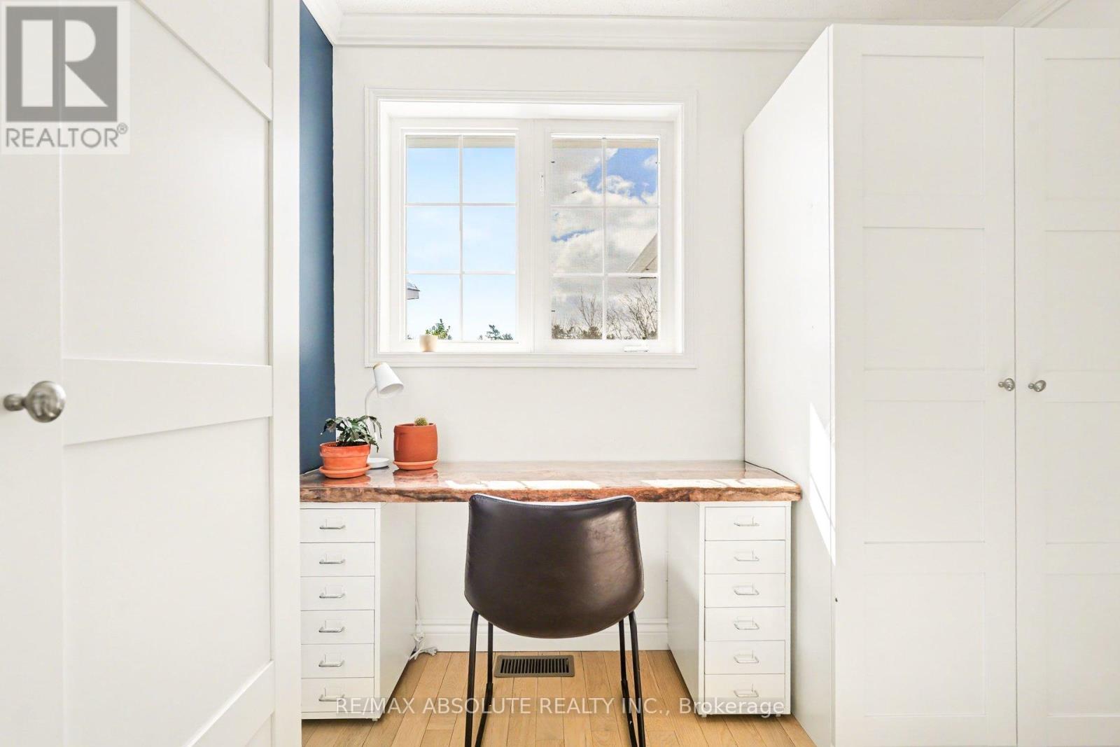 CANCELLED OPEN HOUSE April 12th!!! Welcome to 23 Riverbank Court-an exceptional Holitzner end-unit townhome set on a premium, fully fenced lot backing onto Poole Creek. This rare offering combines privacy, natural beauty, and extensive updates, all within walking distance to local amenities. Enjoy the outdoors from the spacious second-storey composite deck-an ideal setting to relax and take in the sights and sounds of nature. The beautifully landscaped yard provides a safe and secure space for children and pets to play. Inside, there are tasteful renovations throughout. The main and second levels feature bleached oak flooring, complemented by a hardwood staircase. The main floor boasts a stylish eat-in kitchen with quartz countertops, set against natural slate flooring. A full-length bay window in the breakfast nook frames peaceful, treed views. The dining area offers built-in banquette seating with convenient storage, maximizing both function and style. A welcoming living room and a updated powder room complete the main level. Upstairs, the sun-filled second floor features a primary retreat with a cathedral ceiling, walk-in closet, and a beautifully renovated ensuite. The spa-inspired bathroom includes a large low-threshold shower with rain shower head, ambient lighting, and custom built-ins. Two additional bedrooms offer tranquil views, including one with a Murphy bed. A versatile office or fourth bedroom adds flexibility for modern living. These rooms share a fully renovated main bathroom featuring a deep soaker tub with shower. The bright, walk-out lower level extends the living space with a cozy natural gas fireplace, a laundry/utility area, and storage room. Sliding doors lead to a covered patio, complete with an oversized storage shed. Located in a quiet, sought after cul-de-sac, this home is part of a friendly, established community. It truly offers the best of both worlds: everyday convenience and a private natural oasis in the heart of Stittsville. (id:64974)