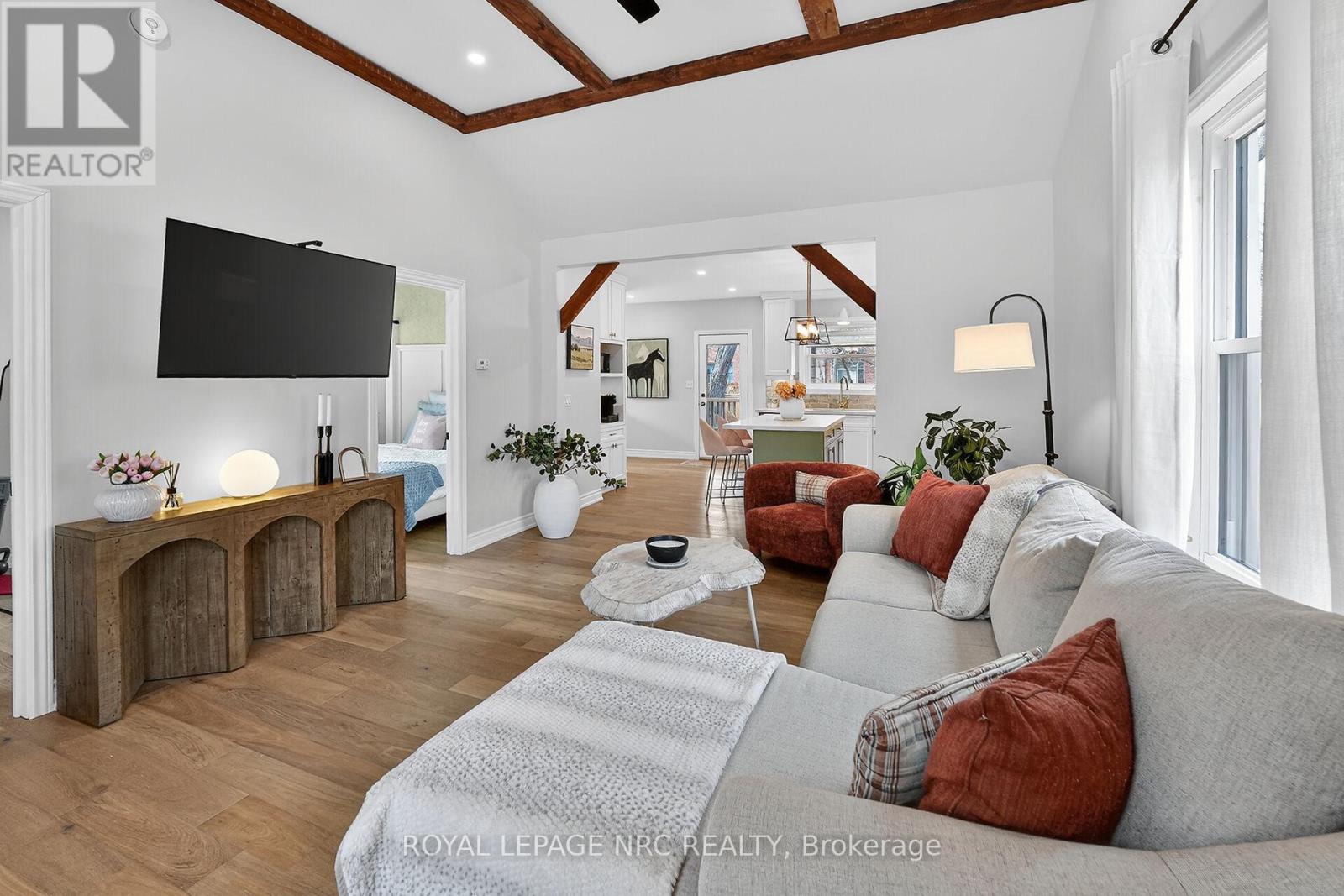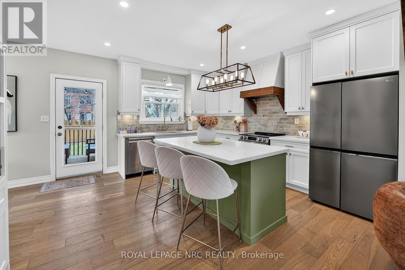 23 Rodman Street - A GORGEOUS Beauty ! Welcome to this professionally renovated top-to-bottom home where no detail has been overlooked. This charming century old property has been completely transformed, with a copy of the closed permit available in supplements for peace of mind. From the moment you arrive, you'll appreciate the inviting curb appeal, complete with a concrete sidewalk, cute covered porch , a welcoming first impression. Enjoy the rare bonus of side-by-side parking plus additional street parking, a newly installed fully fenced yard, and the opportunity to build your own garage if desired. Step inside to an incredible great room featuring vaulted ceilings and stunning timber barn beams - the perfect blend of character and modern comfort. The trendy kitchen showcases a beautiful(moveable) island, quartz countertops, undermount lighting, dedicated coffee bar, s/s appliances (d/w 2025), soft close drawers, and seamless access to the backyard - ideal for BBQs and relaxing on the covered patio.After dinner, stroll the nearby Terry Fox Trail and enjoy the lifestyle this neighbourhood offers.The primary bedroom features ensuite privilege and a custom built-in closet. The partially finished basement offers a spacious family/rec room, feature wall, convenient two-piece powder room, and combined laundry area. Major updates include: Roof (2023) A/C (2025) , Furnace 2022, and top-of-the-line sump pump w/battery backup. Exterior waterproofing, french drain across the backyard. Matching custom shed with concrete pad and hydro - perfect for hobbies, storage, or a creative studio space.Walk to local favourites like Tangerine Tortoise - a boutique dining experience - or enjoy your morning coffee or evening wine at Pique- Nique known for supporting artisans, farmers, and locals. Pack a picnic basket or dine in ! Everything is done here - just move in and enjoy this gorgeous maintainable place. A truly special walkable boutique find in a vibrant community! (id:64974)