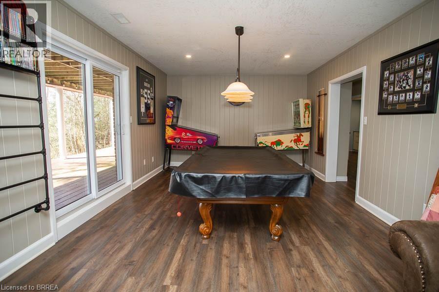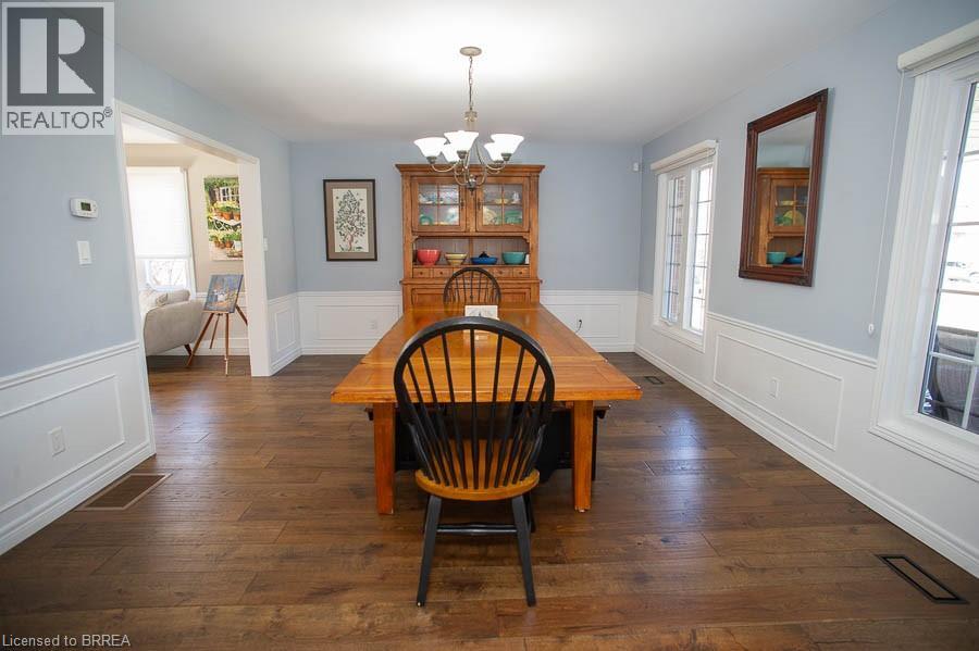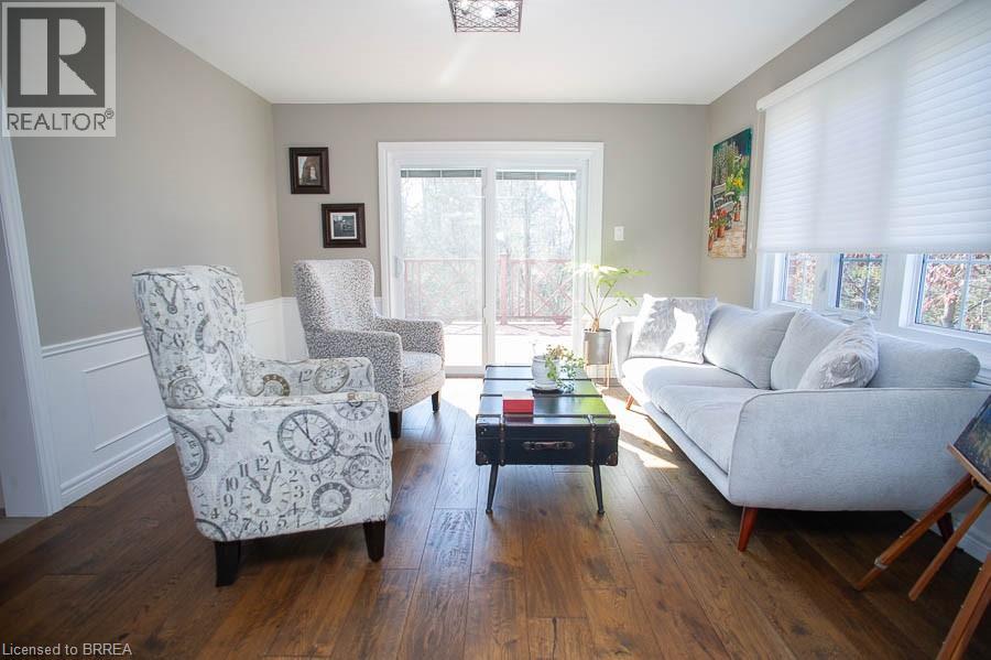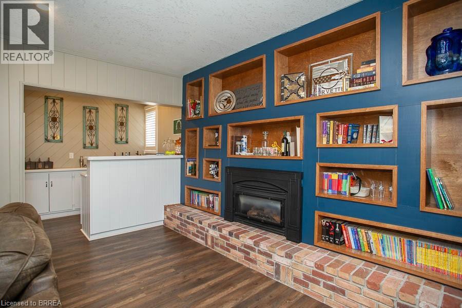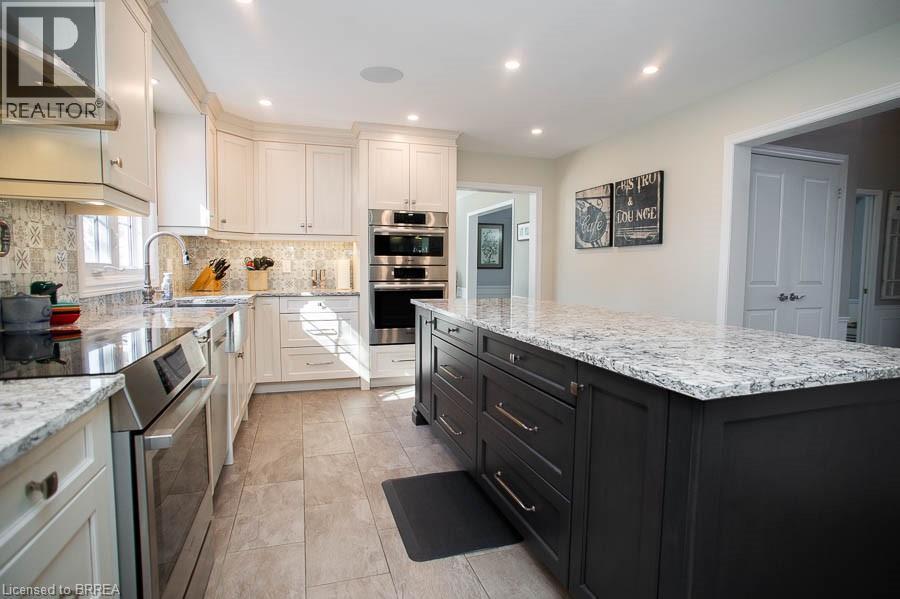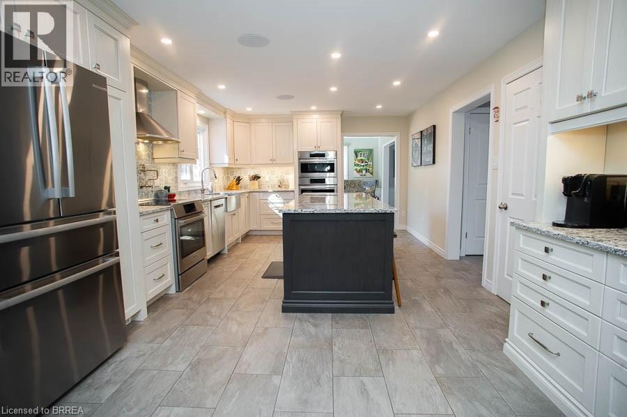 Tucked away on a quiet cul-de-sac in prestigious Ava Heights, this spectacular 3+1 bedroom, 3.5 bathroom home offers the perfect blend of luxury, space, and lifestyle. Ideally located just minutes from highway access, the Grand River, golf courses, scenic trails, and everyday amenities, this is a home that truly delivers on both convenience and setting. From the moment you arrive, the impressive curb appeal is evident, featuring a stamped concrete driveway, mature landscaping, and a double-car garage. Inside, you are welcomed by a grand two-storey foyer and a beautifully updated interior featuring engineered hardwood flooring, elegant finishes, and thoughtful upgrades throughout. The formal living and dining rooms provide an ideal space for entertaining, while the heart of the home is the stunning, fully renovated kitchen, complete with quartz countertops, high-end Bosch appliances, custom cabinetry, and an oversized island designed for gathering. The adjoining family room is warm and inviting, featuring custom-built-ins and a striking gas fireplace, while the sunroom offers a peaceful retreat overlooking the private, tree-lined backyard. With multiple outdoor living spaces, including a composite deck, lower-level patio with hot tub access, and lush landscaping, this home is perfect for enjoying both quiet mornings and hosting family and friends. Upstairs, the spacious primary suite features two walk-in closets and a well-appointed ensuite, while two additional bedrooms and a full bathroom provide ample space for family living. The fully finished basement adds incredible versatility with a large recreation room with a wet bar & gas fireplace, an additional bedroom, a full bathroom, and a bonus space ideal for hobbies. Extensively updated and meticulously maintained, this home offers exceptional value in one of the area’s most sought-after neighbourhoods. A rare opportunity to enjoy refined living in a truly special setting. (id:64974)