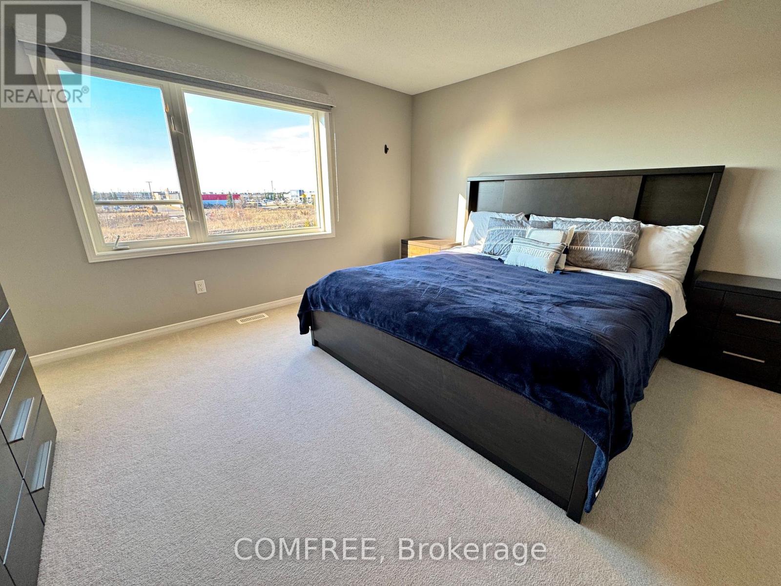 Welcome to this beautifully maintained end-unit townhome built in 2020, located in a quiet, family-friendly neighbourhood just minutes from parks, trails, schools, and everyday shopping. The bright open-concept main floor is filled with natural light and offers a seamless flow between the kitchen, dining, and living areas-perfect for entertaining or relaxing with family. The kitchen features granite countertops and upgraded stainless steel appliances, combining style and functionality. Upstairs, you'll find three spacious bedrooms, including a generous primary suite with a walk-in closet and private ensuite bathroom. A versatile loft space provides the perfect setup for a home office, study area, or second living room. The second-floor laundry adds everyday convenience. This home offers 2.5 bathrooms, with plumbing roughed in in the basement. The partially finished basement provides flexible space ideal for a home gym, recreation room, or additional family area, along with ample storage. Outside, enjoy a fully fenced backyard with a deck overlooking a community trail with no rear neighbours, offering both privacy and a peaceful setting. Additional highlights include a single attached garage and extended driveway parking for up to six vehicles. A perfect blend of comfort, functionality, and location. (id:64974)