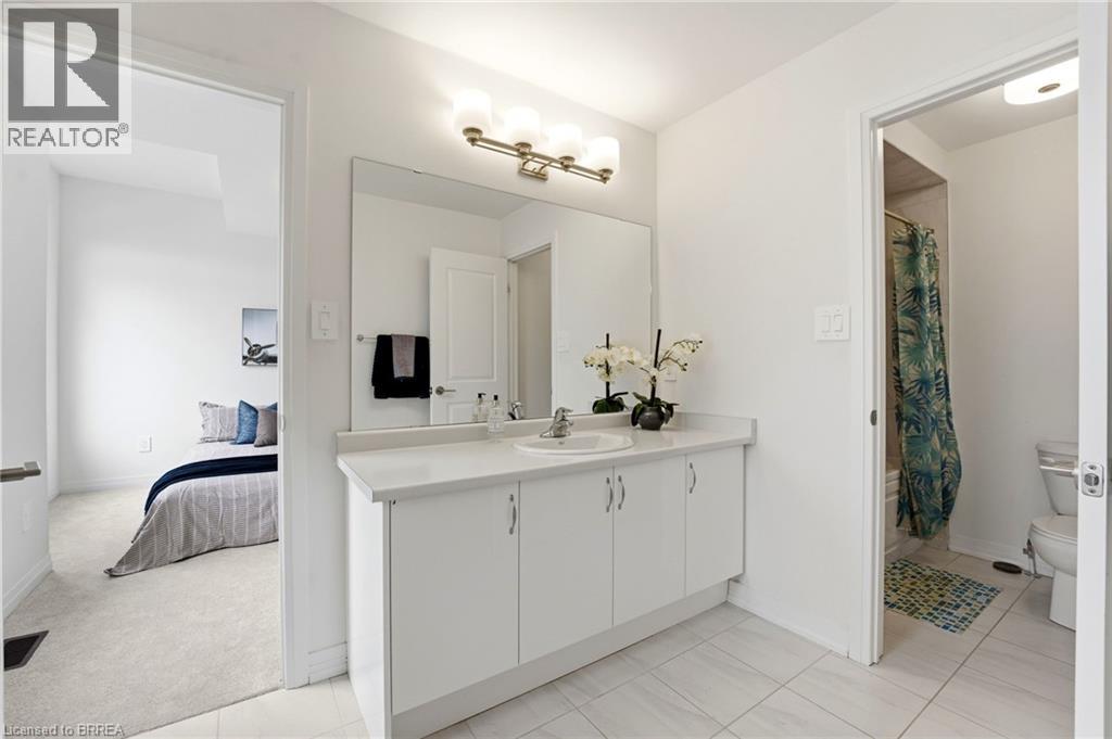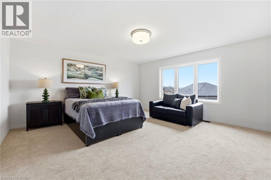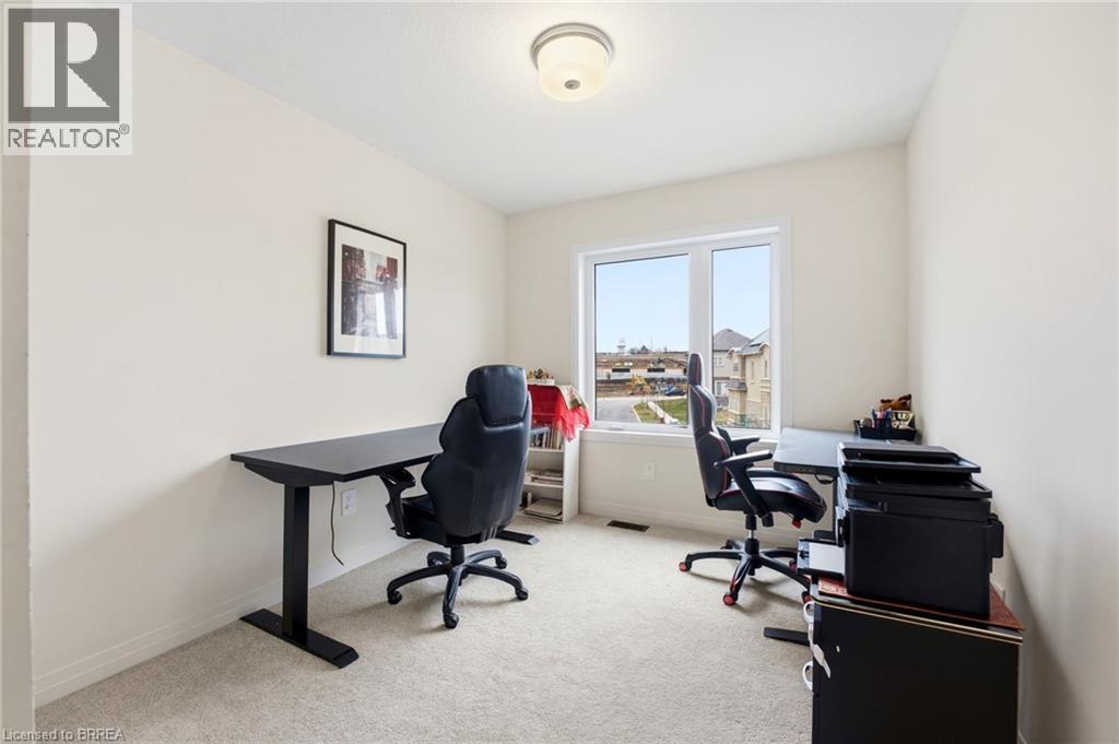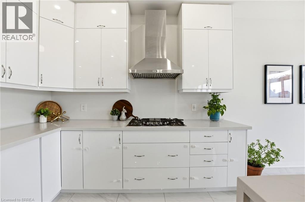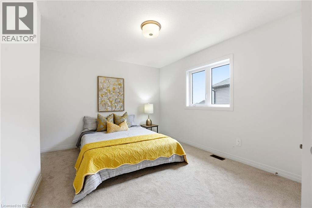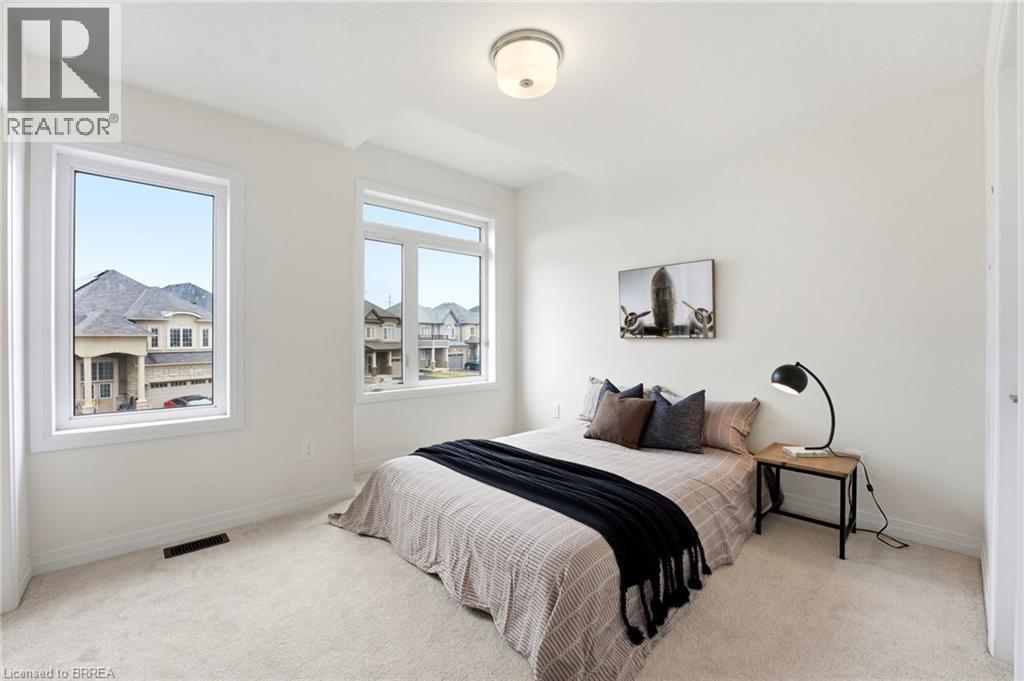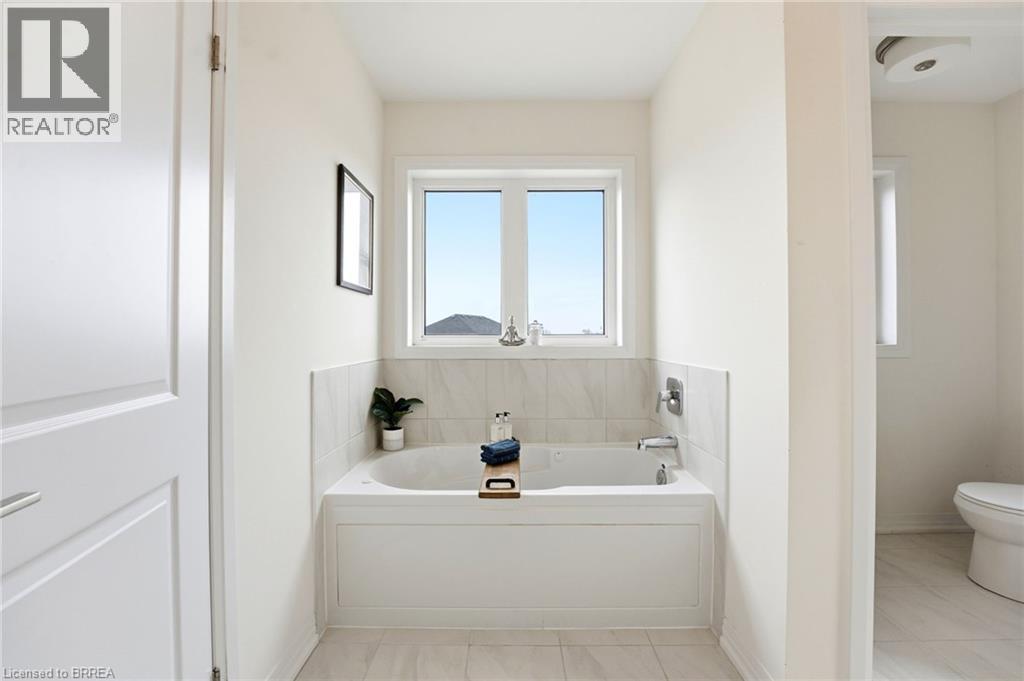 Welcome to this stunning 2-storey home set on an oversized pie-shaped lot, just 2 years new and offering peace of mind with 5 years remaining on the Tarion warranty. Thoughtfully designed, the main floor welcomes you with a convenient 2-piece bath and direct access to the garage just inside the front entrance. Enjoy a bright, open-concept layout featuring a spacious kitchen and living room, complemented by a formal dining area. Large windows flood the space with natural light, highlighting the elegant California knockdown 10 ft. ceilings. The kitchen is a true showstopper with high-end Bosch appliances, including a gas cooktop, built-in wall oven and microwave, bar fridge, a large island with seating with a waterfall quartz countertop and walk-in pantry. Porcelain tile flooring completes the kitchen, while the living and dining rooms feature beautiful, engineered hardwood. Step out from the kitchen onto a private balcony—perfectly sized for your BBQ setup, complete with a gas hookup. Upstairs, you’ll find 4 generously sized bedrooms along with the convenience of upper-level laundry. The primary suite boasts a large 4-piece ensuite and 2 closets, while the second bedroom also enjoys its own private 4-piece ensuite. The remaining two bedrooms share a well-appointed 4-piece ensuite, ideal for family living. The unfinished lower level offers excellent potential and includes a walk-out to the backyard. Conveniently located just 5 minutes from downtown shops and restaurants, 2 minutes to Hwy 403, and within walking distance to the arena, this home combines comfort, style, and accessibility. (id:64974)