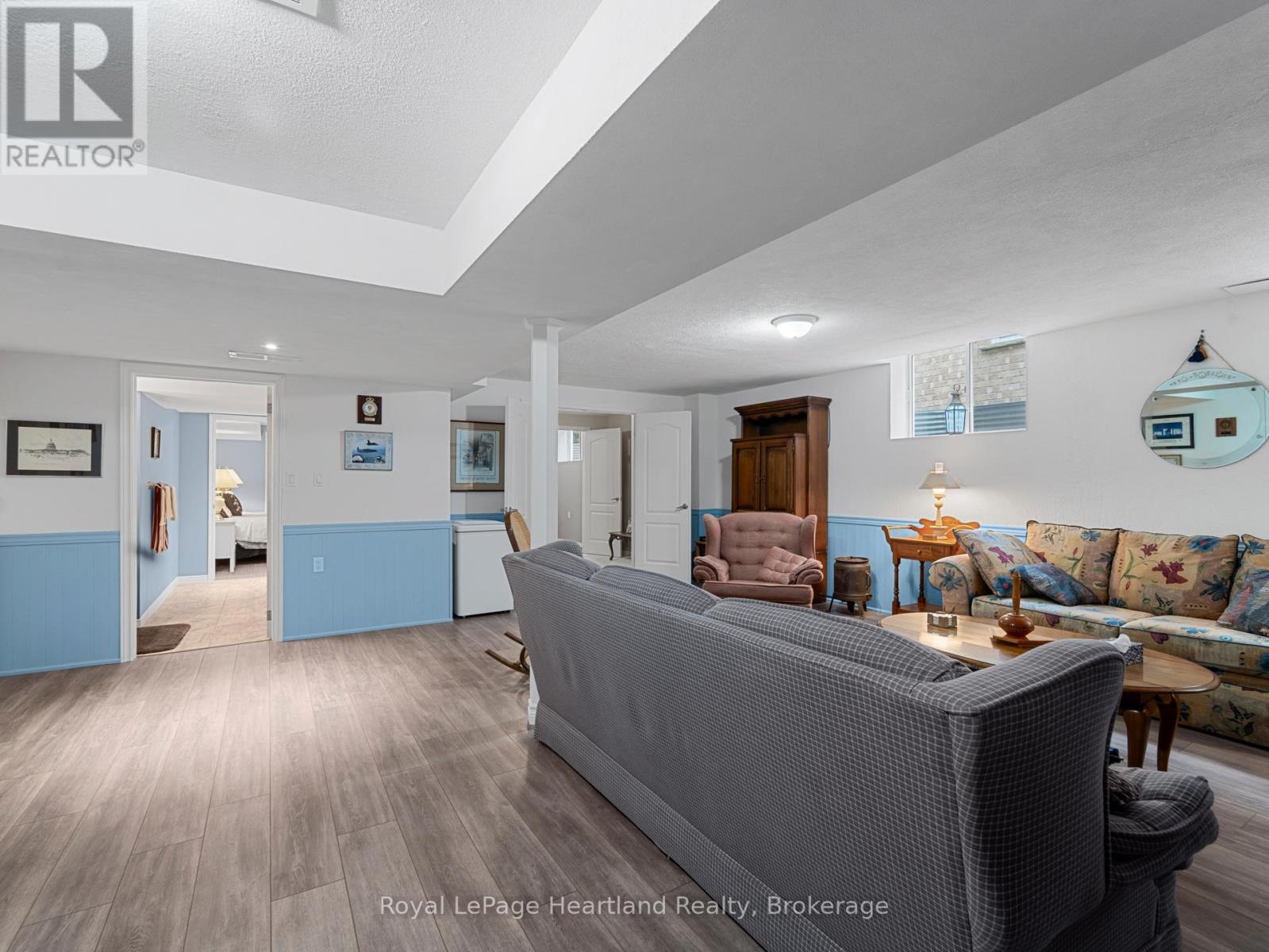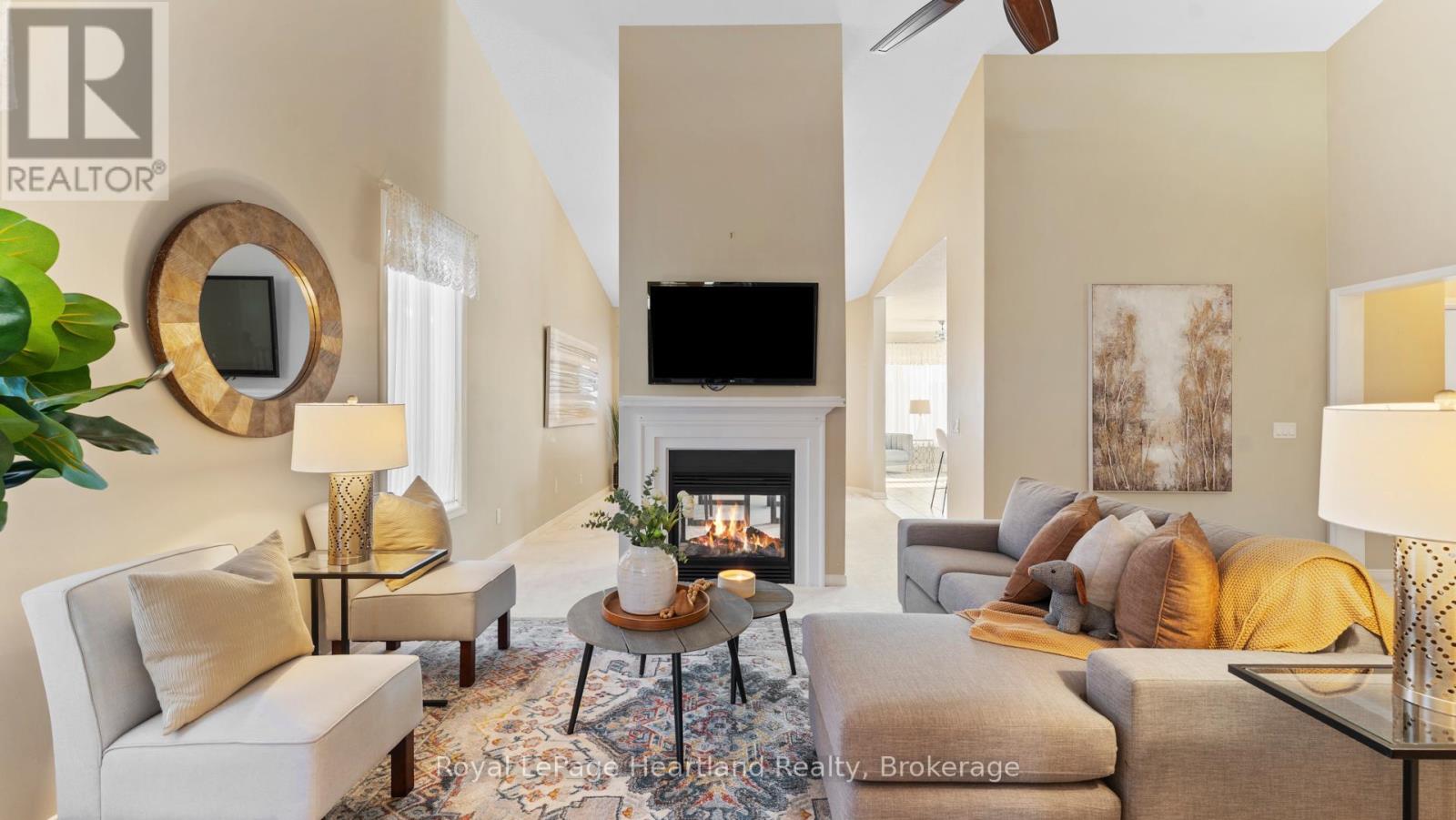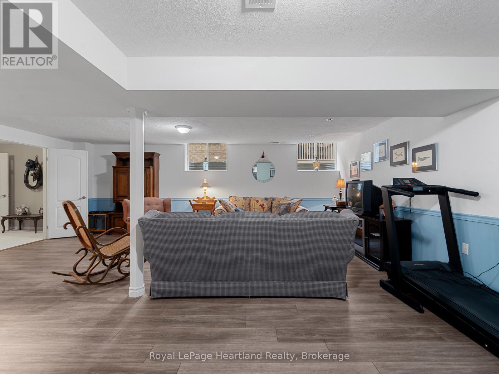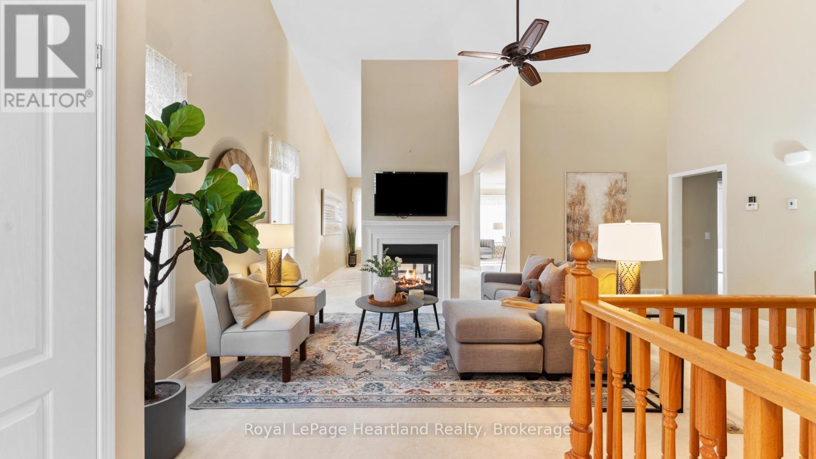 Welcome to The Bridges of Seaforth Luxury Living on the Golf Course. Presenting this stunning St. Lawrence Model, a beautifully customized 2+2 bedroom, 3-bathroom home offering over 3200 sqft of finished living space nestled beside the Seaforth Golf and Country Club. From the moment you step inside, you'll be drawn to the bright, airy open-concept design, perfectly suited for both everyday living and elegant entertaining. A cozy two-sided gas fireplace enhances both the spacious living room and the formal dining area, creating a warm, welcoming atmosphere. The oversized kitchen features an island for meal prep and casual dining with ample cabinetry. Just off the kitchen, a sunroom provides a quiet place to start your day or relax in the afternoon, with patio doors leading to a private back deck where you can enjoy the quiet and peaceful surroundings. The primary bedroom offers a private retreat with a luxurious ensuite boasting a soaker tub and tiled shower. An additional den/bedroom on the main floor is ideal for guests or a home office. Downstairs, the fully finished lower level offers plenty of space for hosting family and friends, with two additional bedrooms, a full bathroom, and generous storage. There is also a dedicated wine-making room with a sink. Additional features include a double car garage and access to the Bridges of Seaforth's exclusive 18,000 sq. ft. recreation centre. Enjoy a full suite of amenities including an indoor pool, tennis courts, fitness room, card and craft rooms, a workshop, and a social lounge. This well-maintained home offers the best of lifestyle and location where comfort, community, and natural beauty come together seamlessly. The monthly fee for the Rec Centre is $183.00 per month. (id:64974)