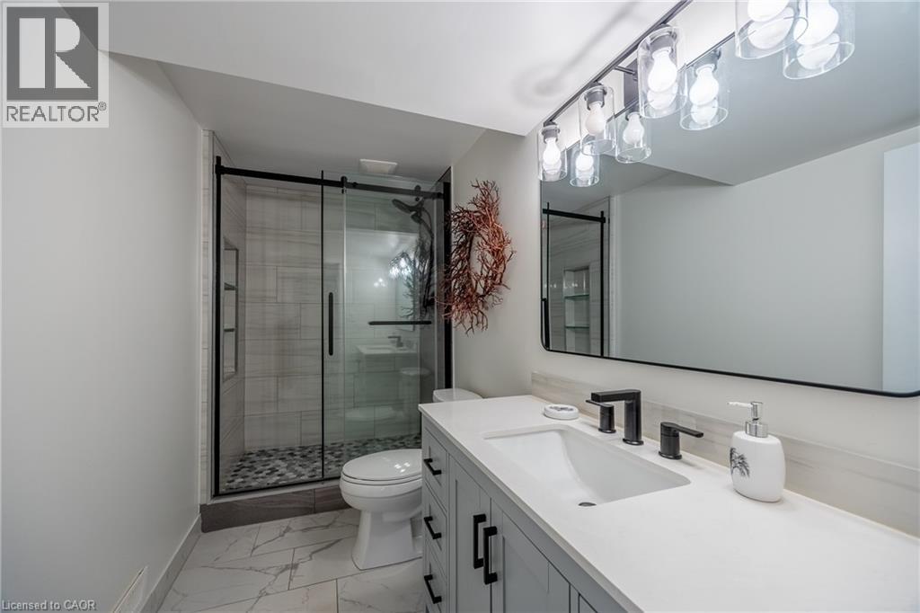 Welcome to Waterford! Home of the Pumpkinfest! Ever thought of condo living? Is it time to downsize to less house maintenance and have time to travel or relax? Trinity Lane condo living gives you a quiet and friendly place to reside. The home is located close to shopping, schools, walking trails and all that Waterford has to offer. This units upper level offers 2 bedrooms, 1 bathroom, open concept kitchen/dining/living room with cathedral ceilings, and laundry. Everything needed for one level living. The lower level offers newly renovated 3pc bathroom and Rec room, along with an extra bedroom for your guest. With manageable condo fees of just $291.00 monthly, makes this home even more desirable. Book a showing today before it's gone. Upgrades: lower bathroom, new flooring and paint in lower Rec room (2024) carpet on stairs (2026) washer and dryer (2024) dishwasher (2025) (id:64974)