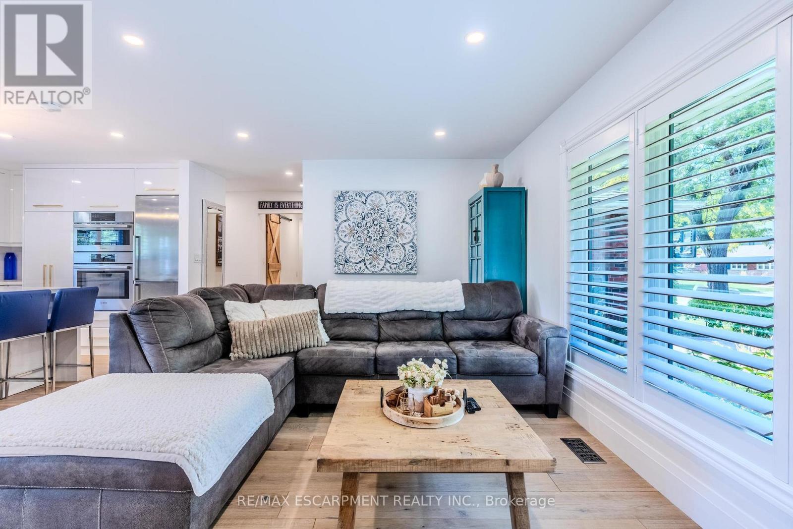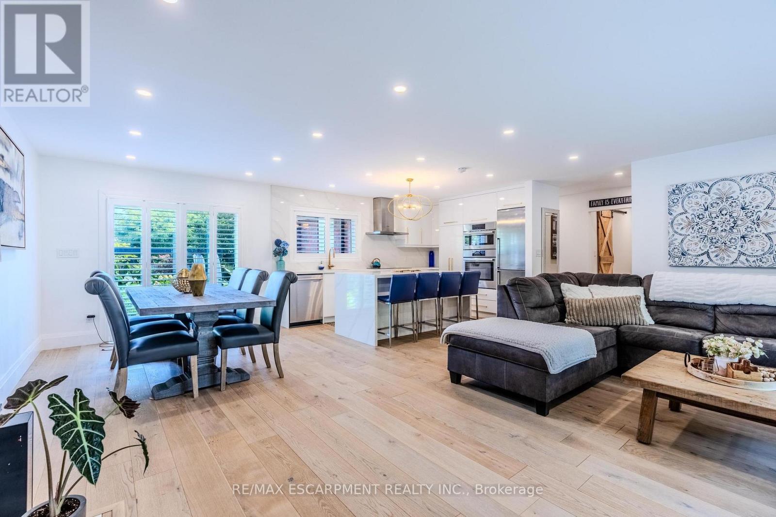 Welcome to 23 West Hampton Road - a stunning, fully renovated ranch bungalow where modern style meets everyday comfort. Perfectly situated just minutes from Hwy 406, the Welland Canal, Lake Ontario, schools, shopping, and all the conveniences of city living, this home offers both accessibility and tranquility. Step inside to find a bright, open-concept layout filled with natural light, highlighted by brand new hardwood floors, upgraded trim, pot lighting inside and out, and custom California shutters on every new window and door. The designer kitchen boasts quartz countertops, a stylish backsplash, and high-end stainless steel appliances, including an S/S fridge, cook-top, wall oven, wall microwave, and dishwasher. This home offers two luxurious new bathrooms with heated floors, as well as a lower-level bedroom with closet, washer and dryer, and convenient side entrance. Notable updates include: furnace & A/C (2021), doors & windows (2021), concrete patio (2021), driveway (2022), fence (2022), and a garden shed - ensuring peace of mind for years to come. Outside, enjoy your own backyard oasis with professional landscaping - the perfect setting for relaxation, family gatherings, or summer entertaining. Every detail has been thoughtfully updated from top to bottom, making this property completely move-in ready. (id:64974)