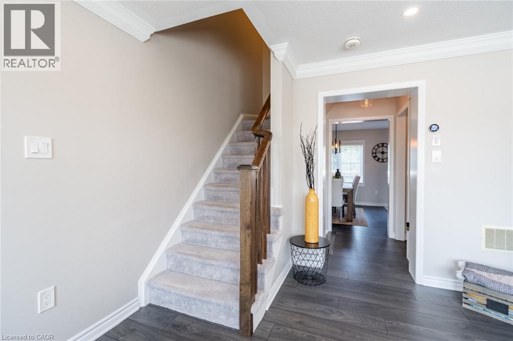 Discover incredible value in Waterdown with over 1,700 square feet of living space and a double-car garage! Welcome to 15-230 Avonsyde Boulevard, where modern style meets tranquil surroundings. The main level features a spacious, light-filled den — ideal as a home office, kids’ playroom or even a fourth bedroom. Enjoy the convenience of direct access to the double garage, along with a well-appointed laundry room that completes this functional and versatile space. On the second floor, the spacious and sunlit eat-in kitchen, featuring ample storage, stainless-steel appliances and a sliding door that opens to your private terrace overlooking peaceful greenspace. Adjacent to the kitchen is a fantastic family room with large windows that fill the space with natural light. A stylish two-piece powder room completes this beautifully designed level. The upper level offers a relaxing primary suite, complete with a private three-piece ensuite and a generous walk-in closet. Two additional well-sized bedrooms and a full bathroom complete the third floor, providing comfort and space for the whole family. A private driveway and two garage spaces offer parking for three vehicles — a welcome convenience for busy households. This is a rare opportunity to own in the desirable Waterdown community at a price point that fits your budget and checks all your boxes. Don’t be TOO LATE*! *REG TM. RSA. (id:64974)