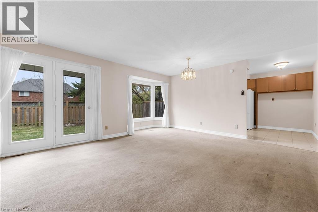 End-unit townhouse condo in a family-friendly Ancaster neighbourhood where convenience really stands out. With over 2,000 square feet of finished living space, this is one of the larger layouts in the complex, with extra windows, more natural light, and a bit more space than your typical interior unit. The main floor offers a bright, comfortable living and dining area with a fireplace, bay windows, and a walkout to a backyard surrounded by mature trees—great for kids, pets, or just having some quiet outdoor space. The layout works well as-is, with the option to update over time if you want to put your own touch on it. Upstairs you’ve got three good-sized bedrooms, including a primary with a walk-in closet and a full ensuite with a jetted tub and separate shower, plus a second full bathroom and the added bonus of upstairs laundry. The finished basement gives you that extra space everyone ends up needing—rec room, playroom, home office, or a bit of everything—along with storage and a large utility area. Attached 2-car garage plus a double driveway gives you parking for four. Brand new furnace (2025), A/C (2021), and hot water tank are all owned. Well maintained, clean, and vacant, so it’s an easy move for the next owner. Location-wise, it’s hard to beat—park across the street, schools nearby, quick access to the 403, and all the shopping and everyday stuff along Wilson just a couple minutes away. Don’t sleep on this one! (id:64974)