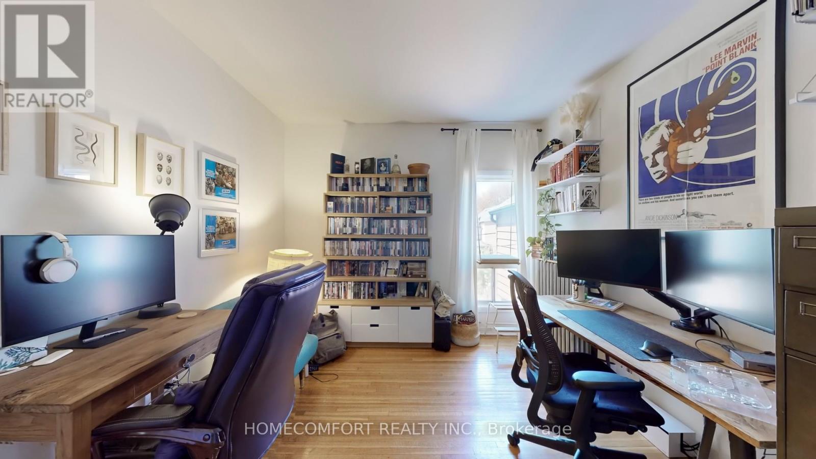 Charming Victorian Semi in the Heart of Harbord Village. Nestled in one of Toronto's most sought-after neighbourhoods, this beautifully maintained 2 1/2 storey Victorian semi sits on a laneway-accessible lot with two rear parking spaces-a rare find in the area. An exceptional opportunity for investors, end-users, renovators, and developers, this versatile property is currently configured as two self-contained units: Upper Unit (Vacant Possession): Features 1 Eat-In kitchen, 2 spacious bedrooms, 1 washroom, and a fabulous third-floor loft-ideal as a home office, studio, or additional living space. (Photos of the upper unit were taken prior to the tenant vacating). Main Floor Unit (Tenanted): Offers 1 Eat-In kitchen, a charming 1-bedroom, 1 living room, and 1 washroom layout with a private entrance. Reliable tenants take excellent care of the property, adding immediate rental value. Additional highlights include: Soaring ceilings, Elegant stained glass windows, Hardwood floors throughout. Basement with separate entrance and equipped with two sump pumps. Located just steps from Harbord & Spadina, enjoy unbeatable access to the University of Toronto, Kensington Market, hospitals, parks, and public transit. A rare opportunity to own a character-filled home with income potential in a prime downtown location. (id:64974)