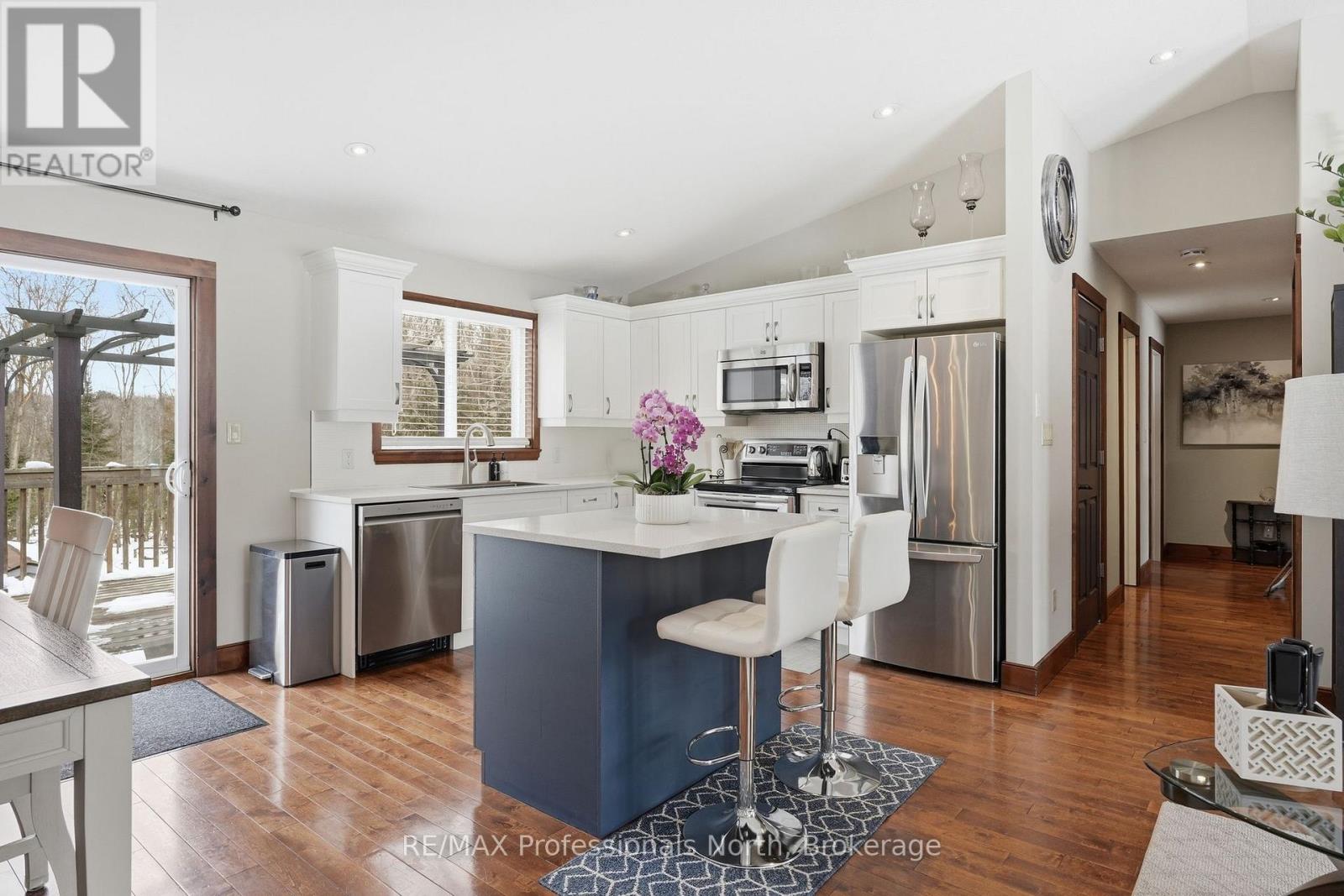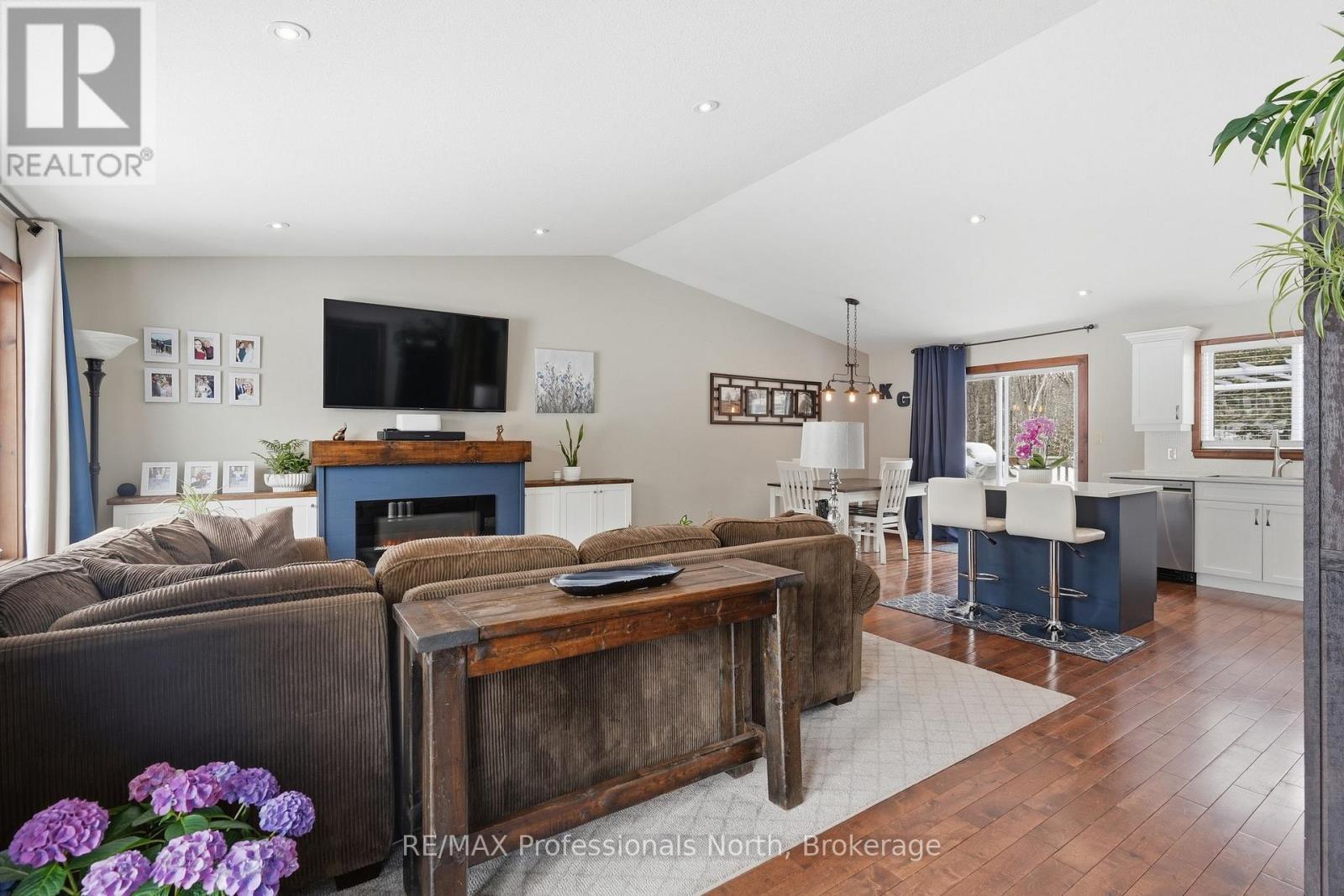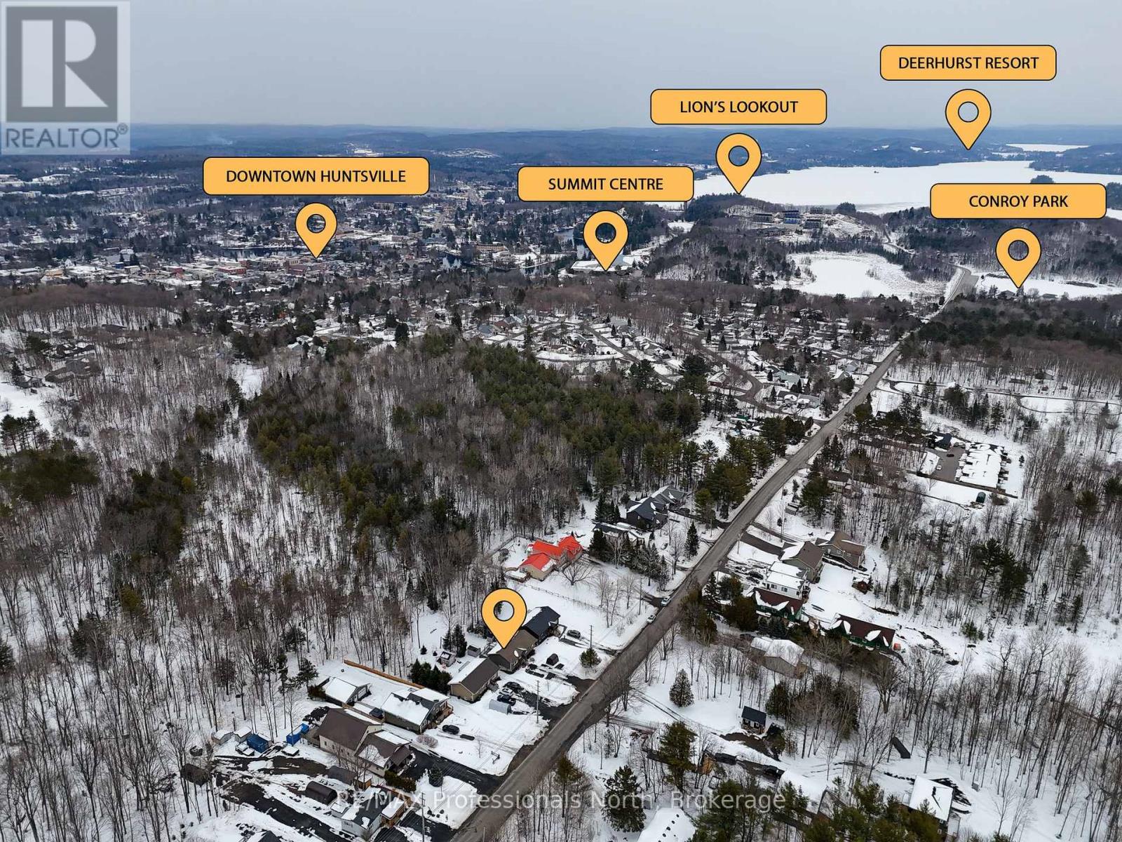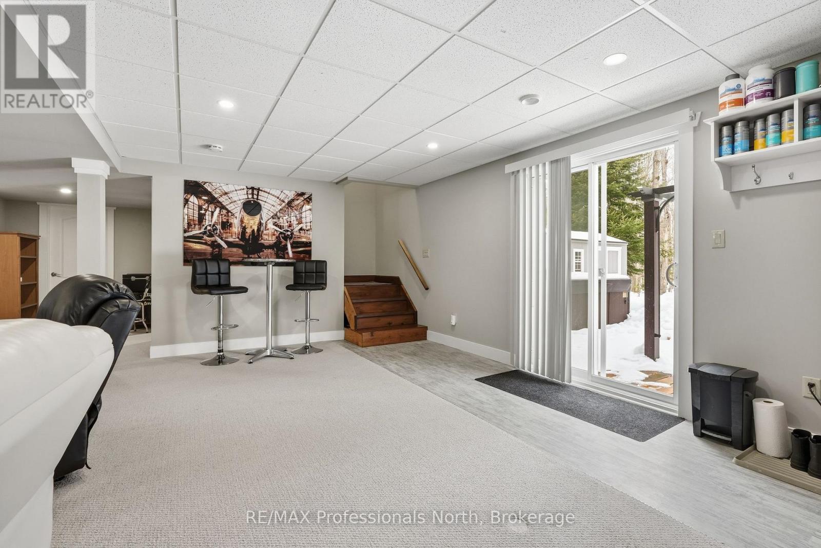 This beautifully maintained bungalow is the kind of property you will feel at home the moment you walk through the door. Set within a sought-after Huntsville neighborhood, and just a short walk to the Canada Summit Centre, your days can easily be filled with swims, skates, pickle ball, and time well spent outdoors. With nearby access to Pioneer Village, local schools within walking distance, and a true sense of community all around, this location offers a lifestyle that is both active and connected. Inside, the home tells a story of care and pride. The open-concept main living space is bright and welcoming, with vaulted ceilings, warm wood floors, and a fresh, modern aesthetic that feels both current and comfortable. The kitchen, dining, and living areas flow seamlessly together perfect for everyday living or gathering with family and friends. A built-in feature wall with an electric fireplace adds a cozy focal point, blending style with function. Three spacious bedrooms, along with a full bath and convenient main floor laundry, make for easy one-level living. Downstairs, the fully finished lower level extends the home in all the right ways, offering a generous rec room, a fourth bedroom, and a second bathroom. With its own walkout to a private backyard retreat-complete with a hot tub and gazebo-it feels like your own quiet escape, right in town. The extra-deep lot provides space to breathe, play, and unwind, while the ample driveway ensures there's room for family and guests alike. With its layout and separate access, the lower level also presents a wonderful opportunity for an in-law suite or future rental income, offering flexibility for years to come. This is a home that has been genuinely loved-thoughtfully updated, impeccably maintained, and ready for its next chapter. All that is left to do is move in and start making your own memories. (id:64974)