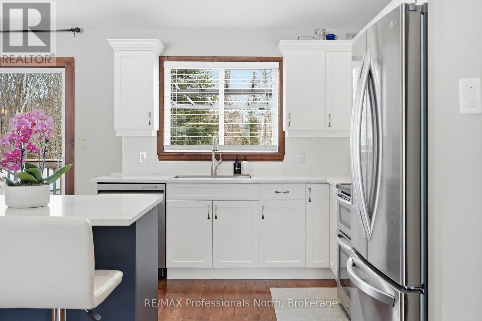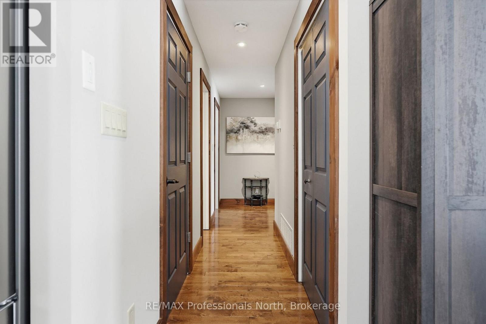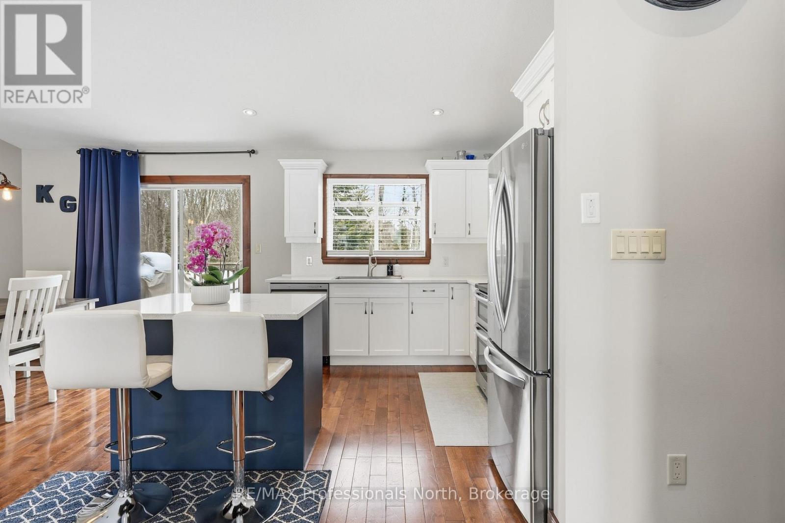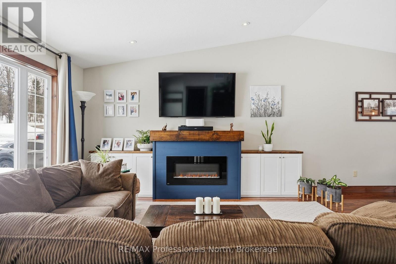 This beautifully maintained bungalow is the kind of property you will feel at home the moment you walk through the door. Set within a sought-after Huntsville neighborhood, and just a short walk to the Canada Summit Centre, your days can easily be filled with swims, skates, pickle ball, and time well spent outdoors. With nearby access to Pioneer Village, local schools within walking distance, and a true sense of community all around, this location offers a lifestyle that is both active and connected. Inside, the home tells a story of care and pride. The open-concept main living space is bright and welcoming, with vaulted ceilings, warm wood floors, and a fresh, modern aesthetic that feels both current and comfortable. The kitchen, dining, and living areas flow seamlessly together perfect for everyday living or gathering with family and friends. A built-in feature wall with an electric fireplace adds a cozy focal point, blending style with function. Three spacious bedrooms, along with a full bath and convenient main floor laundry, make for easy one-level living. Downstairs, the fully finished lower level extends the home in all the right ways, offering a generous rec room, a fourth bedroom, and a second bathroom. With its own walkout to a private backyard retreat-complete with a hot tub and gazebo-it feels like your own quiet escape, right in town. The extra-deep lot provides space to breathe, play, and unwind, while the ample driveway ensures there's room for family and guests alike. With its layout and separate access, the lower level also presents a wonderful opportunity for an in-law suite or future rental income, offering flexibility for years to come. This is a home that has been genuinely loved-thoughtfully updated, impeccably maintained, and ready for its next chapter. All that is left to do is move in and start making your own memories. (id:64974)
