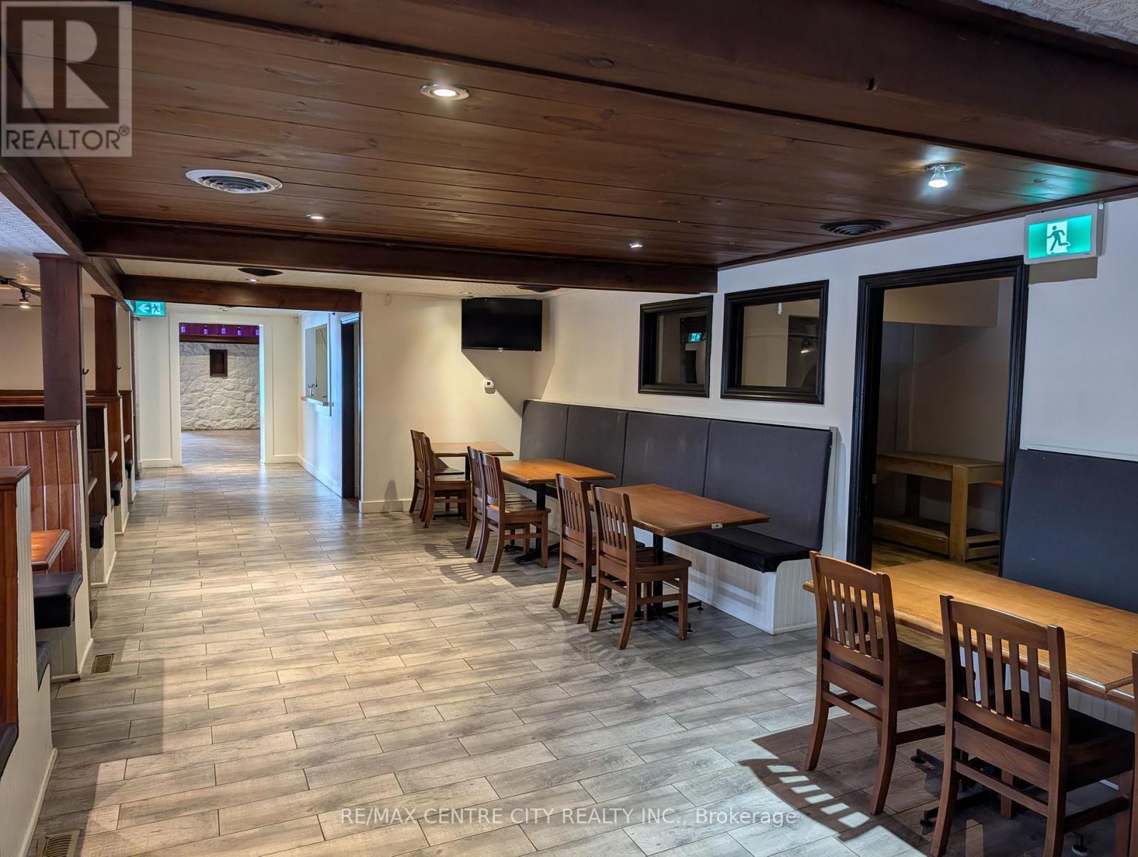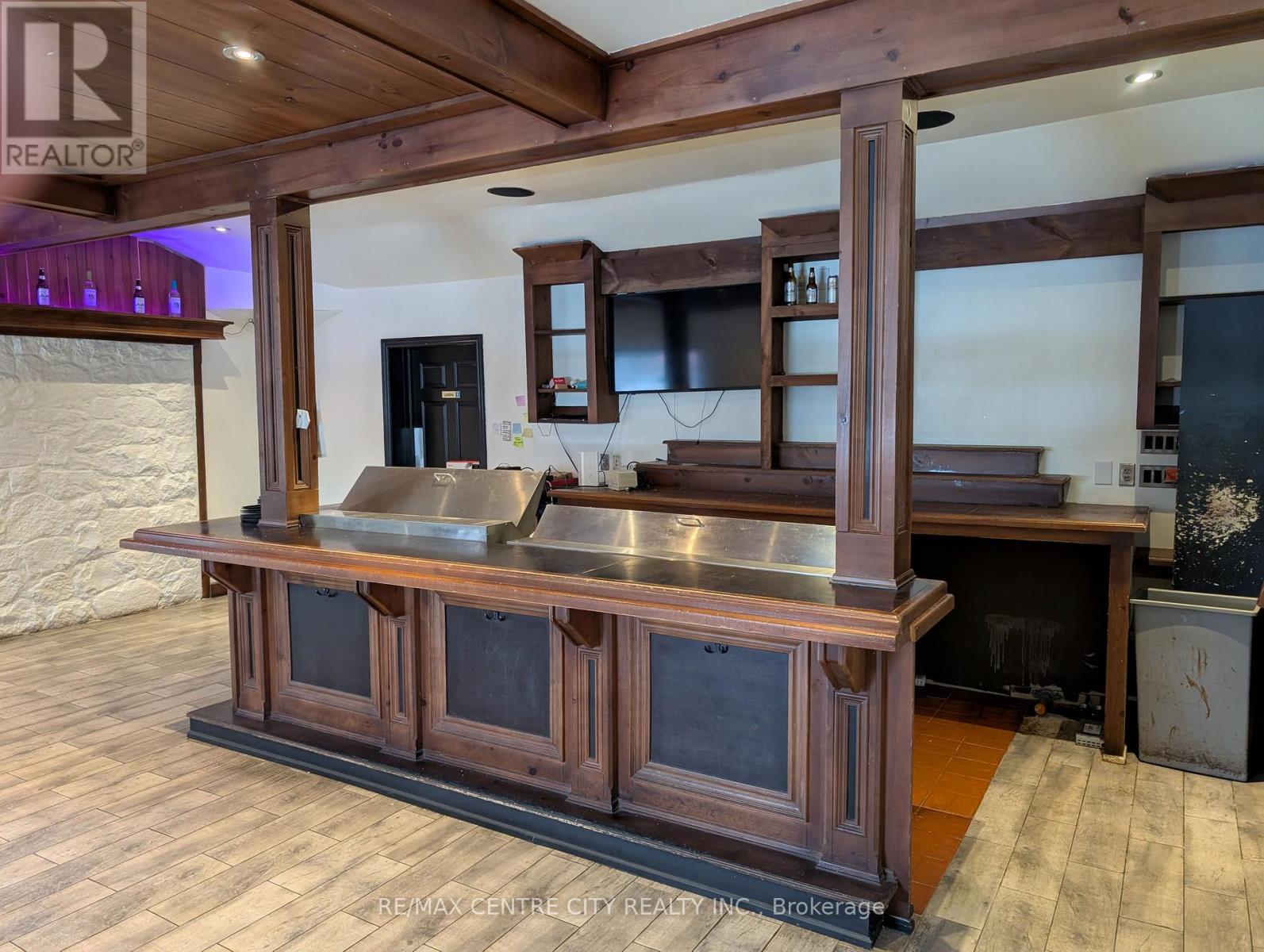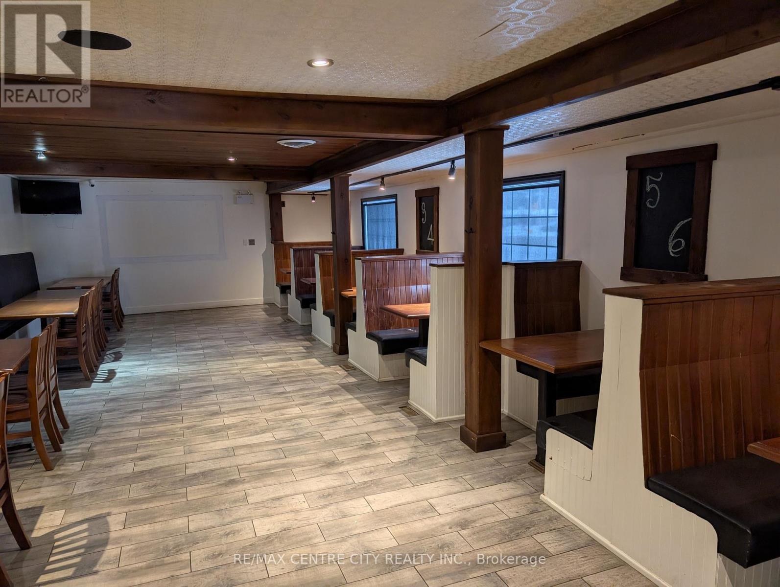 A rare opportunity to acquire a stand alone turn-key restaurant in the centre of Lambeth's Retail District. Well suited for a family style or road house type restaurant, Easy access and plenty of onsite parking. Building consists of 3,380 square feet and features front, rear and side entrances, entrance vestibule, a tavern area with sit-up bar, main dining room, and private dining room. Oversized outdoor patio that seats 40 patrons. Full commercial kitchen with commercial ventilation and fire suppression, 2employee washrooms, 2 customer washrooms, walk-in cooler and a storage room. Major renovations were completed in 2014.Contact listing agents for further details and to book a viewing. Property also for lease. See MLS Number X12674016 for details. (id:64974)
