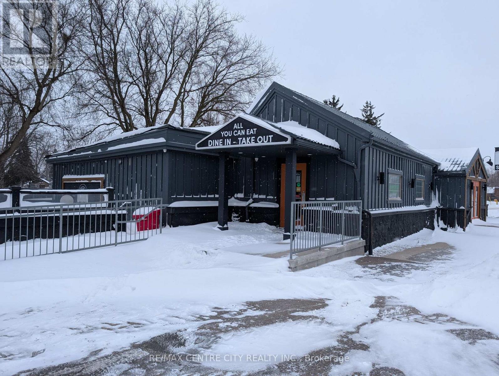 A rare opportunity to acquire a stand alone turn-key restaurant in the centre of Lambeth's Retail District. Well suited for a family style or road house type restaurant, Easy access and plenty of onsite parking. Building consists of 3,380 square feet and features front, rear and side entrances, entrance vestibule, a tavern area with sit-up bar, main dining room and private dining room. Oversized outdoor patio that seats 40 patrons. Full commercial kitchen with commercial ventilation and fire suppression, 2employee washrooms, 2 customer washrooms, walk-in cooler and a storage room. Gross monthly rent of $8,385.22. Five year lease preferred. Major renovations were completed in 2014. Contact listing agents for further details and to book a viewing. Property also for sale. See MLS Number X12673814 for details (id:64974)