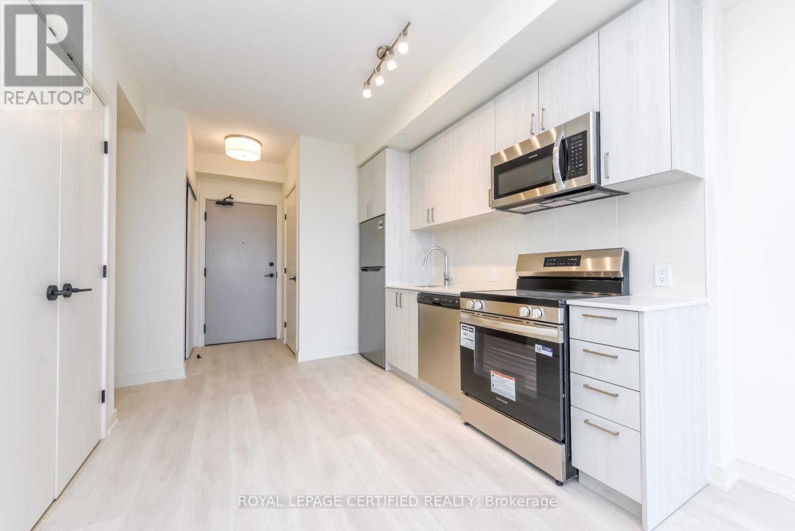 Brand-new, never-lived-in 1-bedroom plus den condo that blends style and functionality. This thoughtfully designed unit includes 1.5 bathrooms and a smart, efficient layout that maximizes space and flow. The versatile den is perfect for a home office, nursery, or additional sleeping area. The modern kitchen features stainless steel appliances, a large island, and opens seamlessly into the living space, with direct access to a spacious private balcony-ideal for relaxing or entertaining. The unit also includes one parking space and a storage locker. Conveniently located near Milton Hospital, the Milton Sports Centre, shopping plazas, parks, and public schools, this home offers excellent accessibility in a sought-after Milton community. Residents enjoy premium amenities, including a swimming pool, Locker room, fitness centre, game room, party room, theatre room and much more !!!!! (id:64974)