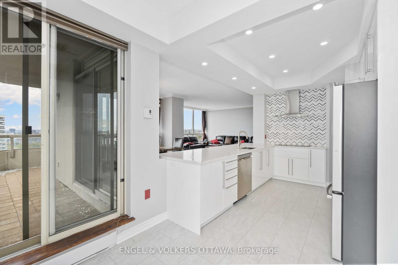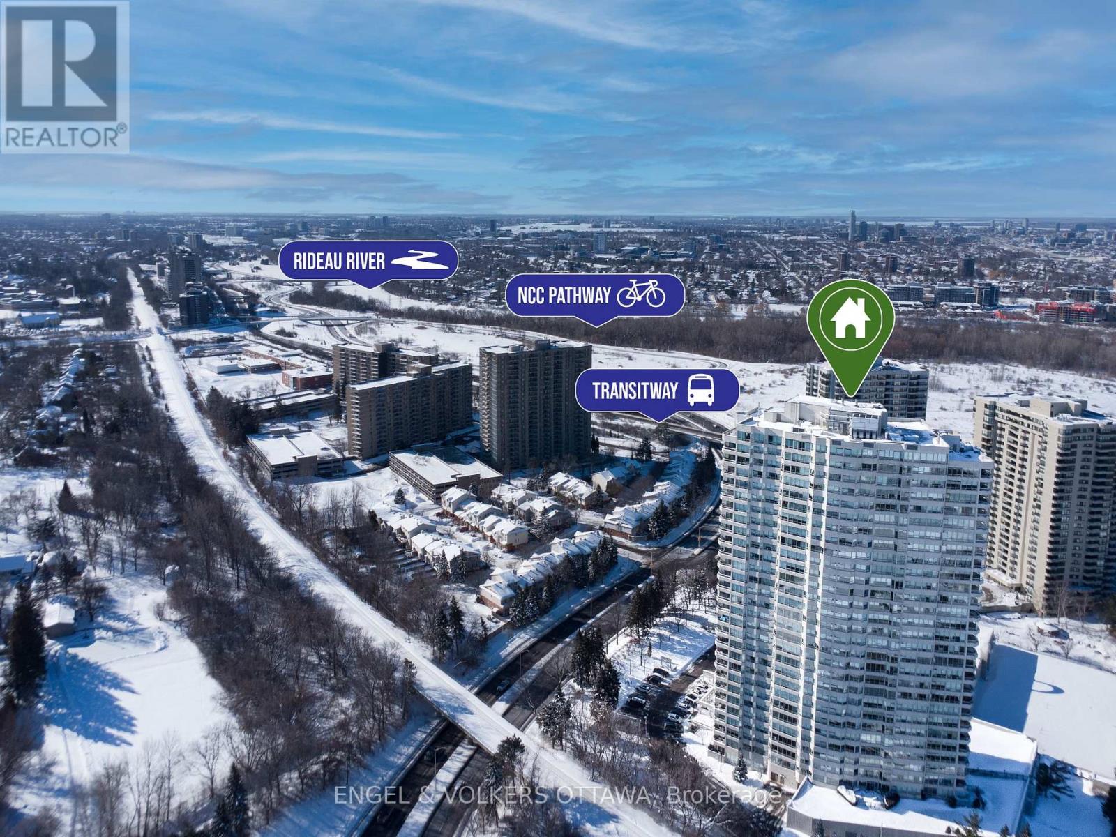 Set high above the Rideau River corridor, this spacious 1,815 sq ft residence on the 23rd floor of The Classics at Riviera offers three bedrooms, two bathrooms, and an abundance of natural light, complemented by tasteful, sophisticated finishes. Entering through classic wooden doors, you're met with a wide marble entryway and ample storage. The main living area has oversized windows that draw in natural light and dark flooring that runs through the unit. Adjacent to the living room, the dining area provides space for meals and is directly connected to the recently upgraded kitchen. Abundant cabinetry, generous quartz counter space, recessed lighting and stainless steel appliances make this kitchen well-suited for both daily use and entertaining. A covered balcony, accessible from both the kitchen, living and dining rooms, extends the living space outdoors and offers a unique vantage point to enjoy city views. The bedroom wing is thoughtfully separated from the principal living areas, with a spacious primary bedroom with ample closet space and a 6-piece ensuite bathroom. Two additional bedrooms offer flexibility for guest accommodations or a home office, serviced by a full bathroom. One heated underground parking space and one storage locker mean you no longer need to warm your car on cold winter days! Residents of this building enjoy resort-style amenities, including an exercise room, indoor and outdoor pools, a jacuzzi, a sauna, multiple tennis courts, and several indoor and outdoor gathering areas. Set along the Rideau River, the area is surrounded by scenic pathways, parks, and green spaces ideal for walking and cycling. Quick access to downtown Ottawa, the ByWard Market, Train Yards shopping centre, major hospitals, universities, and transit routes make this the ideal unit for downsizers looking for a lifestyle upgrade! (id:64974)