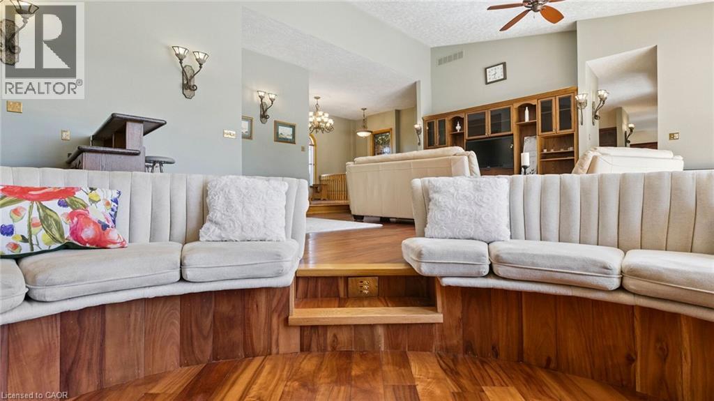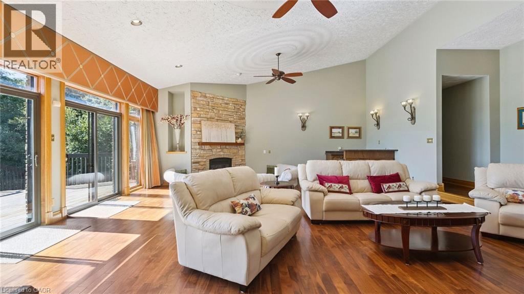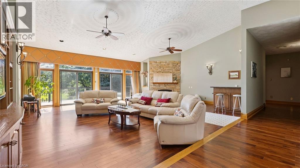 A Timeless Estate Backing onto the Greens! Nestled in the heart of Conestogo’s sought-after golf course community, this bungalow offers 6-bedrooms and 5-bathrooms with 7,200 sq. ft. of refined yet comfortable living. Set on a massive 205-foot wide lot, the home captures sweeping, unobstructed golf course views from almost every room. Rich hardwood flooring flows through the main level, leading you to a grand great room bathed in natural light. The layout is thoughtfully designed for multi-generational living or a growing family, highlighted by two primary-style suites with private baths. The lower level offers endless opportunities for family fun, from the private gym and sauna to the spacious recreation area and wet bar. Located just steps from the river and local amenities, this home offers a peaceful, family-friendly lifestyle without compromising on luxury. (id:64974)