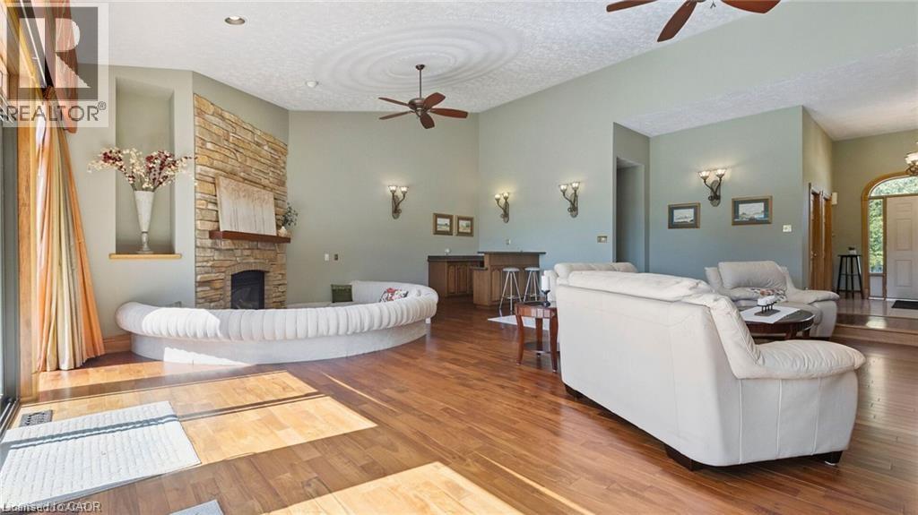 Timeless Luxury on the Greens: 7,200 Sq. Ft. Executive Rental Discover the pinnacle of Conestogo living in this magnificent 6-bedroom, 5-bathroom bungalow, perfectly positioned on a massive 205-foot wide lot backing directly onto the golf course. Spanning 7,200 square feet of refined living space, this estate is designed for those who value scale, privacy, and panoramic views. The main level welcomes you with rich hardwood floors and a grand great room bathed in natural light, framing unobstructed vistas of the greens from almost every window. Thoughtfully engineered for multi-generational families or executive living, the floor plan features two primary-style suites with private ensuites. The experience continues on the lower level, a dedicated haven for wellness and entertainment featuring a private gym, sauna, spacious recreation room, and a full wet bar. Located just steps from the river and local amenities, this home offers a rare opportunity to enjoy a peaceful, high-end lifestyle without compromise. (id:64974)