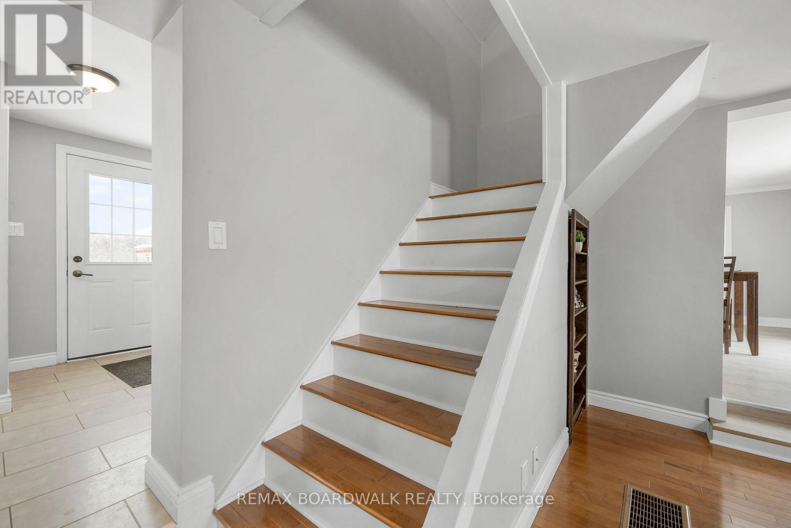 Welcome to this charming 1-1/2 storey country home on a beautifully treed 1-acre lot, offering a perfect blend of rural character and thoughtful updates. The back entrance opens to a spacious mudroom with access to 4-pc bath, while the sunny country kitchen features white cabinetry, a stylish backsplash, an oversized eating area with access to the front deck, and convenient laundry tucked behind closed doors. The main level also includes a primary suite with newly renovated 3-pc ensuite, plus a family room off the front entry with stairs to the upper level, where two generous bedrooms and a versatile loft await - perfect as a games room, office, or second living space. Enjoy summer days on the front and back decks, an above-ground pool, and easy access to the unfinished basement for storage or a home gym. A separate heated workshop (30' x 20') with hydro offers endless possibilities for a man cave, "she-shed," or storage for your country toys! Located in a desirable rural community just a short drive to local amenities, this home is a must-see for country living with modern comfort! (id:64974)