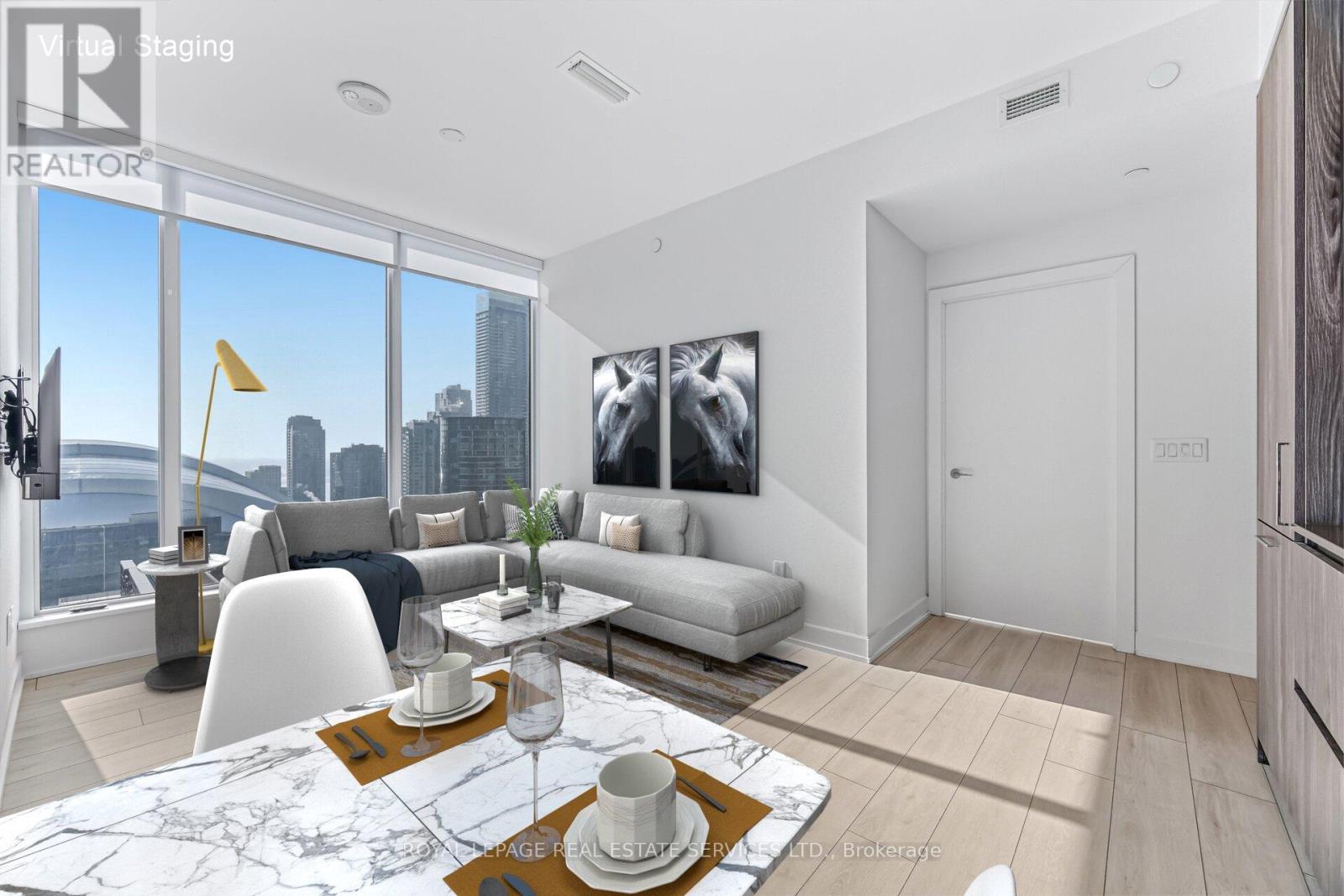 Luxurious 2-bed, 2-bath NOBU-branded corner condo, a collaboration with NOBU Restaurant and Hotel. This corner unit features 9-ft ceilings, expansive windows, and breathtaking south-west views of CN Tower and Sky dome. The sleek two-tone kitchen includes quartz countertops and top-tier Miele appliances. Enjoy in-suite washer/dryer, custom blinds, and chic fixtures for ultimate convenience. Residents benefit from a 24-hour concierge and exclusive amenities. Prime location with direct access to King St. W Streetcar, 7-min to St. Andrews subway, near University of Toronto St. George Campus and Gardiner Expressway. Surrounded by cultural landmarks like Rogers Centre and AGO, along with shops, restaurants, and parks, this condo offers an unparalleled lifestyle. Incredible South views of the CN tower, skydome, skyline and lake! (id:64974)